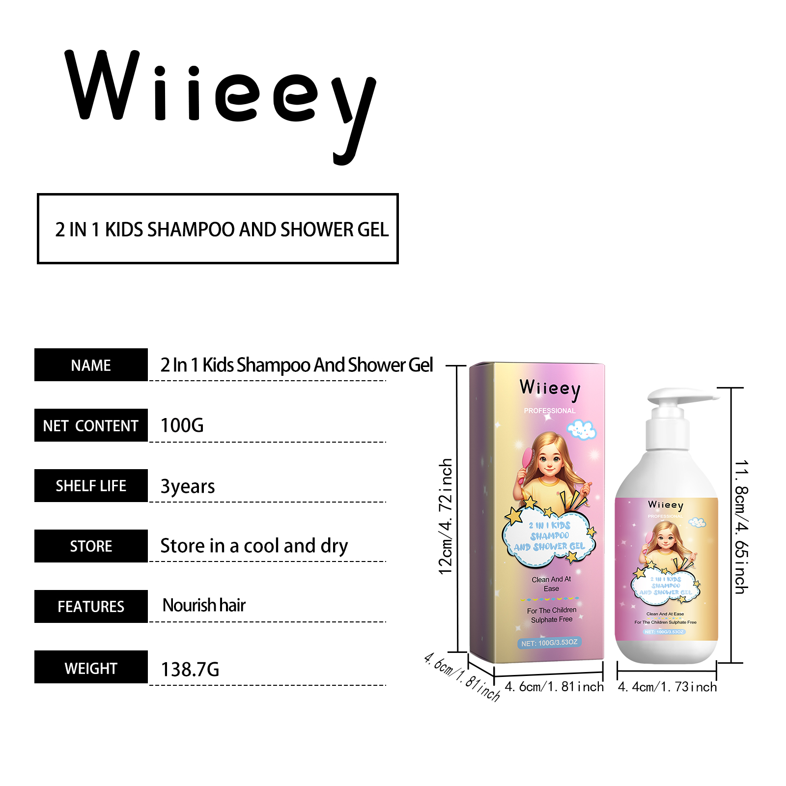 Our 2 In 1 Kids Shampoo And Shower Gel contains glycerin, argan oil and coconut oil. It can promote hair growth, increase hair elasticity, make hair softer and smoother, give you thick hair, deeply nourish hair, feed hair roots, reduce hair breakage and loss, and make hair healthier and shinier. Its application method is very simple: wet the skin and hair with warm water, apply an appropriate amount of this product evenly on the hair and skin, gently massage into the skin and hair until absorbed. This product is easy to use, does not require rinsing, saves your time and effort, and allows you to maintain a stylish and attractive hair style anytime, anywhere.
