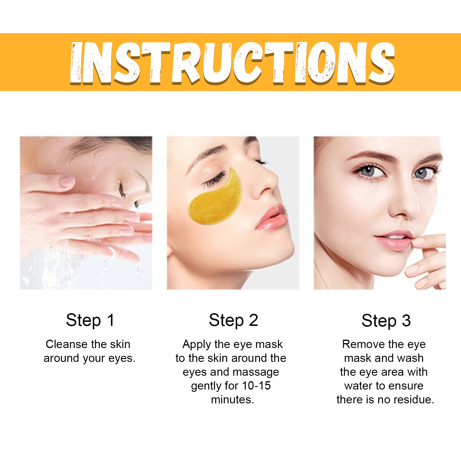 Our 24k gold firming eye mask contains glycerin, hydroxyethyl cellulose, 1, 2-hexadiol. It helps fade eye wrinkles, improves dull skin around the eyes, and makes your skin brighter and shinier. The application method is very simple: after cleaning the skin around the eyes, apply the eye mask to the skin around the eyes, gently massage for 10-15 minutes, then remove the eye mask, and rinse the eye area with water to ensure that there is no residue. After use can rejuvenate aging eyes. Mainly for wrinkles and fine lines around the eyes, eliminate eye skin slack, dark circles, puffiness, promote the overall health of the eye.