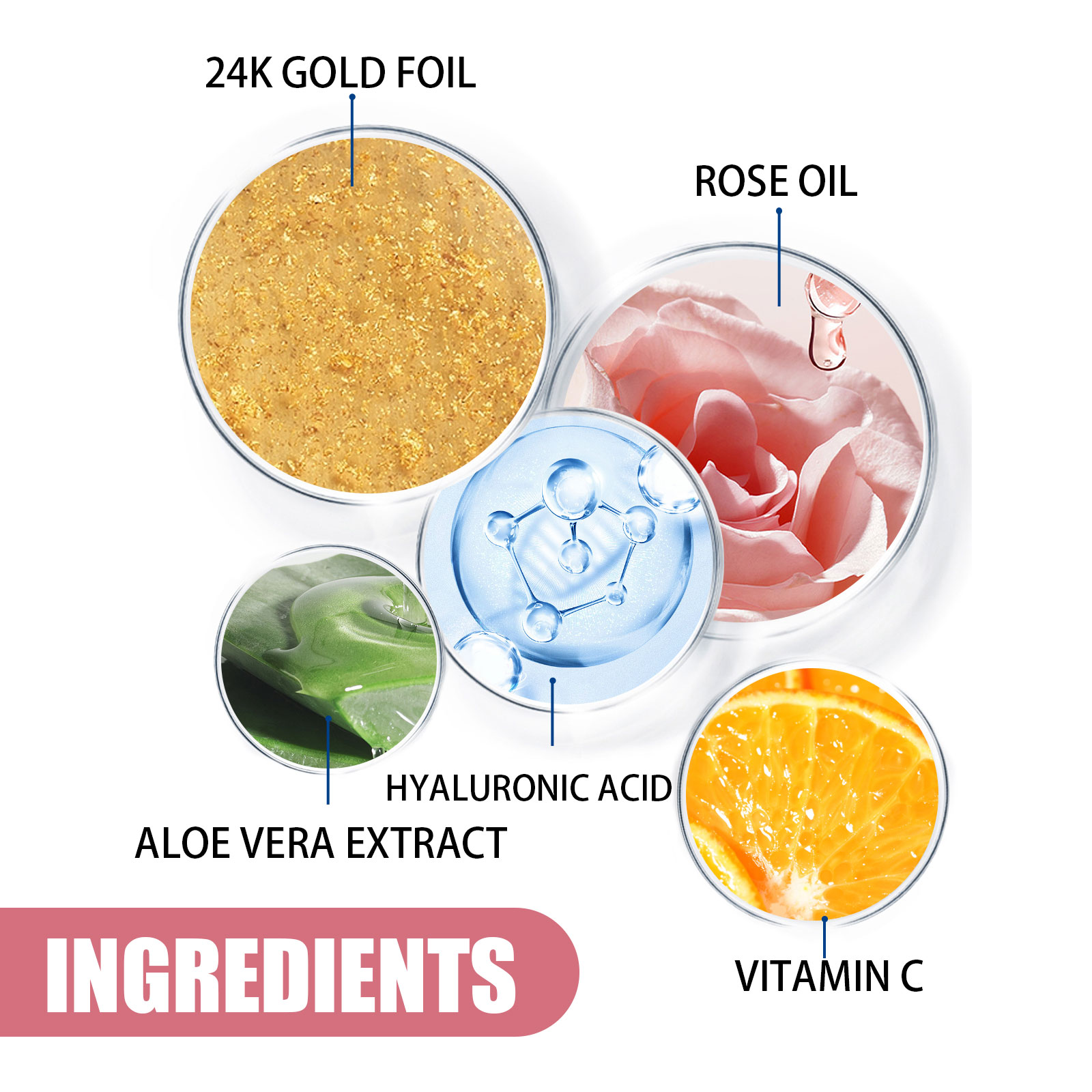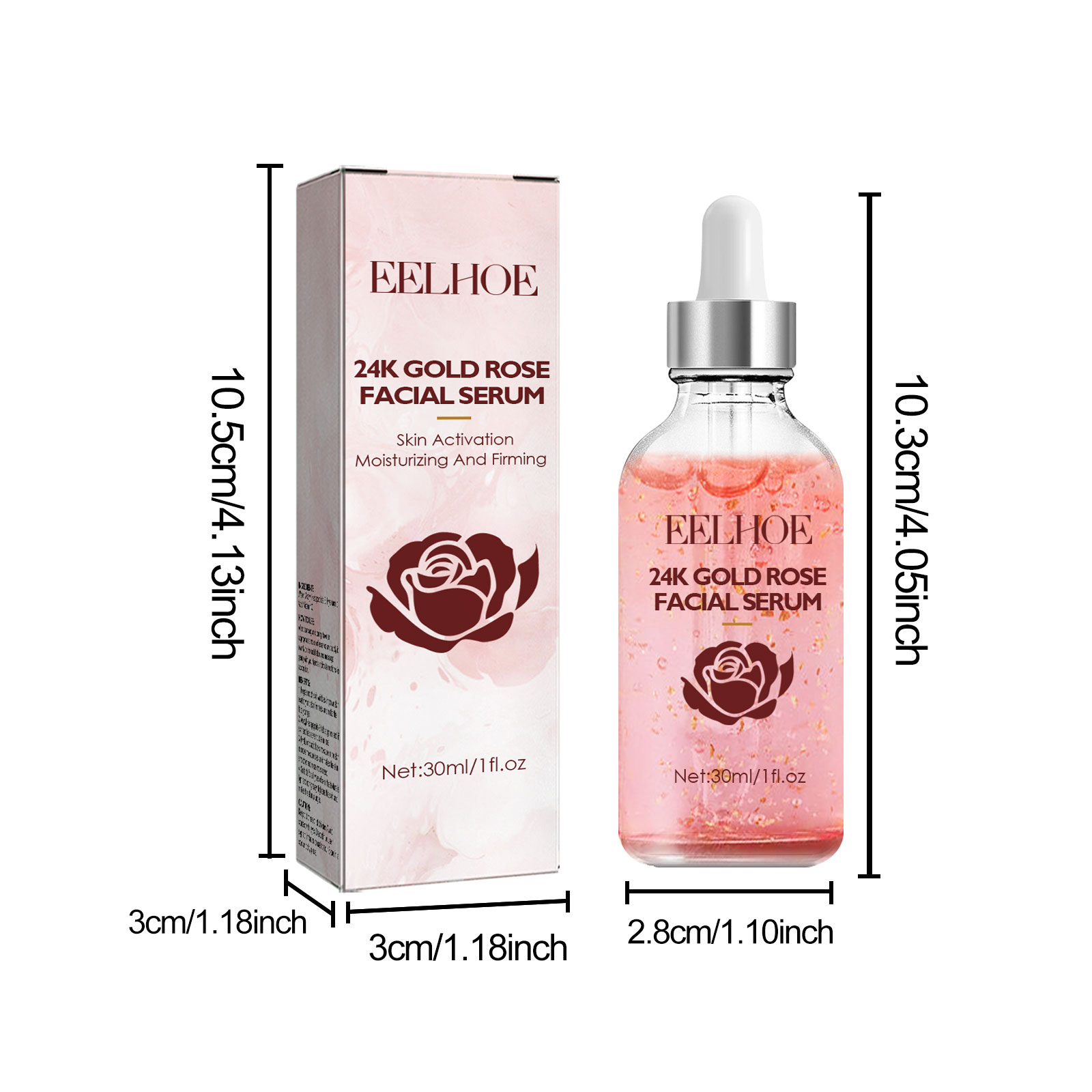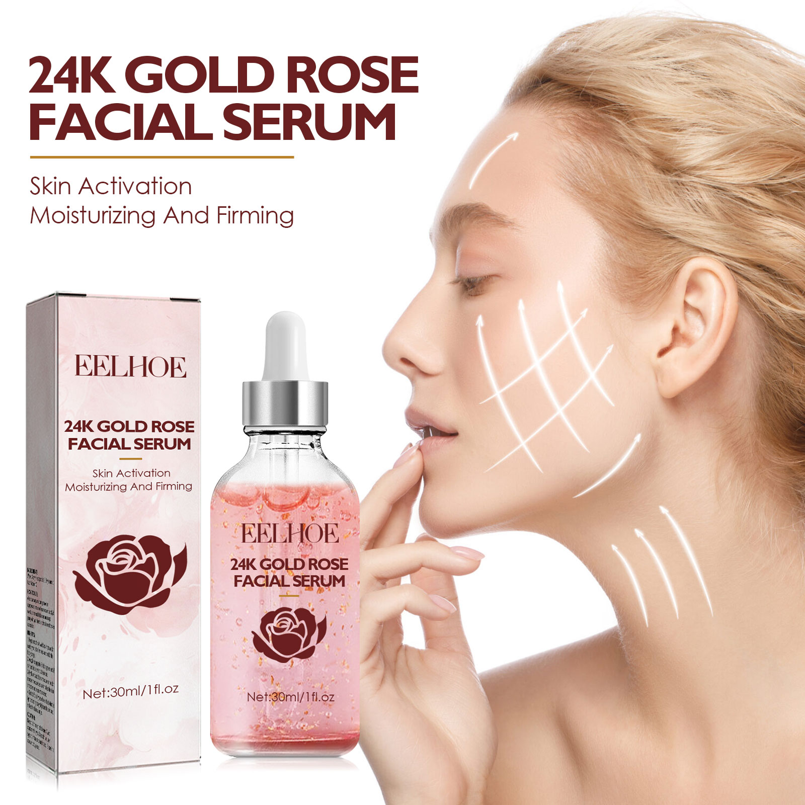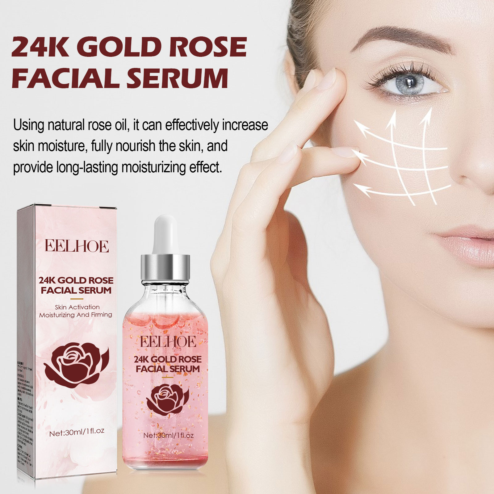 Our Golden Rose Face Serum contains 24-carat gold leaf, rose oil, aloe vera extract. It can effectively increase the moisture of the skin, fully nourish the skin, and provide a lasting moisturizing effect. Its use method is very simple: after cleansing and toning, take 2-3 drops of essence evenly apply to the face, gently massage with the hand in a circular motion to absorb. Repair damaged skin, activate skin, moisturize and tighten skin.