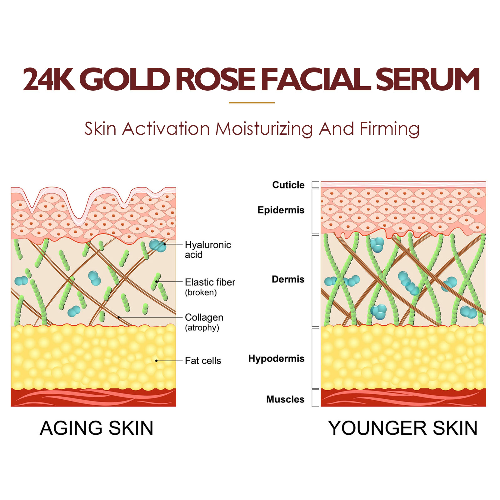 24K Gold Rose Facial Serum Hydrating and Brightening Anti-Aging Skin Care