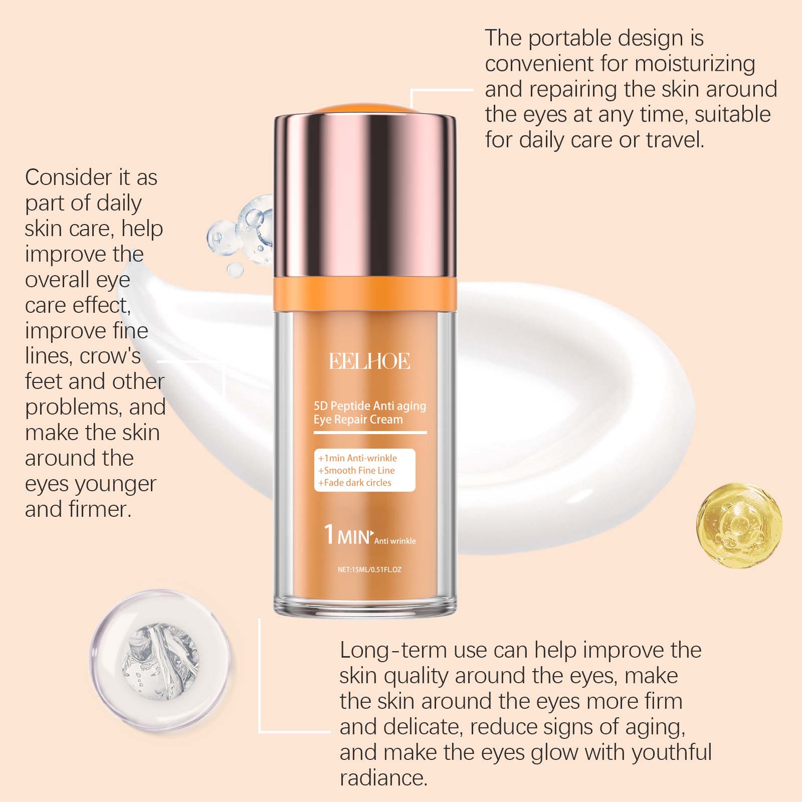 5D Peptide Eye Repair Cream Moisturizing and Nourishing Eye Cream for Fine Lines and Firming