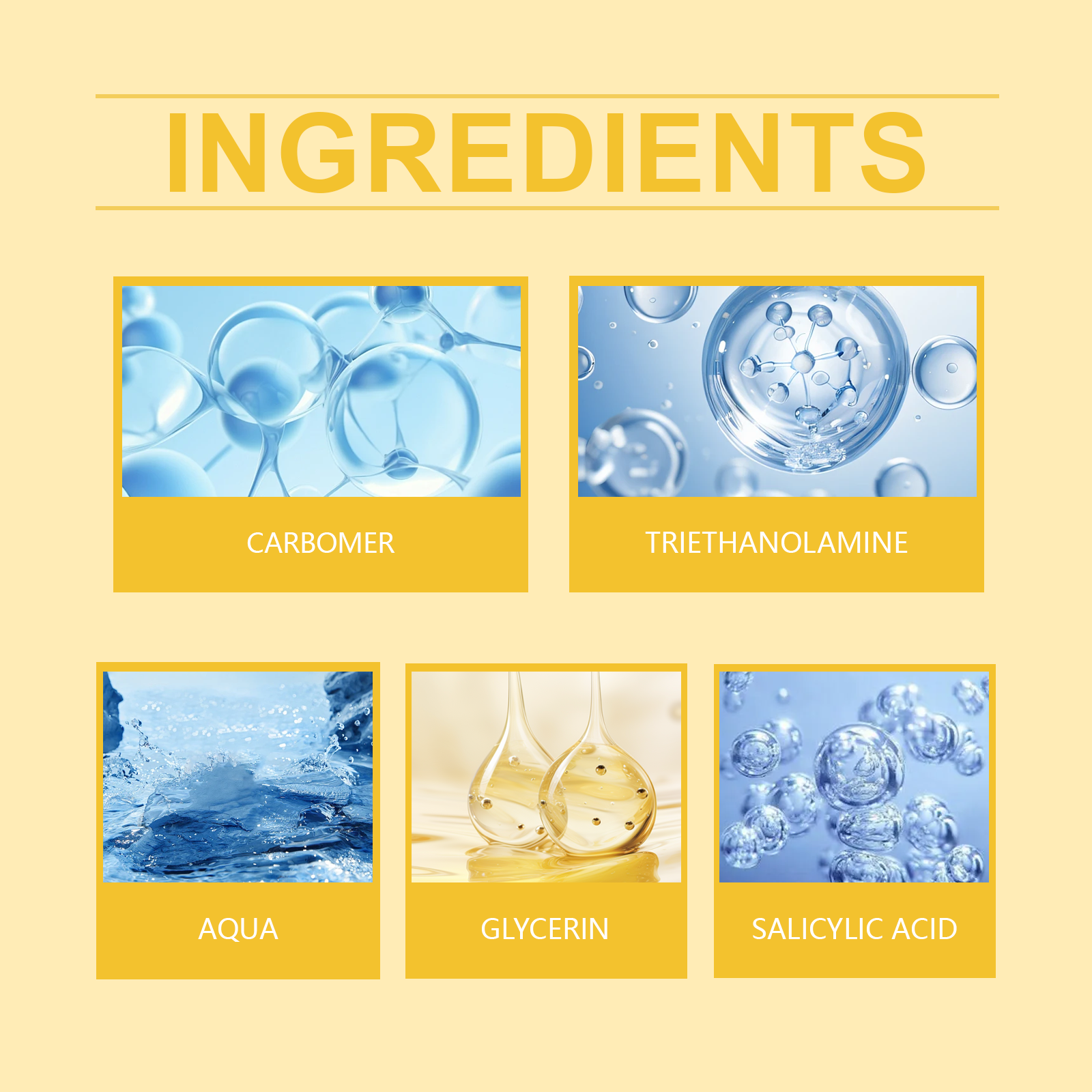 Our acne gel contains carbomer, triethanolamine, salicylic acid. It can improve the texture of the skin and make it feel smoother. The way to use it is simple: clean the skin and keep it dry. Apply appropriate amount to scar or acne area. Massage gently to fully absorb. And light texture, fast absorption, no greasy feeling.