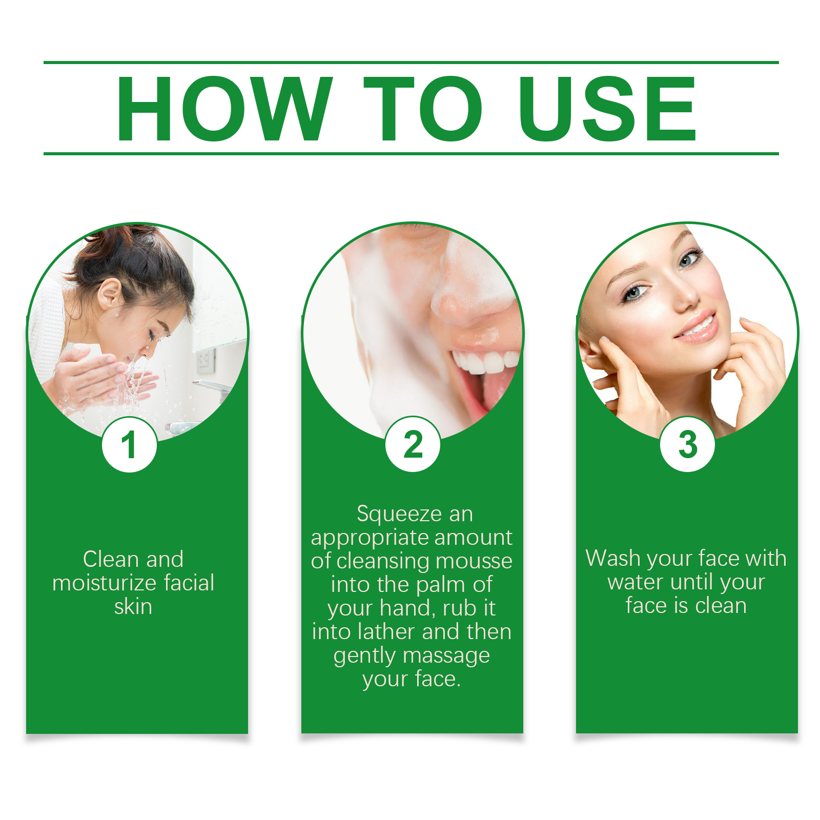 Our aloe Vera cleansing foam contains aloe vera leaf extract, vitamin C, chamomile extract. It gently soothes the skin and reduces irritation. The fine foam carries away the dirt and grease. Its application method is simple: 1. Clean and moisturize the facial skin; 2. Squeeze the appropriate amount of cleansing mousse into the palms and lather, then gently massage the face. 3. Wash your face with clean water until it is clean. It can help remove makeup, lighten the skin, promote even skin tone, and make skin tone more radiant. Deep cleansing of skin removes dirt and excess oil to prevent clogged pores.