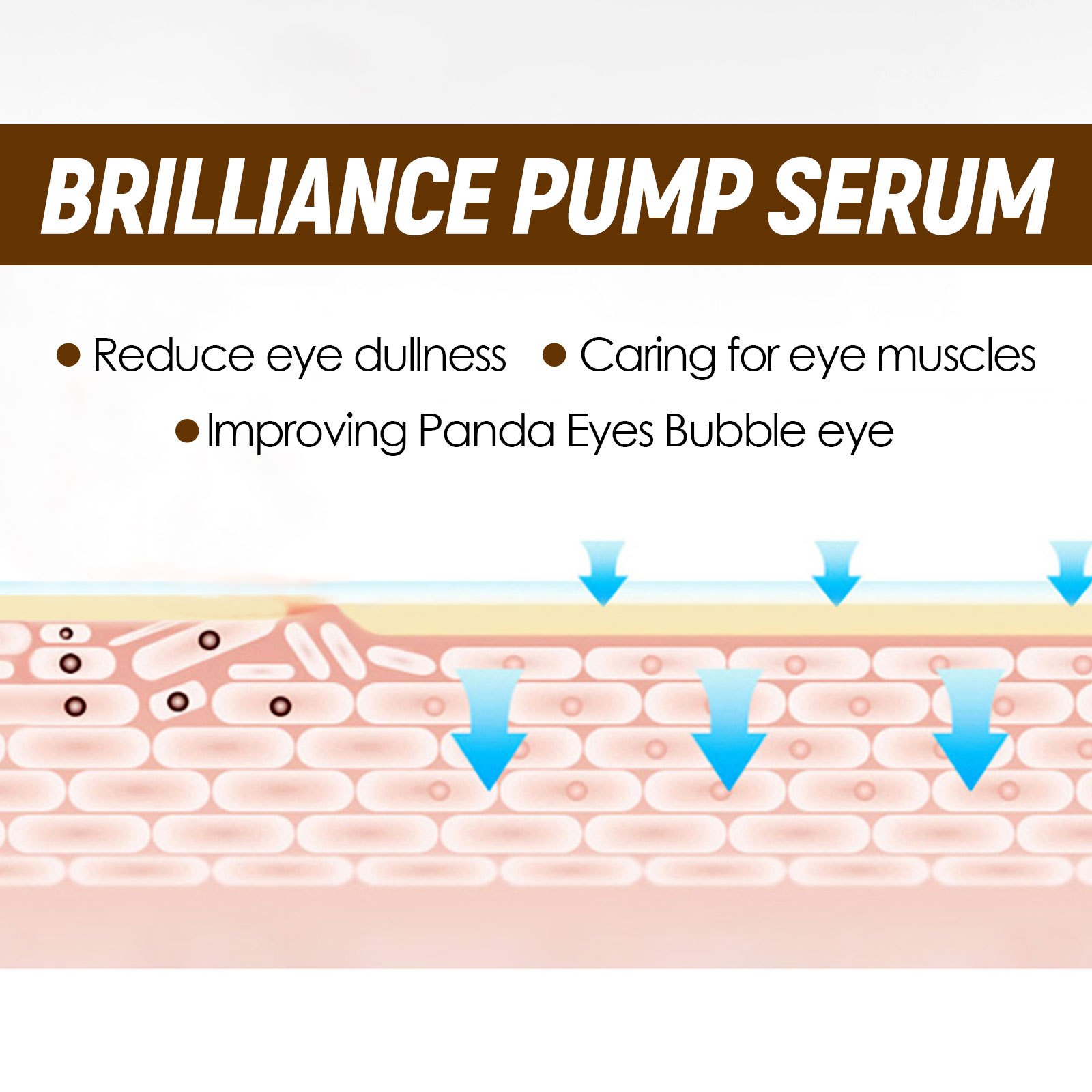 Our Anti-aging Eye Serum contains retinol, collagen, peony flower extract. It can bring soothing moisture to parched skin, radiant skin, intensive hydration and a new radiance. Its application method is very simple: After cleansing and toning, apply an appropriate amount of essence onto the skin around the eyes, and gently massage from the inside out with your hands for absorption. Quickly remove bags under the eyes, firm the delicate skin around the eyes, smooth crow's feet, fade dark circles, puffiness and fine lines.