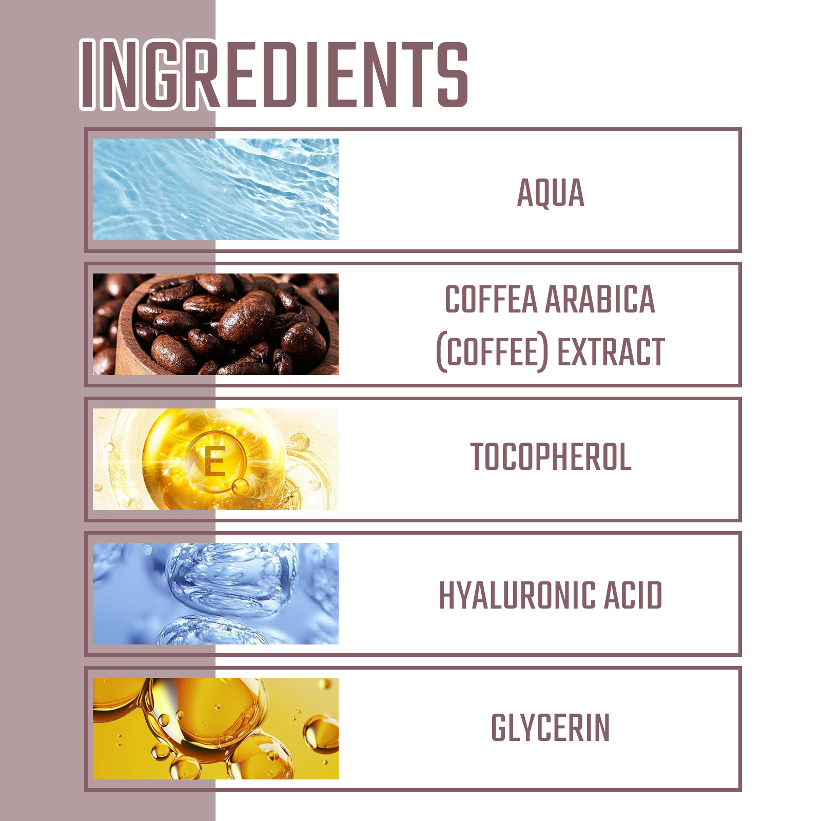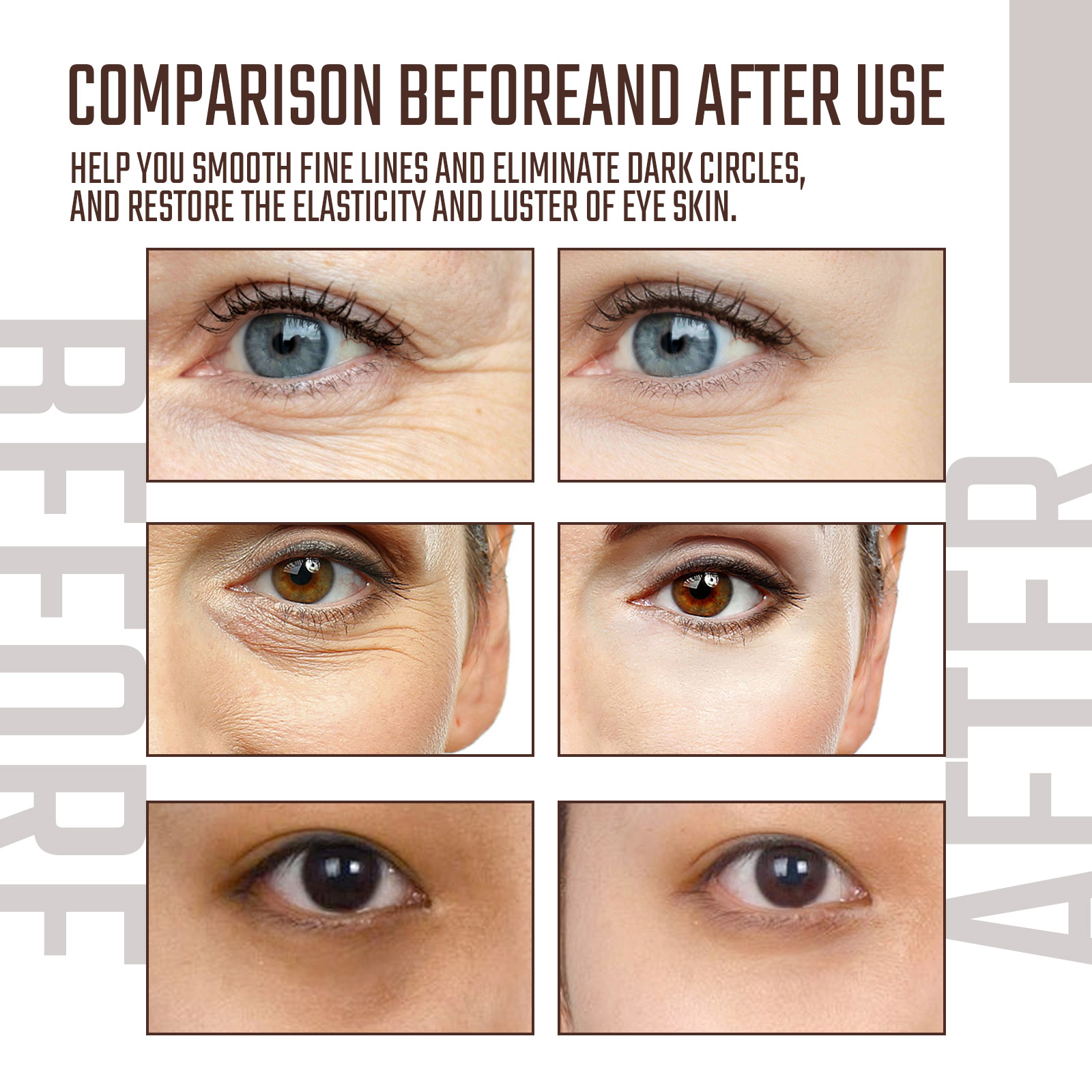 Our anti-aging anti-wrinkle eye serum contains tocopherol, hyaluronic acid. It can help smooth out fine lines, eliminate dark circles, restore elasticity and shine to the skin under the eyes, help brighten the complexion and make your eyes glow. Its use method is very simple: after cleansing and toning, evenly apply appropriate amount to the skin around the eyes, massage gently with fingertips in circular motions until completely absorbed. It can also remove bags under the eyes and prevent dark circles.