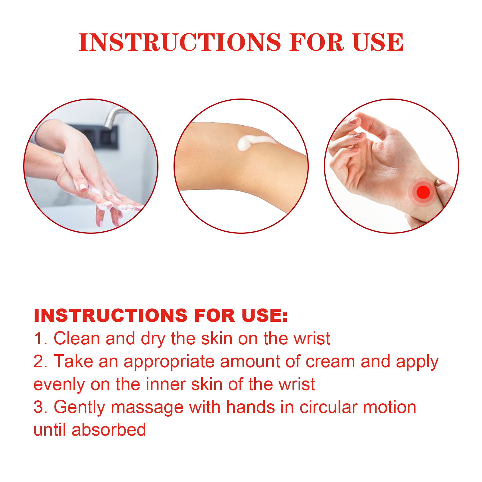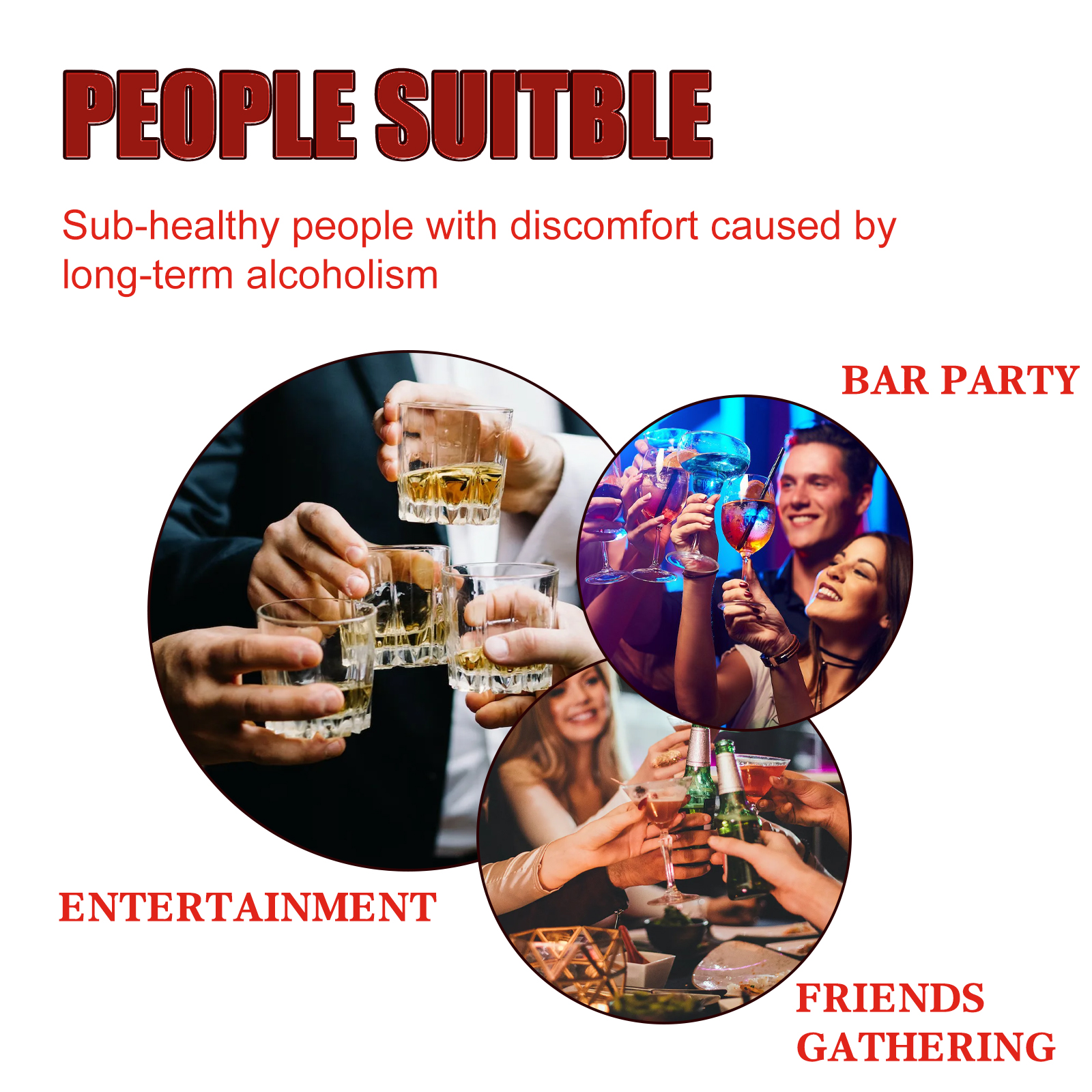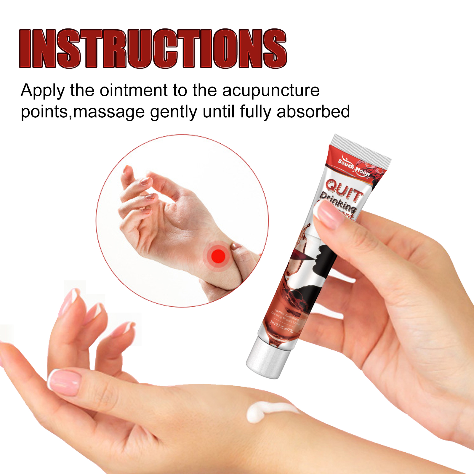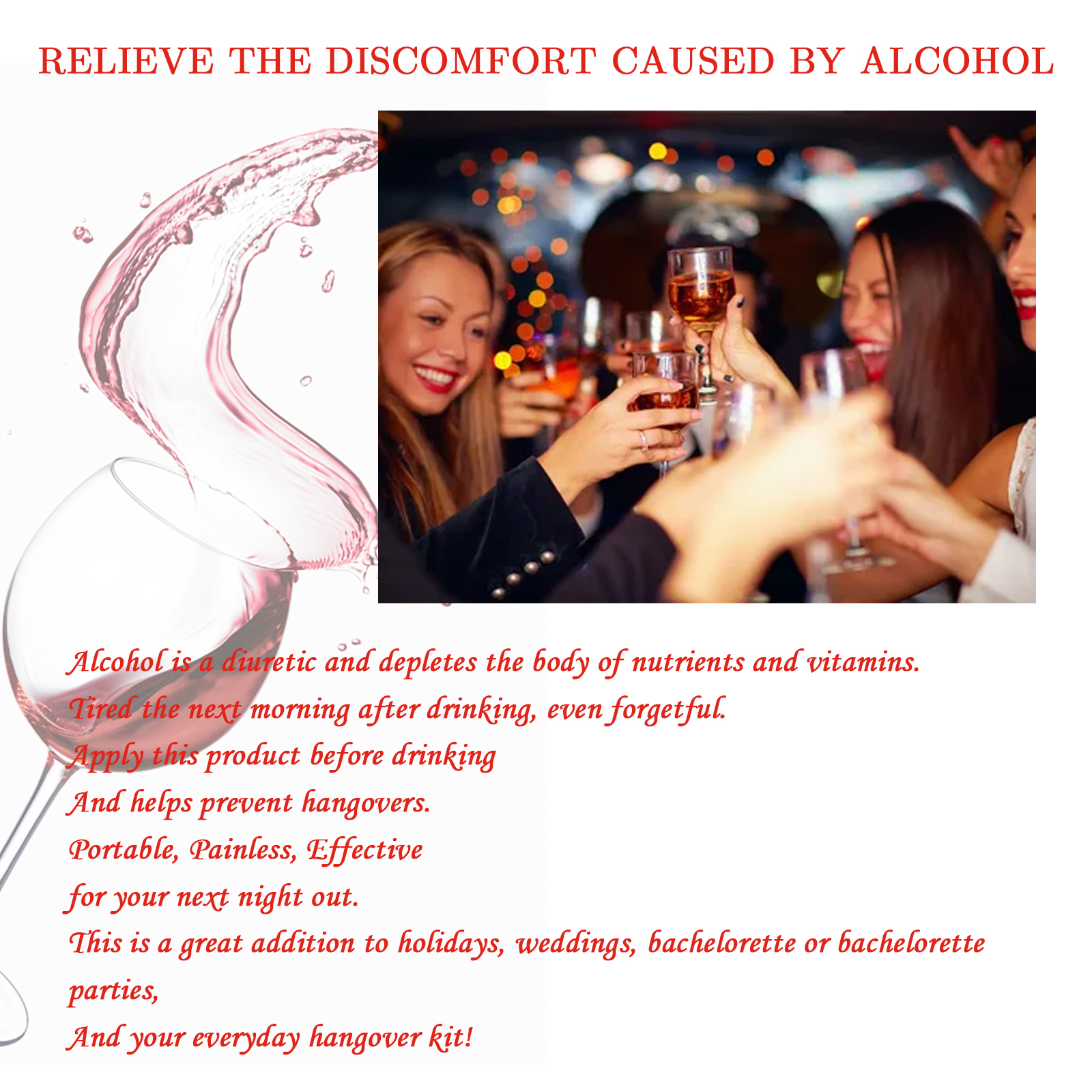 Our Quit Drinking Ointment contains peppermint extract, turmeric extract and pueraria extract. It can effectively relieve symptoms such as dizziness, nausea and fatigue after a hangover. Its application method is very simple: 1. Clean and dry the skin on the wrist, apply an appropriate amount of this product evenly on the inner skin of the wrist, and gently massage with the hand in a circular motion until absorbed. Prevent hangovers and relieve nausea and fatigue.