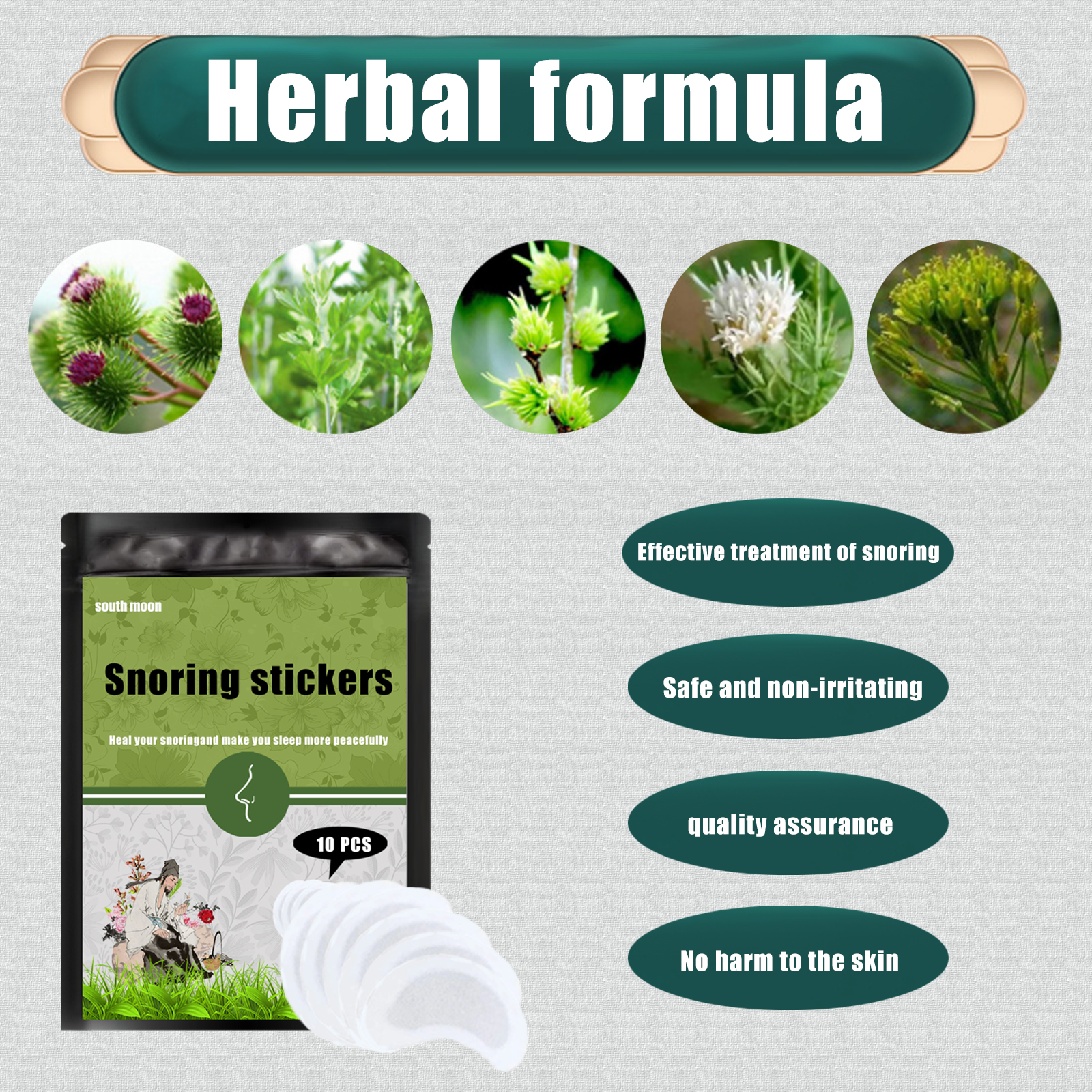 Our anti-snoring patch contains bupleuri root extract, chamomile extract. It can have 10-20% oxygen absorption, so you have more energy and deeper and better quality sleep. Its application method is simple: 1. Clean and dry the mouth skin. 2. Open the package, take out the patch, and peel off the back film. 3. Cover your mouth with a patch and gently apply it. Tear it off when you wake up. And it can reduce stress and anxiety.