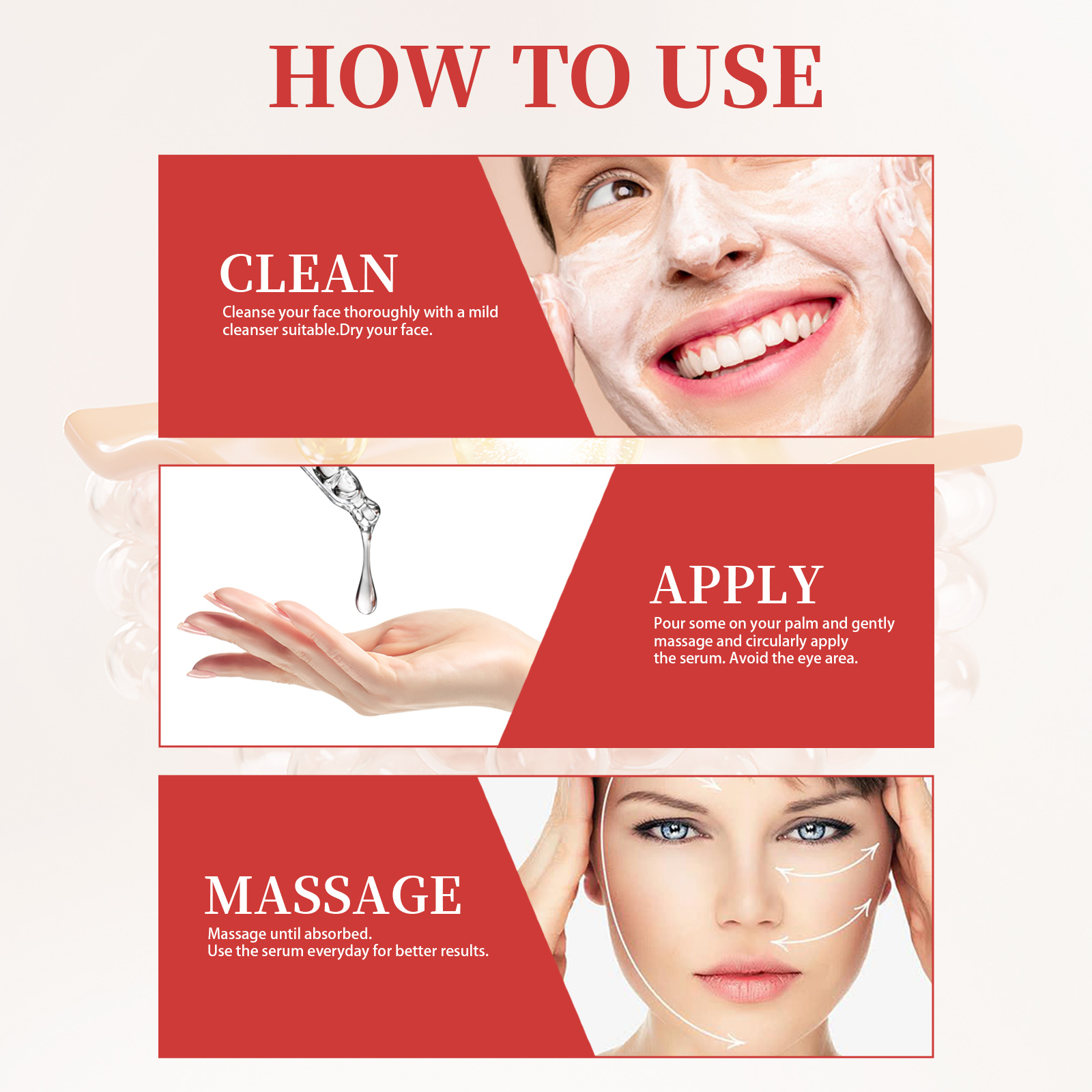 Our anti-wrinkle brightening serum contains lavender extract, ascorbic acid (vitamin C) and Jojoba seed oil. It can reduce fine lines, wrinkles, even skin tone, firm skin, make skin elastic. Its application is simple: 1. Clean, thoroughly clean your face with a suitable gentle cleanser. Dry your face. 2. Apply, pour some into the palm, gently massage and apply the serum in circular motions. Avoid the eye area. 3. Massage until absorbed. For better results, use serum daily. Anti-wrinkle Whitening serum smooths skin, removes fine lines and fights wrinkles.