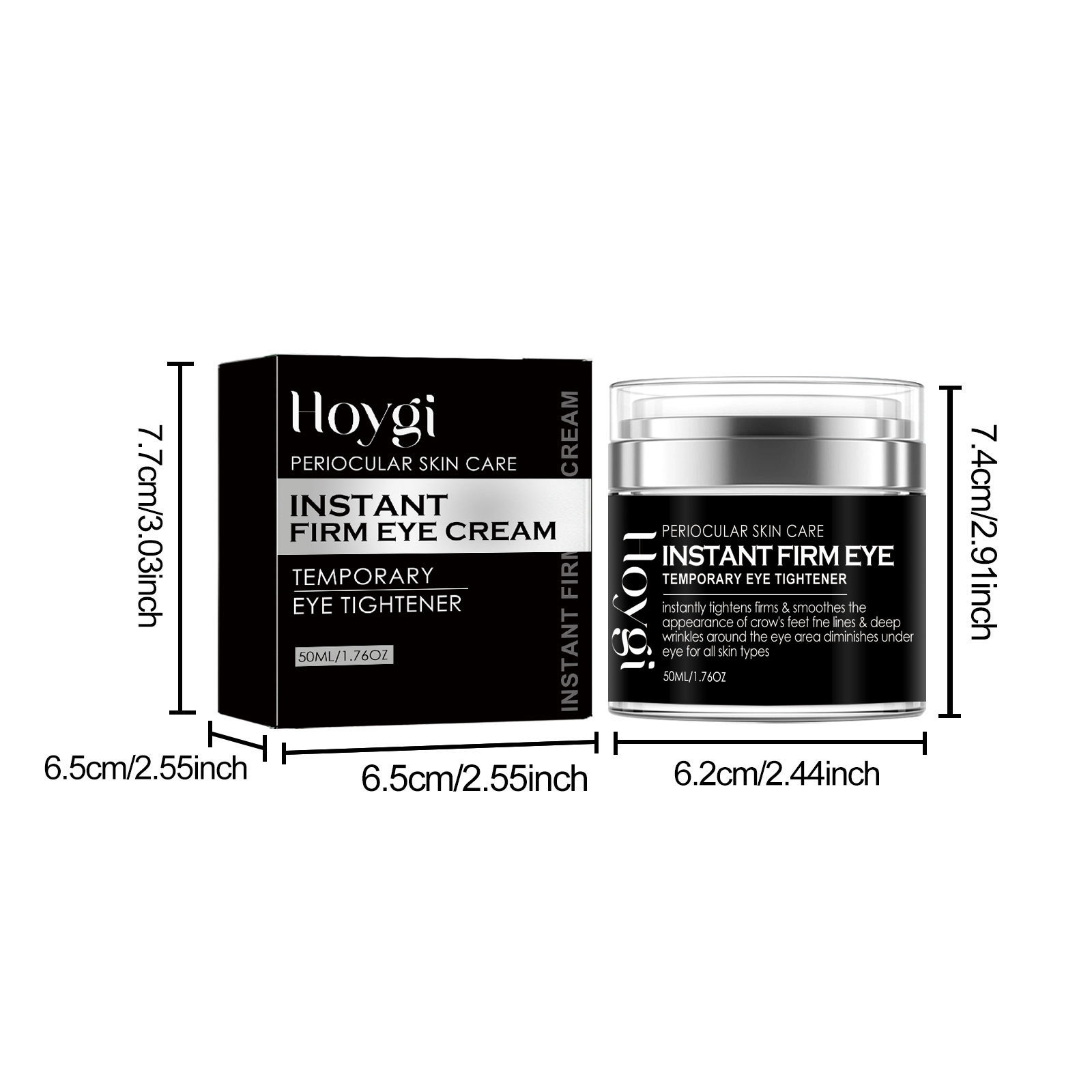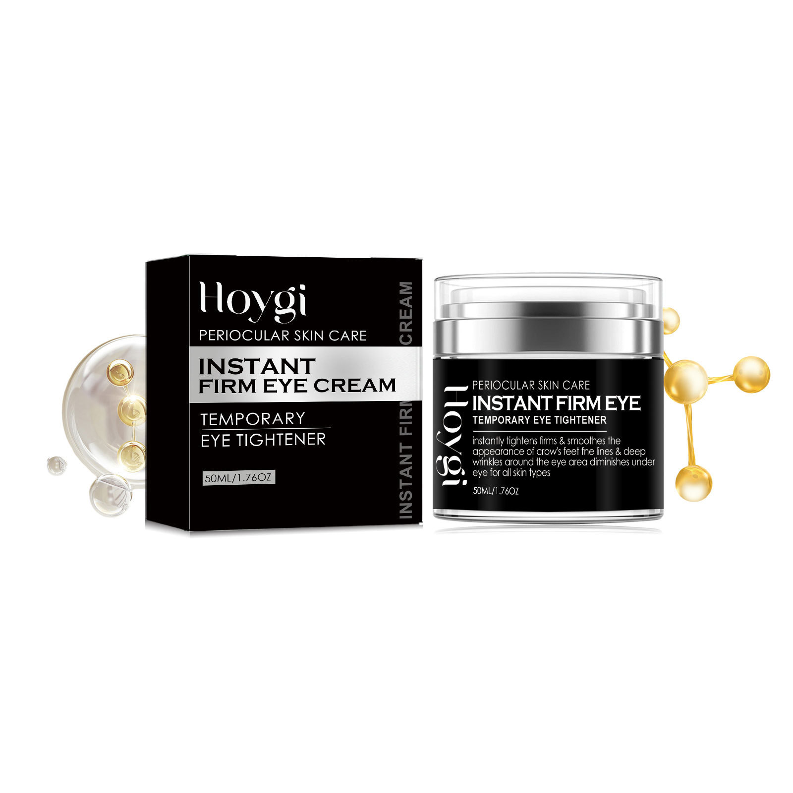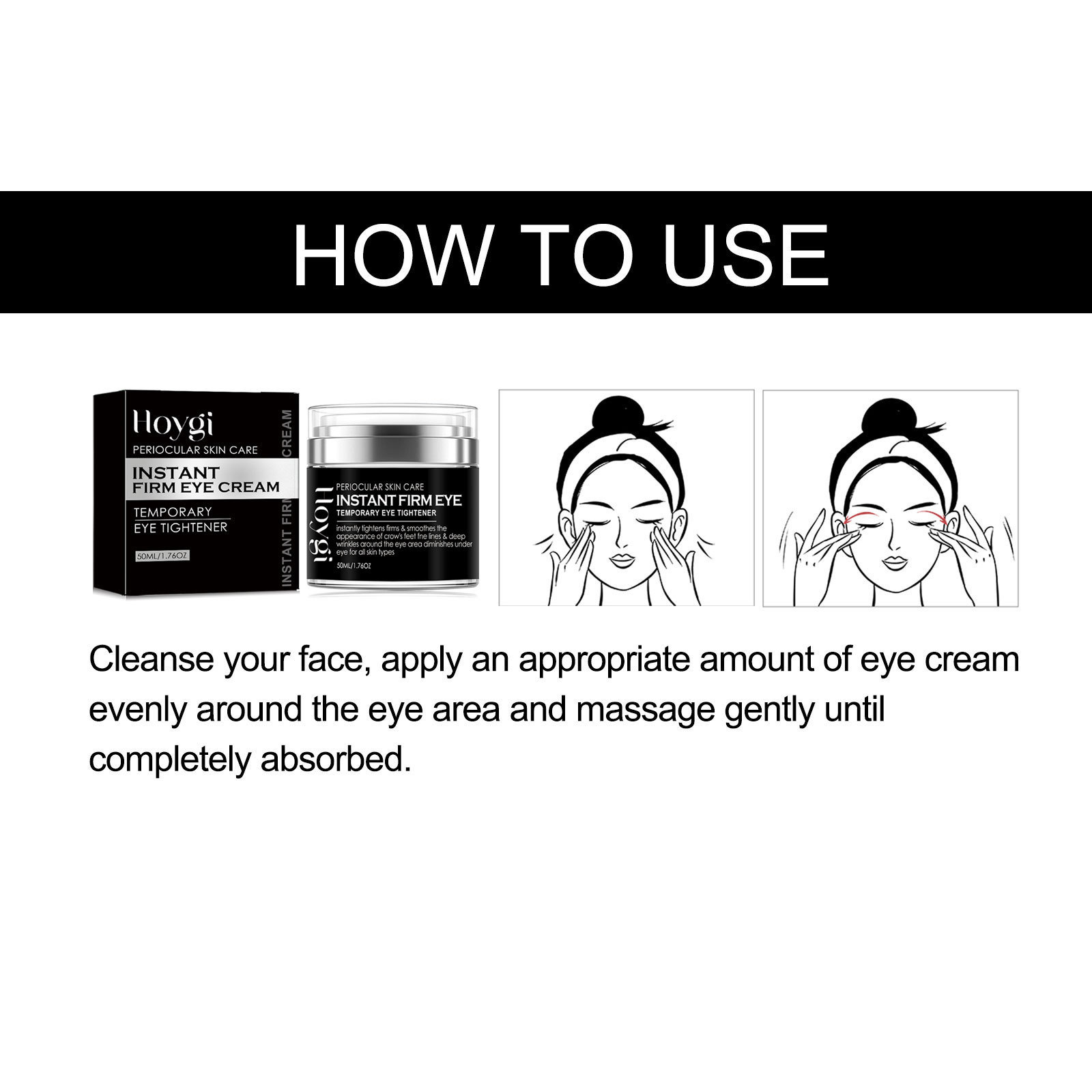 Our Instant Firm Eye Cream contains collagen, hyaluronic acid and vitamin E. It tightens and smoothes the skin, reduces crow's feet, laugh lines and sagging, reduces water loss, and replenishes collagen around the eyes, thereby reducing fine lines and leaving skin glowing. Its application method is very simple: clean the face, take a proper amount of eye cream evenly apply to the skin around the eyes, gently massage until completely absorbed. After use, it can quickly remove the bags under the eyes, tighten the delicate skin around the eyes, smooth the crow's feet, fade the dark circles, puffiness, fine lines, and make your eyes more beautiful.