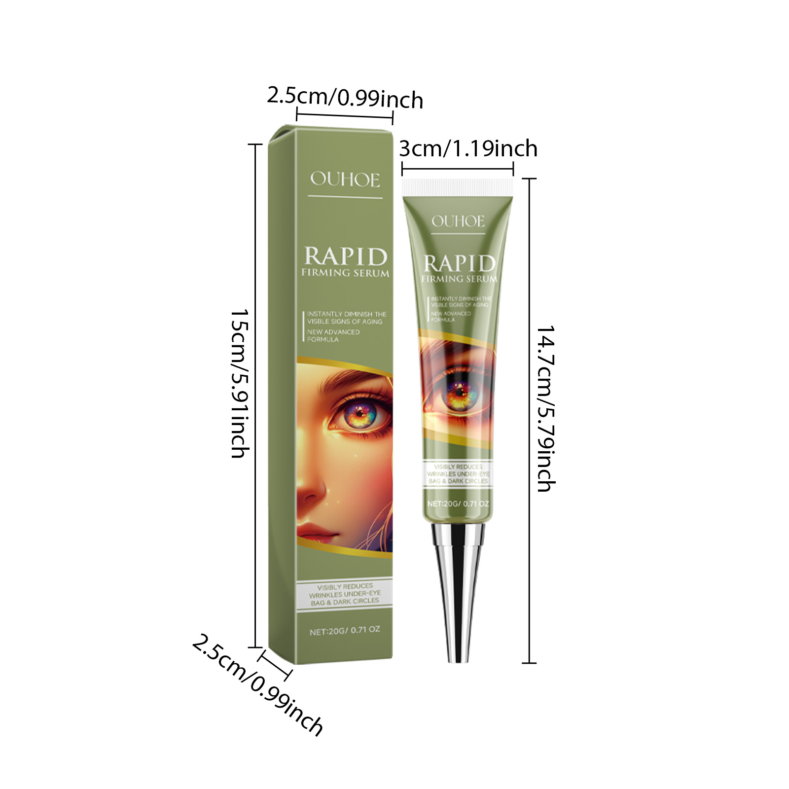 Our Rapid Firming Serum contains Glycerin, Niacinamide, Kojic Acid. It can help smooth out fine lines and eliminate dark circles, restore elasticity and shine to the skin under the eyes, help brighten the complexion and make your eyes glow brightly. The way to use it is simple: dry your face, apply an appropriate amount of eye cream under your eyes, massage gently, and wait for 2 minutes until the eye cream is absorbed. It can effectively smooth fine lines, eliminate dark circles under the eyes, and make the skin around the eyes more delicate and shiny.