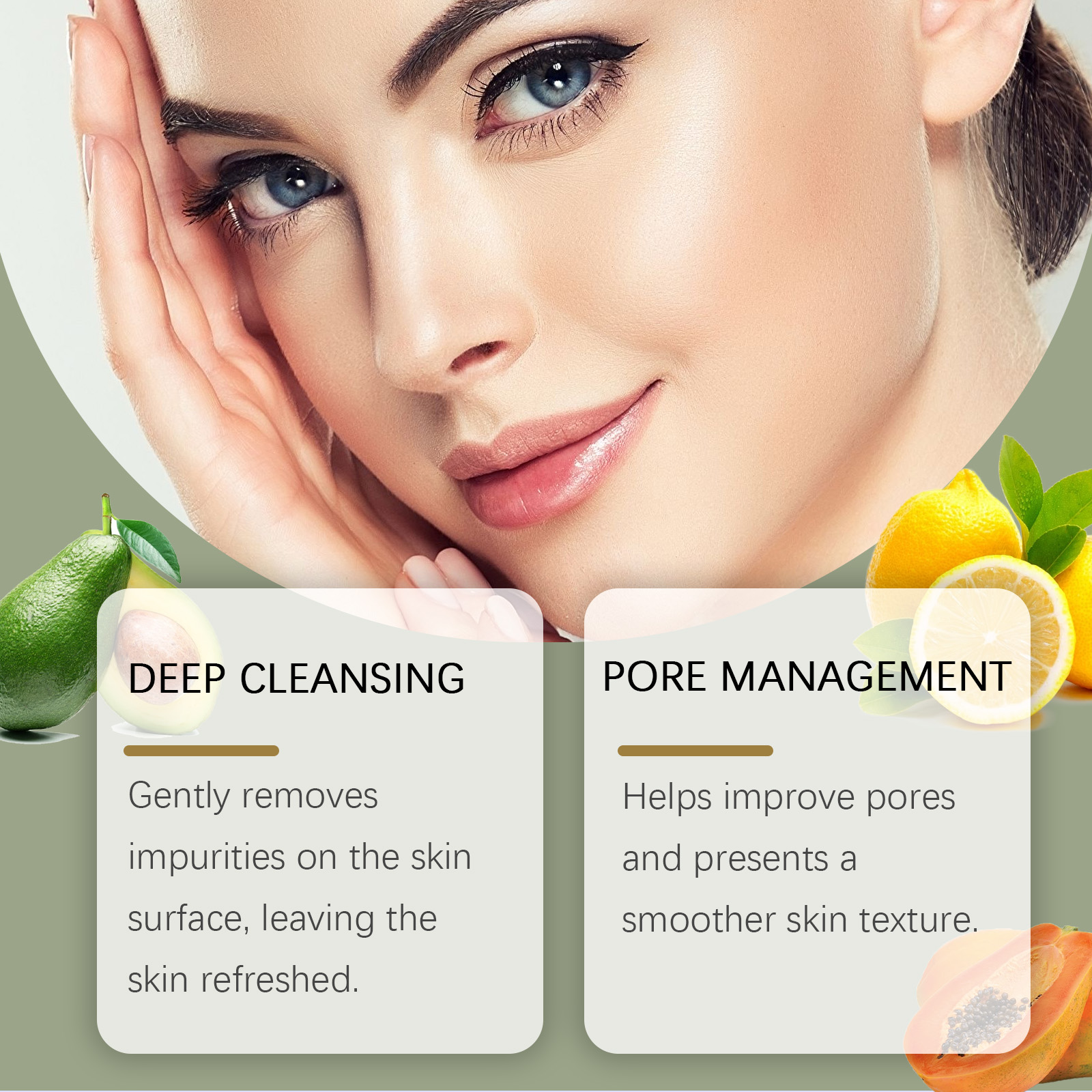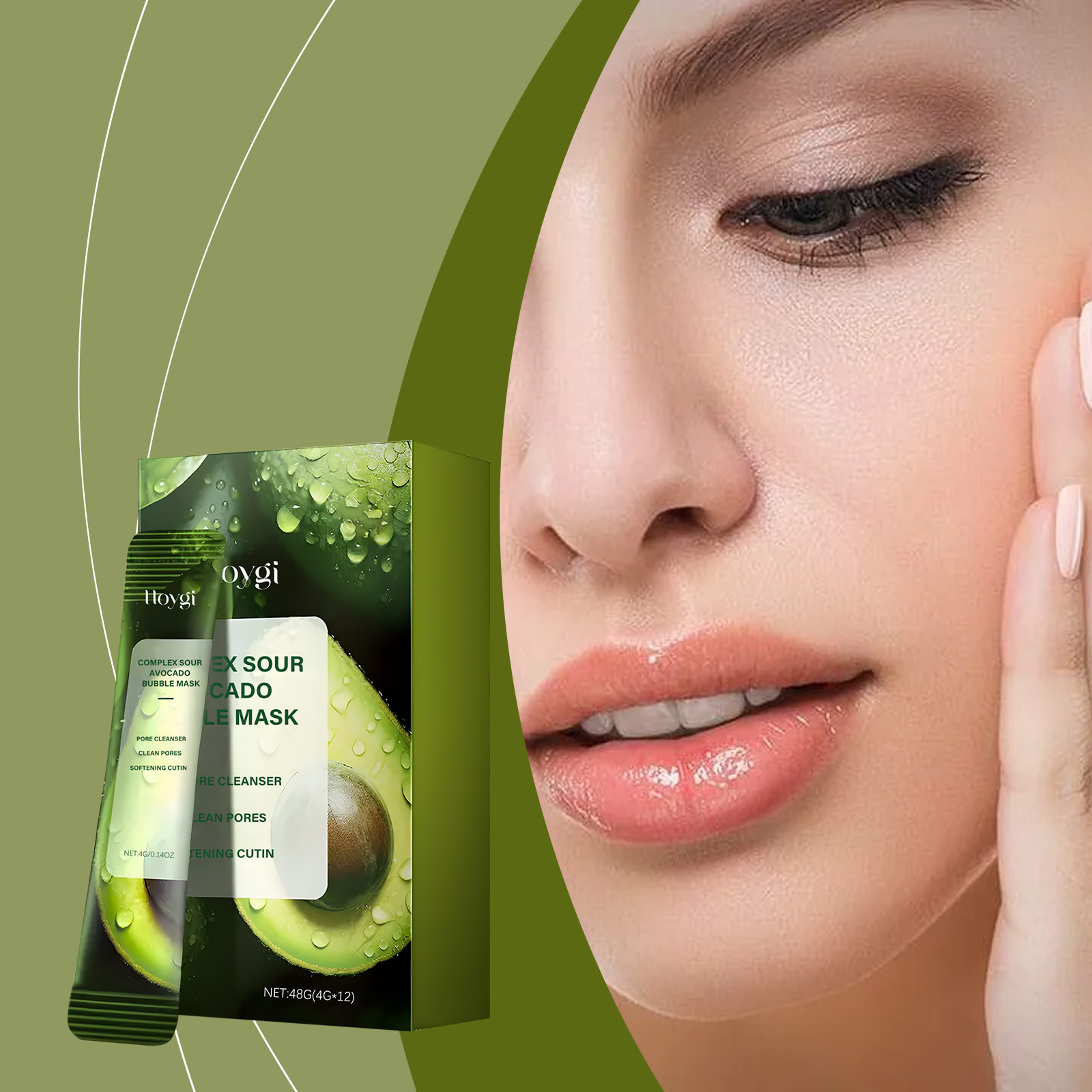 Our Avocado Cleansing Bubble mask contains lemon fruit extract, papaya fruit extract. It gently removes impurities from the surface of the skin and leaves the skin refreshed. Its application is simple: completely clean dry facial skin; Tear open a small bag of this product and apply evenly to the face; Let it dry for 20-25 minutes, then rinse your face with water. It can also help improve pores for a smoother skin texture.