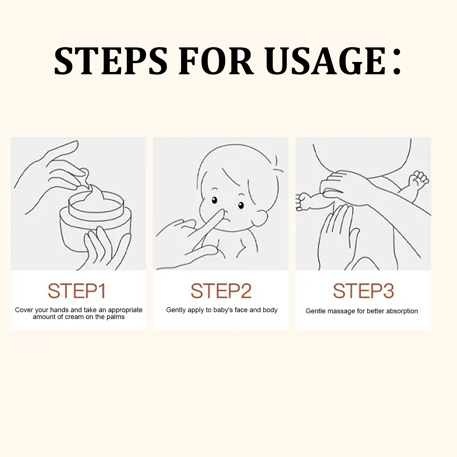 Our baby skin care camellia oil cream contains camellia seed oil extract, glycerin, and water. It can avoid redness, become an apple face, fight wet itching, red spots, relieve dry, peeling skin; Repair the skin barrier. The way to use it is very simple: 1. Cover your hands, take the appropriate amount of cream on the palm; 2. Gently apply to baby's face and body; 3. Gentle massage for better absorption. Baby skin care camellia oil cream moisturizes and prevents dry and cracked skin.