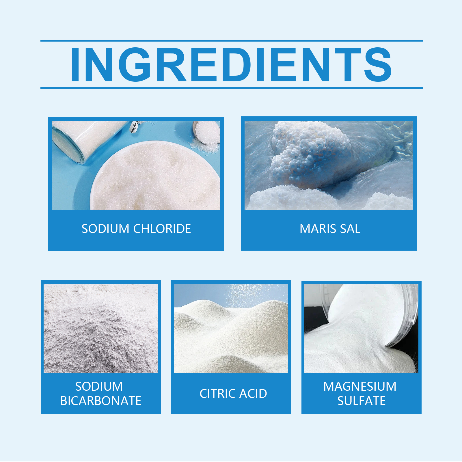 Our natural bath salts contain sea salt, sodium bicarbonate and citric acid. It can provide excellent moisturizing effect, helping the skin to stay smooth and hydrated. Its use is simple: Pour an appropriate amount of this product into warm water and allow it to dissolve completely. Soak in the tub for 15-20 minutes to relax and allow your skin to absorb. You can dissolve it in the bathtub or apply it directly to your body in the bath. Use 5g per bath. After taking a shower, rinse your body with water and let dry. And can relieve physical fatigue and tension, enhance the bath experience, and bring physical and mental relaxation.