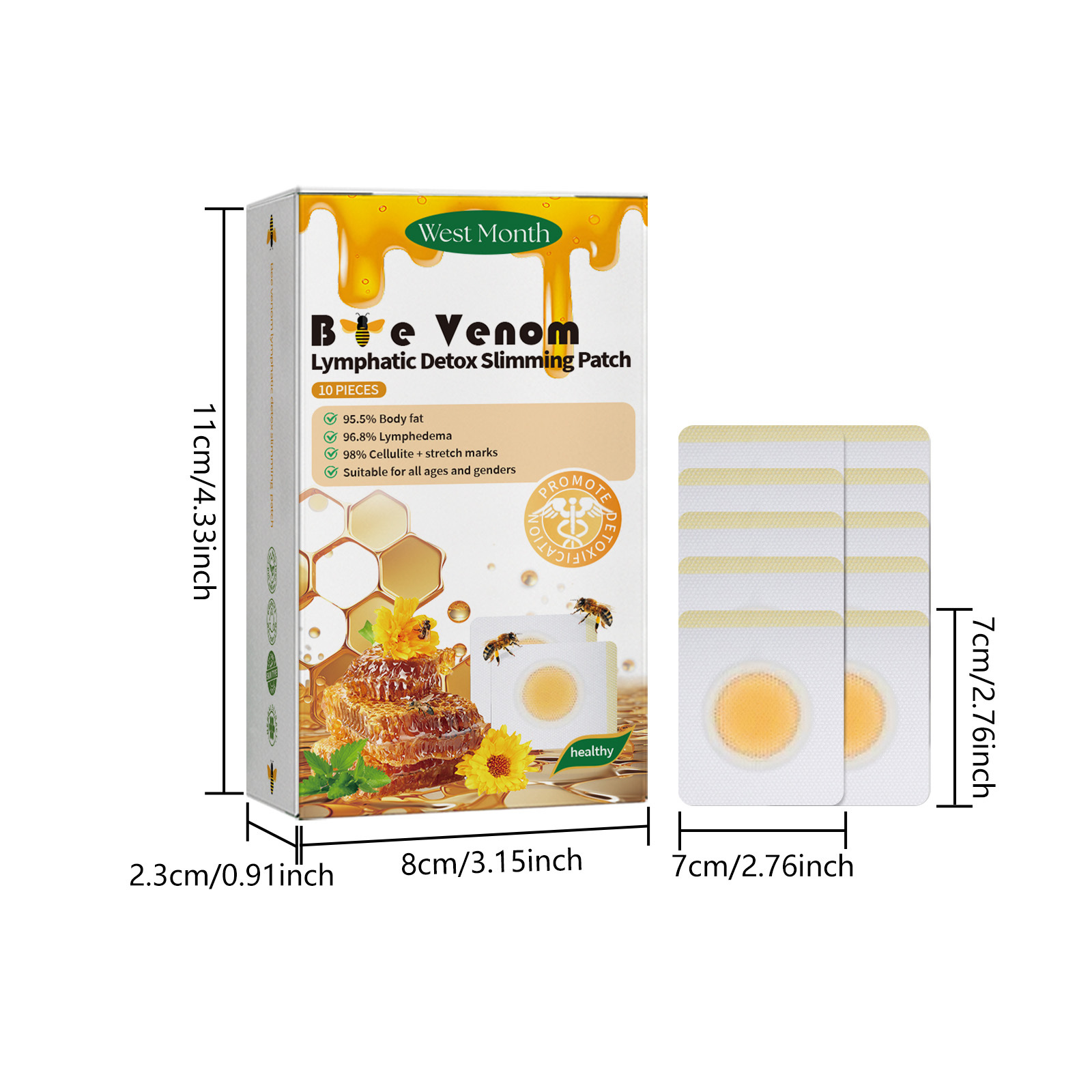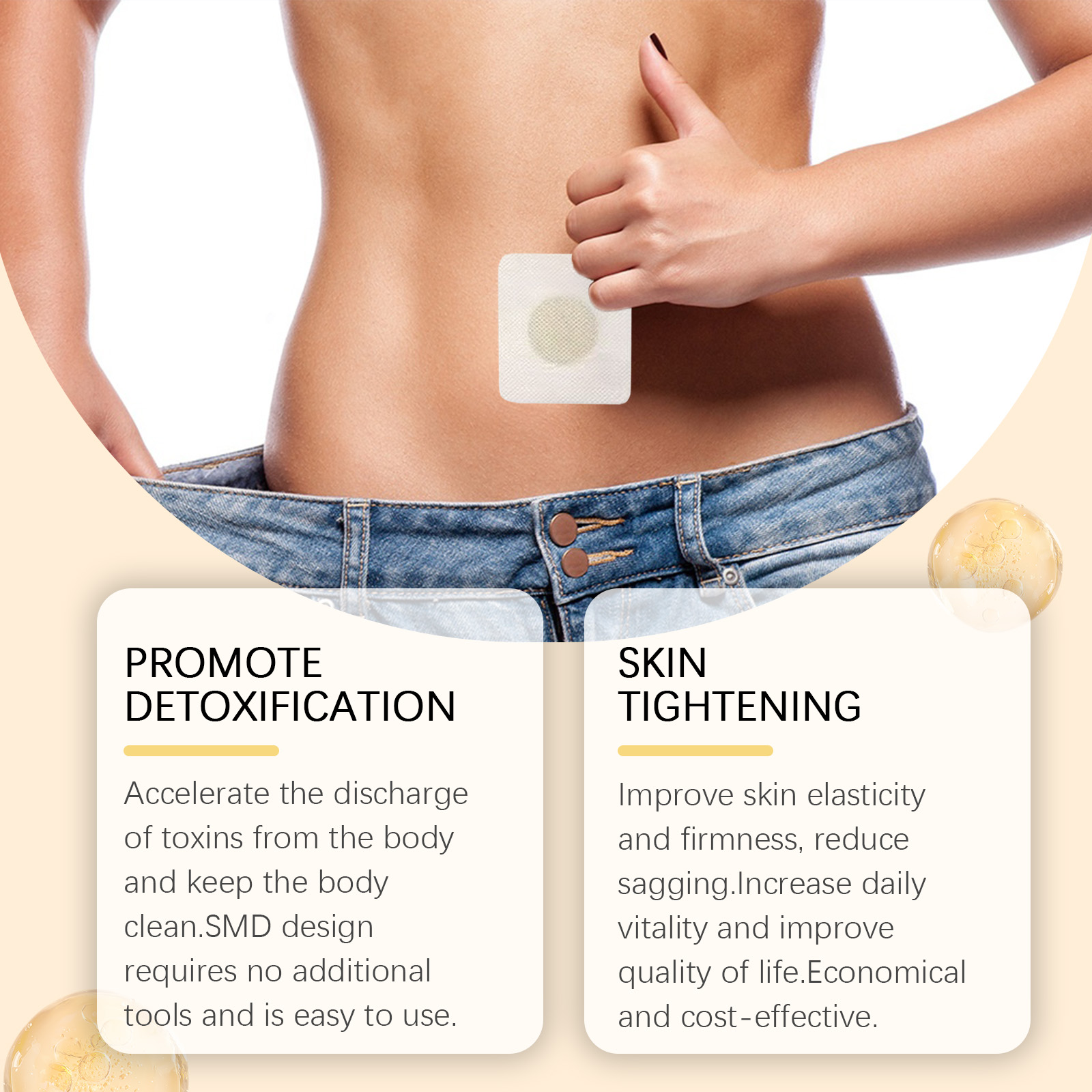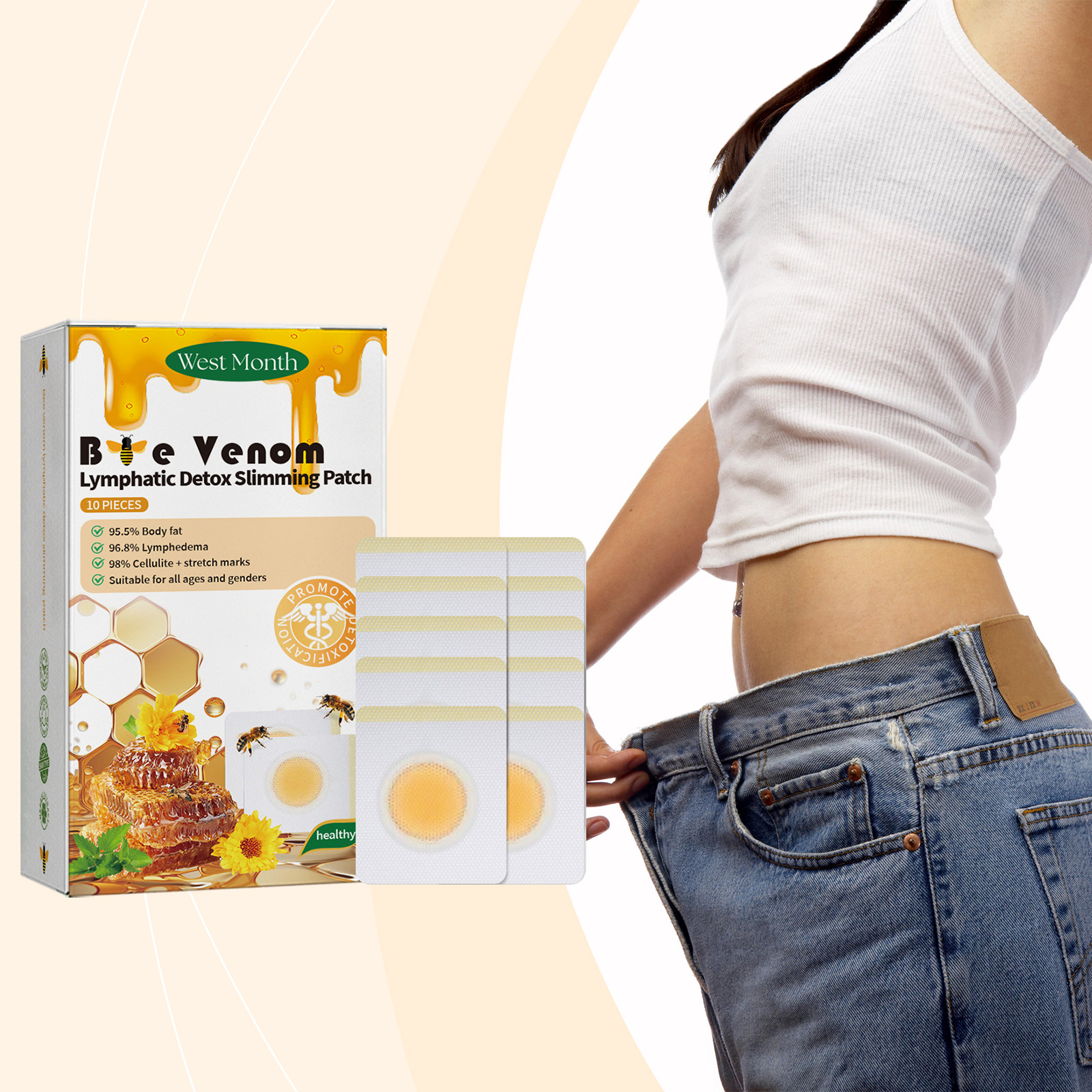 Our bee Venom Body shaping patch contains bee venom, ginger root extract and chamomile extract. It can accelerate fat catabolism, promote blood circulation, improve skin condition, enhance skin elasticity and firmness. Helps relieve skin irritation that may occur during use and provides a soothing feeling. Helps improve skin health and further supports weight loss and detoxification. Its use is simple: 1. Clean and dry belly skin; 2. Place the patch on your belly button, making sure the patch is in close contact with your skin; 3. Wait 6-8 hours and then remove the patch. Bee Venom Body Shaping Patch accelerates the elimination of toxins from the body and keeps the body clean. Improve skin elasticity and firmness, reduce relaxation. Increase daily vitality and improve quality of life. Add bee venom ingredient, stimulate skin metabolism, improve skin elasticity, so that you have smooth and delicate skin while losing weight.
