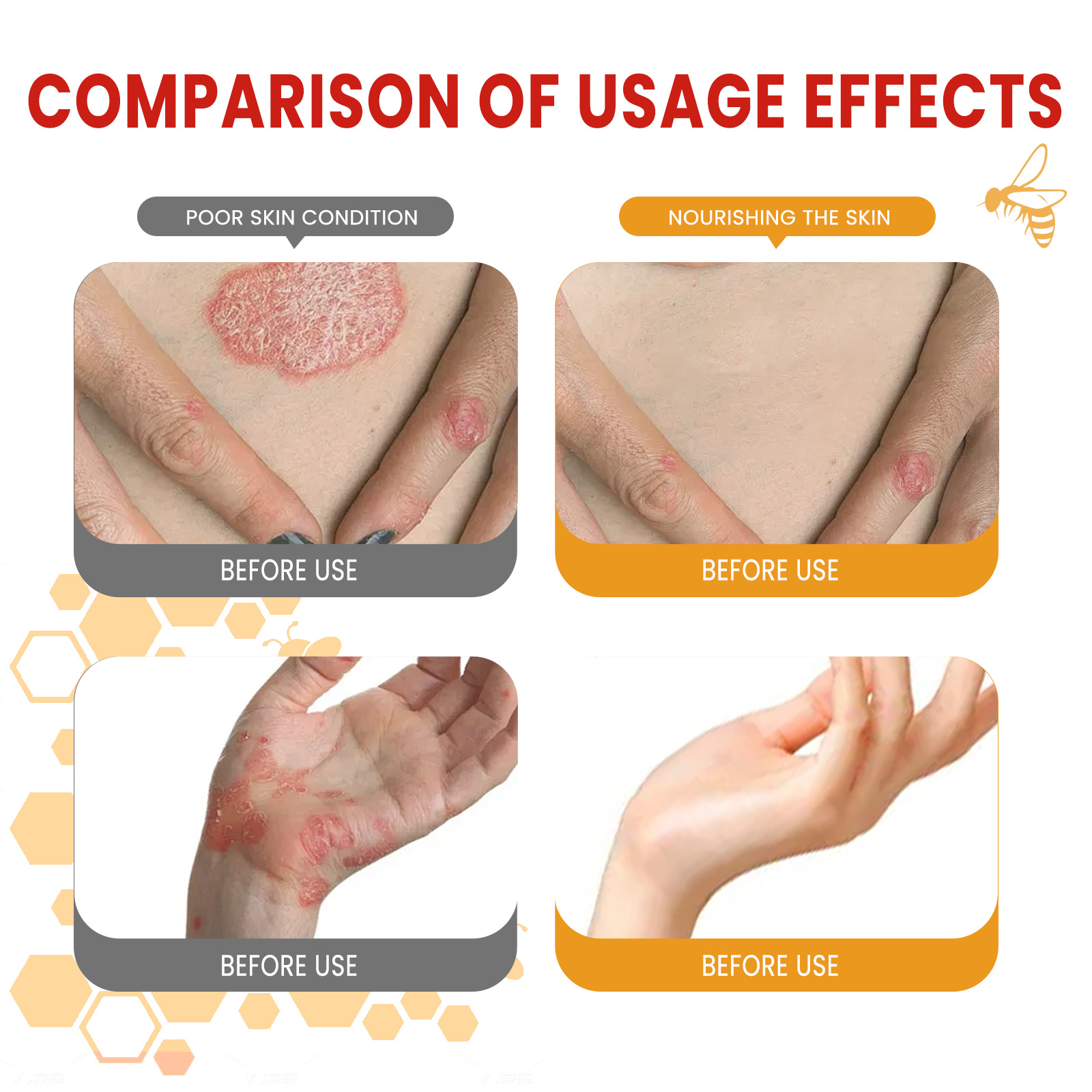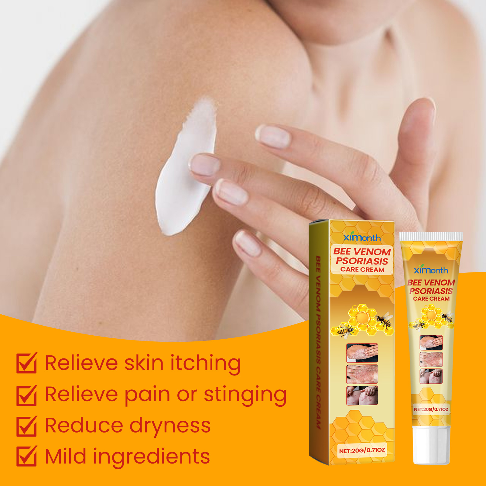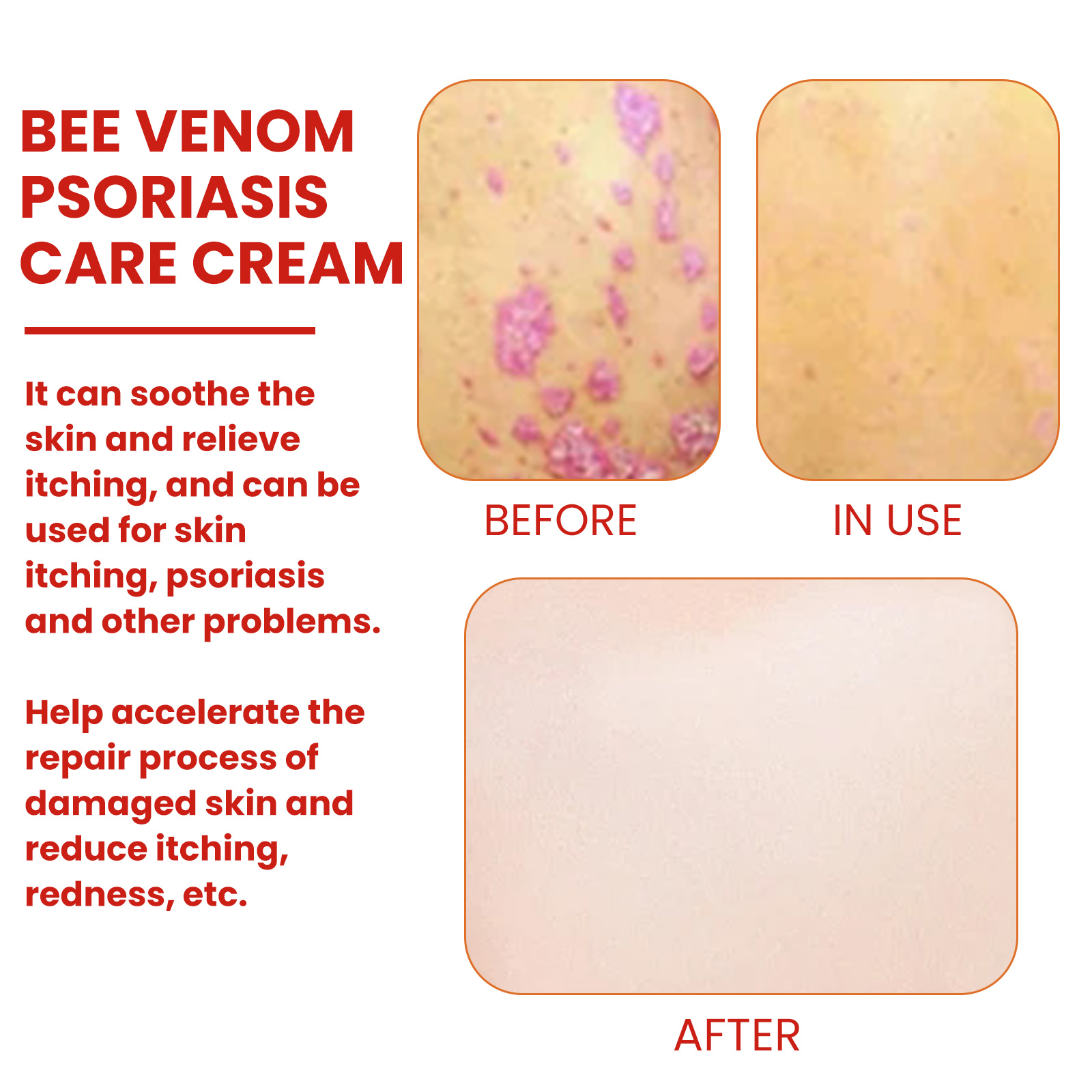 Our bee-venom Mossum paste contains bee venom and mint leaf oil. It can relieve itchy skin, relieve pain or tingling and reduce dryness with mild ingredients. Its application method is very simple :1. Before using, clean the affected area and keep the skin dry. 2. Apply appropriate amount of psoriasis ointment to the affected area, and then evenly apply. And can soothe the skin, relieve itching can be used for skin itching psoriasis and other problems.