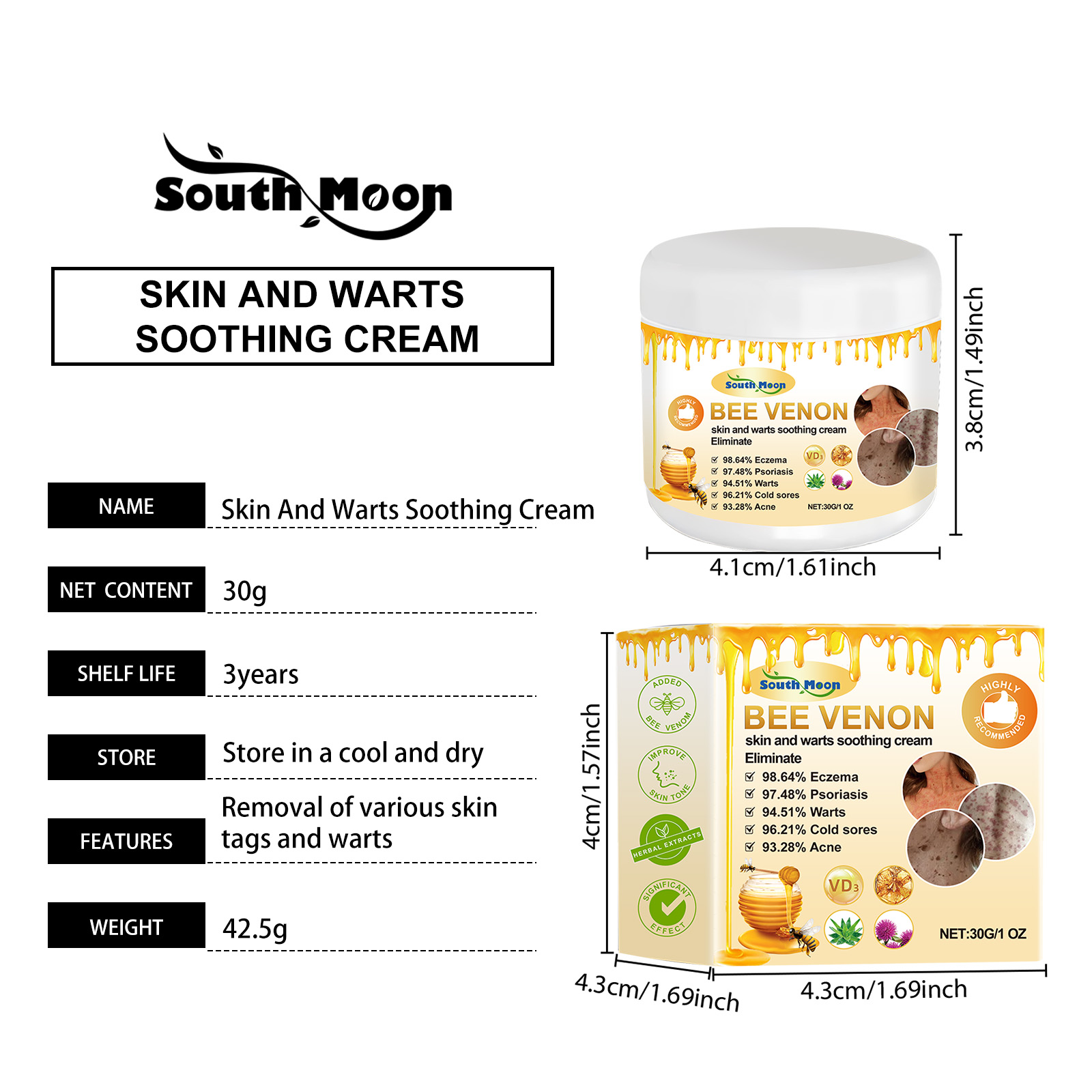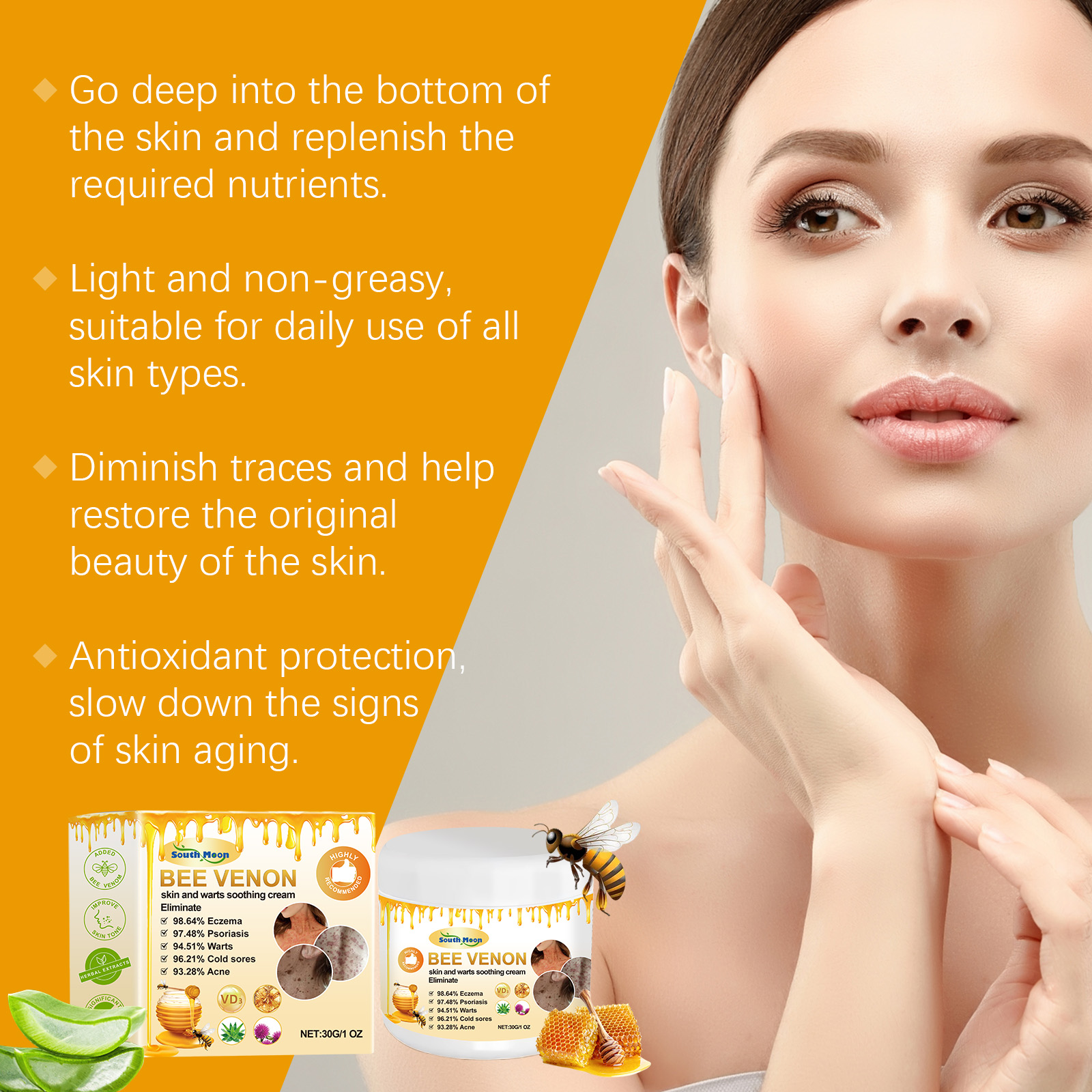 Our bee venom wart treatment cream contains emerald leaf extract and vitamin D3. It can help lighten skin tone and restore beauty and firmness. The way to use it is simple: clean the skin. Apply an appropriate amount of cream to the wart, then evenly apply, and wait for absorption. And can inhibit the regeneration of defects, long-term use, make the skin more uniform.