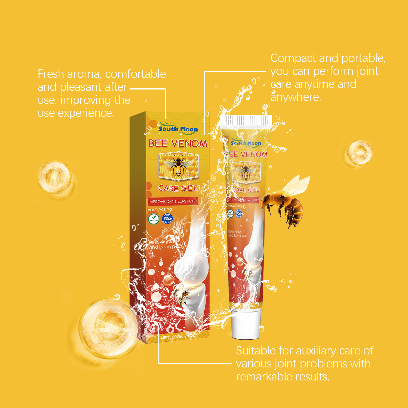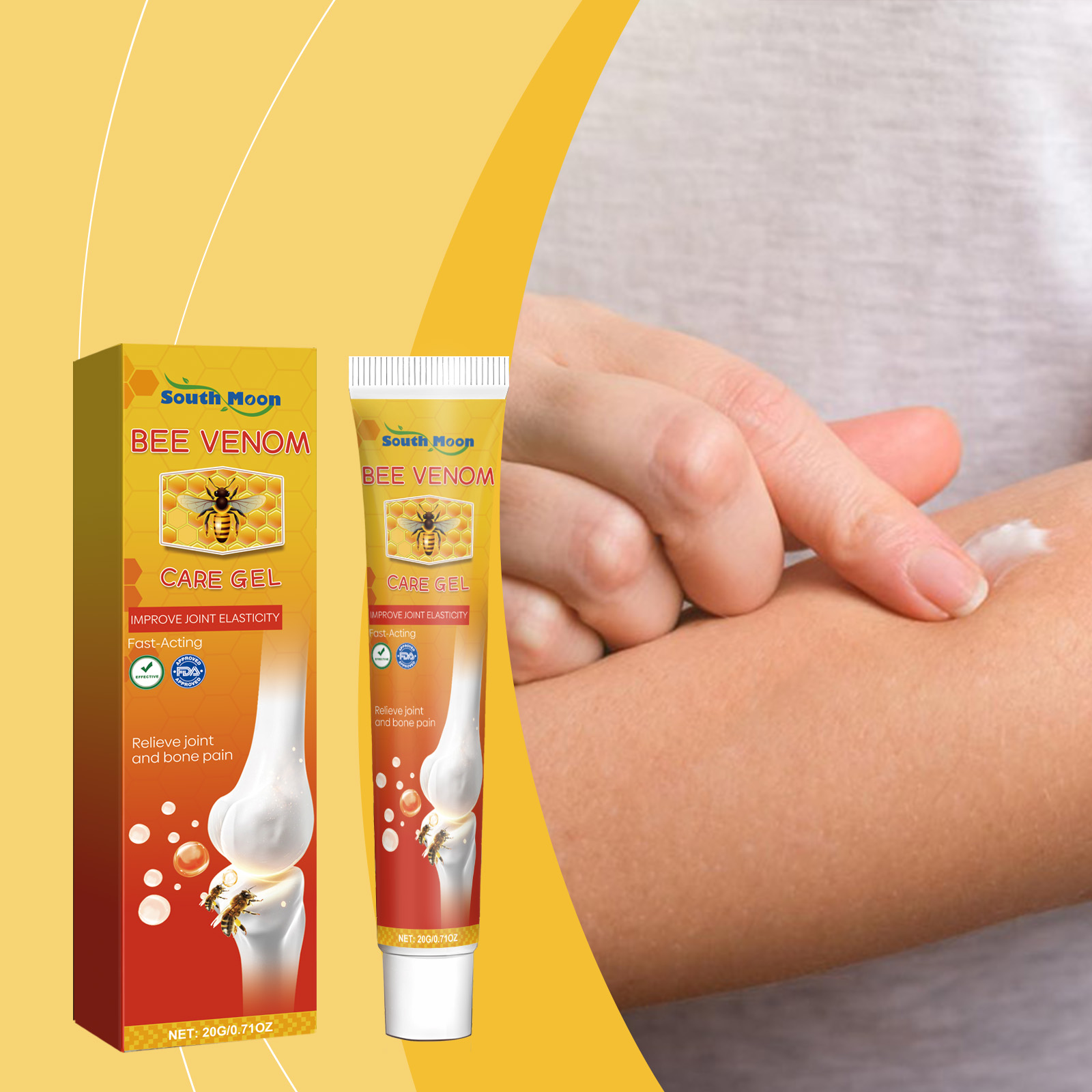 Our bee Venom Joint Care cream contains catechins and vitamin D3. It nourishes joints, repairs damaged tissue, and increases joint flexibility. Its application method is very simple: thoroughly clean the joint skin, dry it first, apply appropriate amount of this product evenly to the joint pain, gently massage until completely absorbed. And can promote blood circulation, improve joint flexibility.