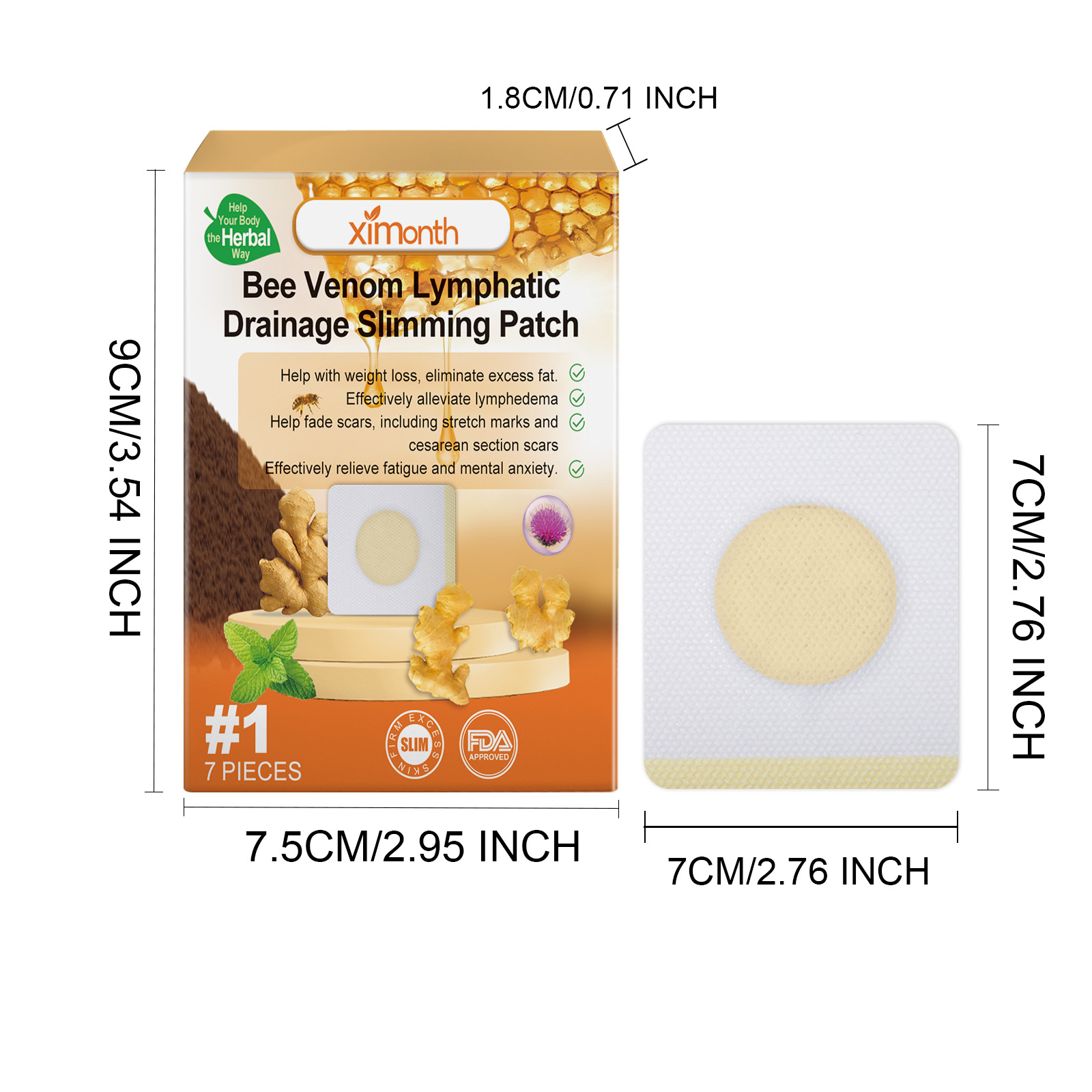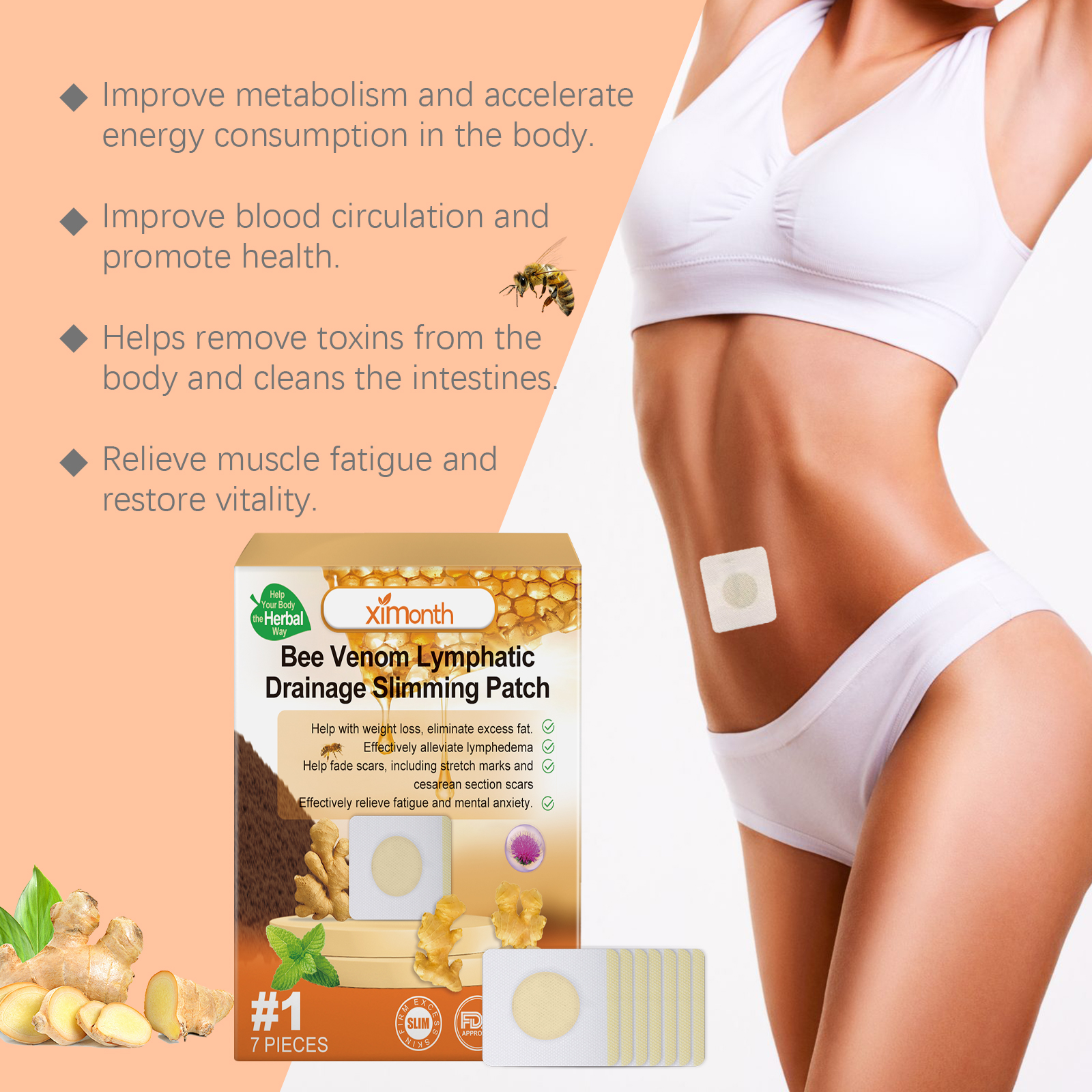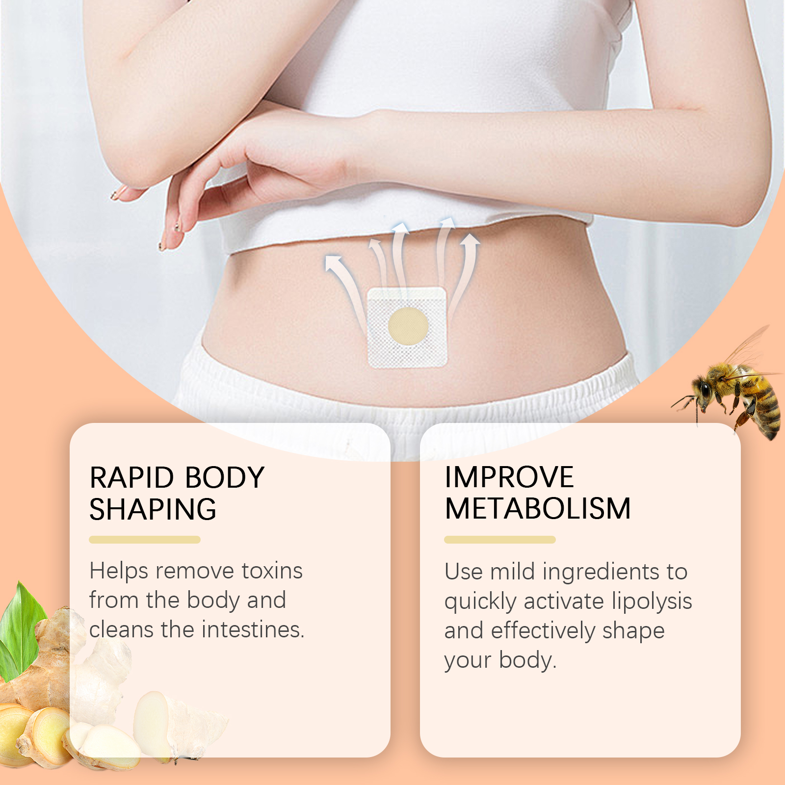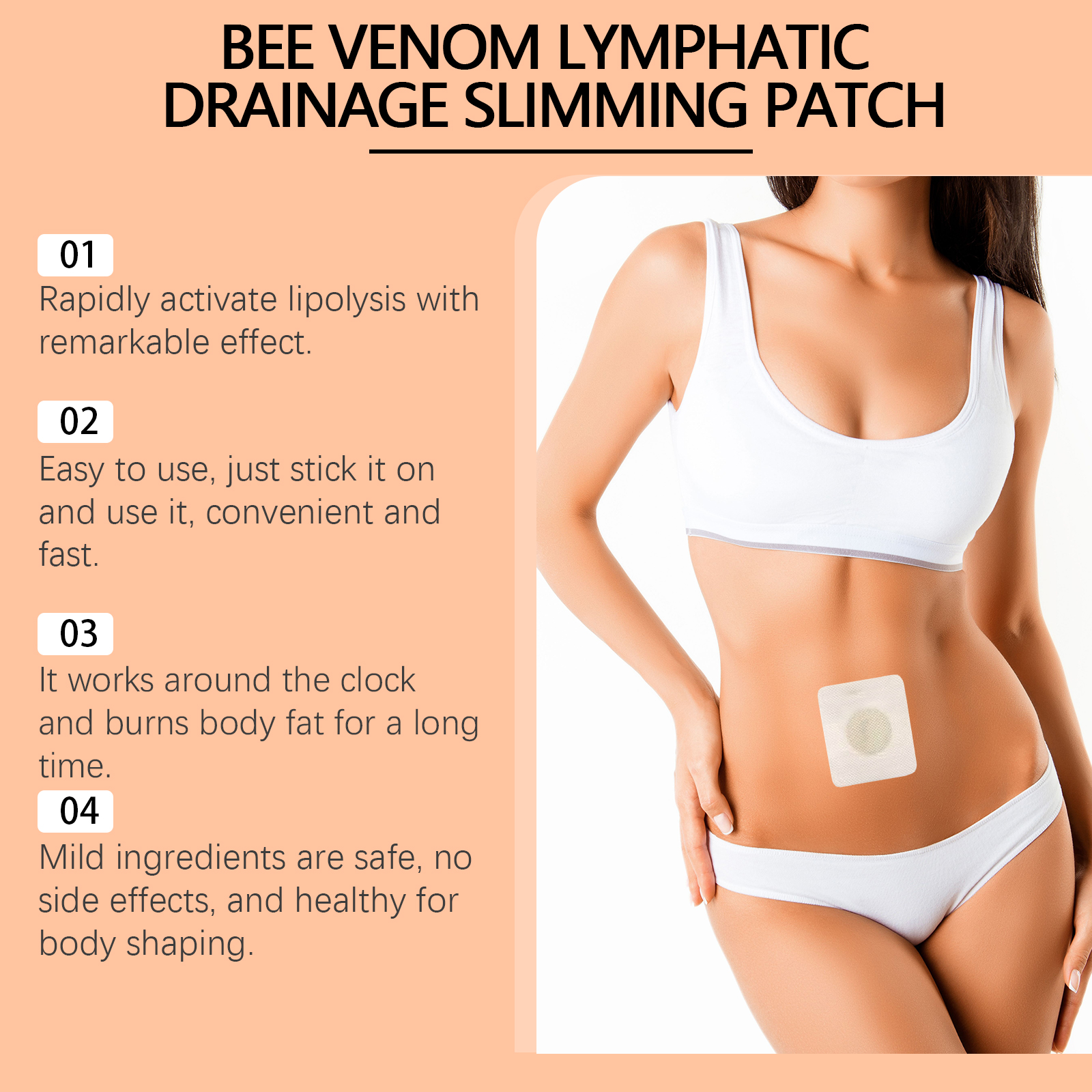 Our bee-venom Shaped-Lymphatic Slimming patch contains bee venom, ginger root extract, and rhizome extract of rhizoma atractylosa. It can be used with gentle ingredients that quickly activate fat breakdown and effectively shape your body. Continuous release of active ingredients that help burn deadly day. How to use it is simple: 1. Clean the skin around your belly button and keep it dry. 2. Place the patch on your belly button and gently press the patch to ensure proper adherence. 3. Wait 3-4 hours and then remove the patch. Bee Venom Slimming Patch helps flush toxins from the body and cleanse the intestines. Use gentle ingredients to quickly activate fat and effectively shape your body. Use gentle ingredients that quickly activate lipase and effectively shape your body. All ingredients are naturally extracted and do not contain hormones or harmful substances.