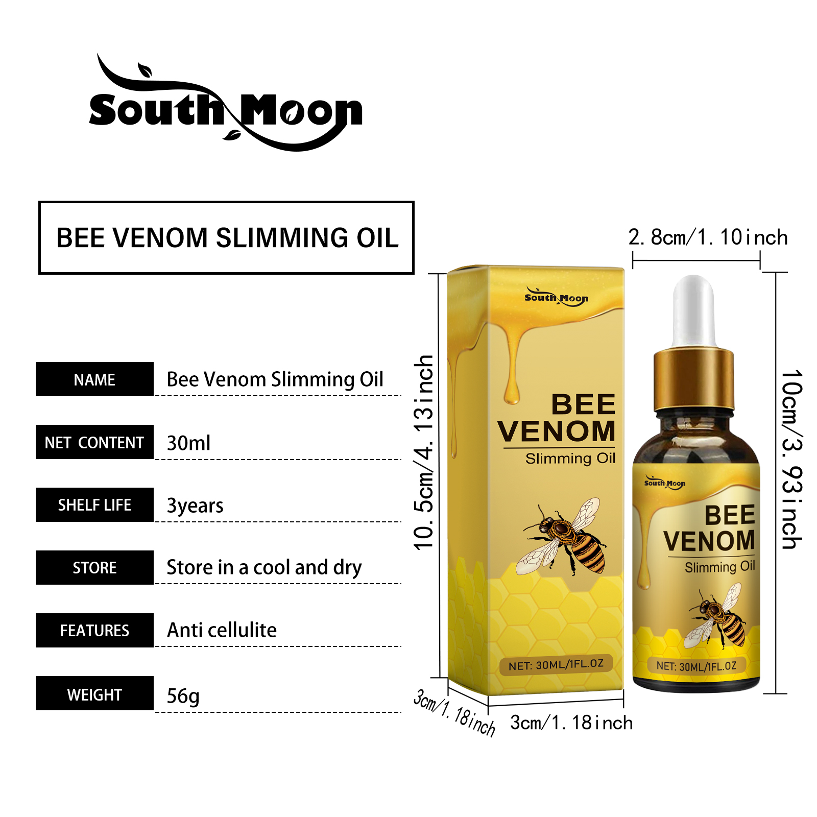 Our bee Venom slimming essential oil contains coffee extract, peppermint extract. It can effectively improve skin firmness against slack, showing youthful sag, 5 firm, beautiful skin. The way to use it is simple: 1. Clean dry skin. 2. Apply appropriate amount of product to skin evenly. 3. Gently massage until absorbed. And allows you to enjoy a fresh and comfortable shaping process.