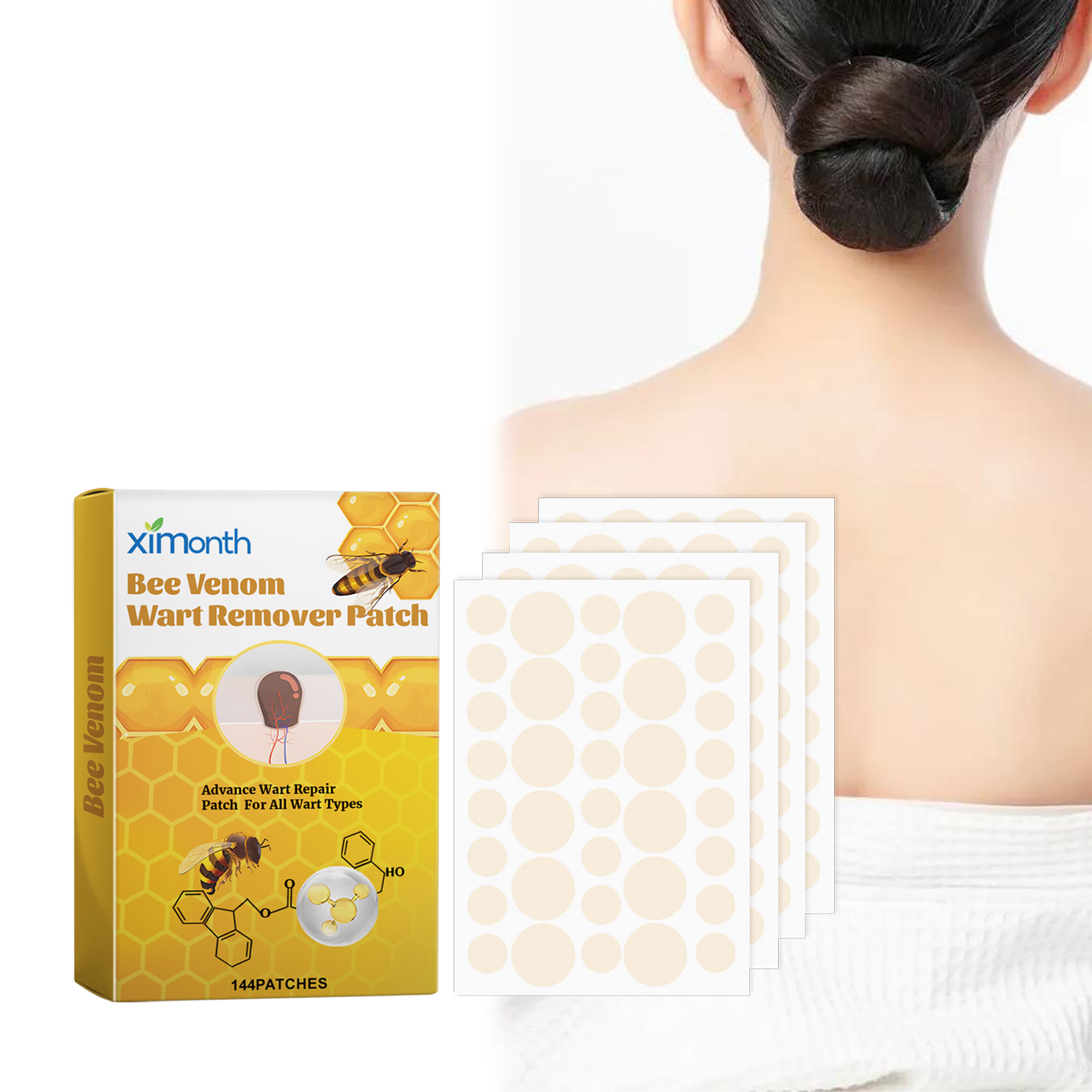 Our melitoxin patch contains glycerin and allantoin. It can easily remove skin tags, painlessly remove skin warts and moles, and quickly restore smooth skin. Its application method is simple: 1. First thoroughly clean the skin and dry it. 2. Tear the product and apply it to the wart, making sure the wart is completely covered. 3. Wait a few hours, gently remove the patch, and clean the affected area. And using tea tree oil and safflower plant ingredients, it can protect and care for the skin.