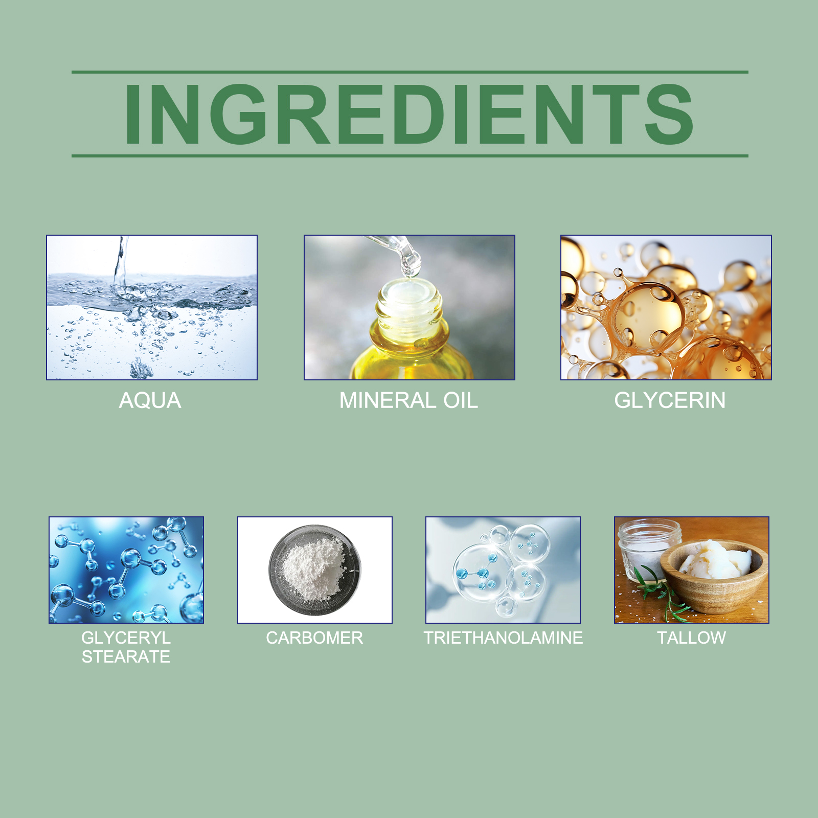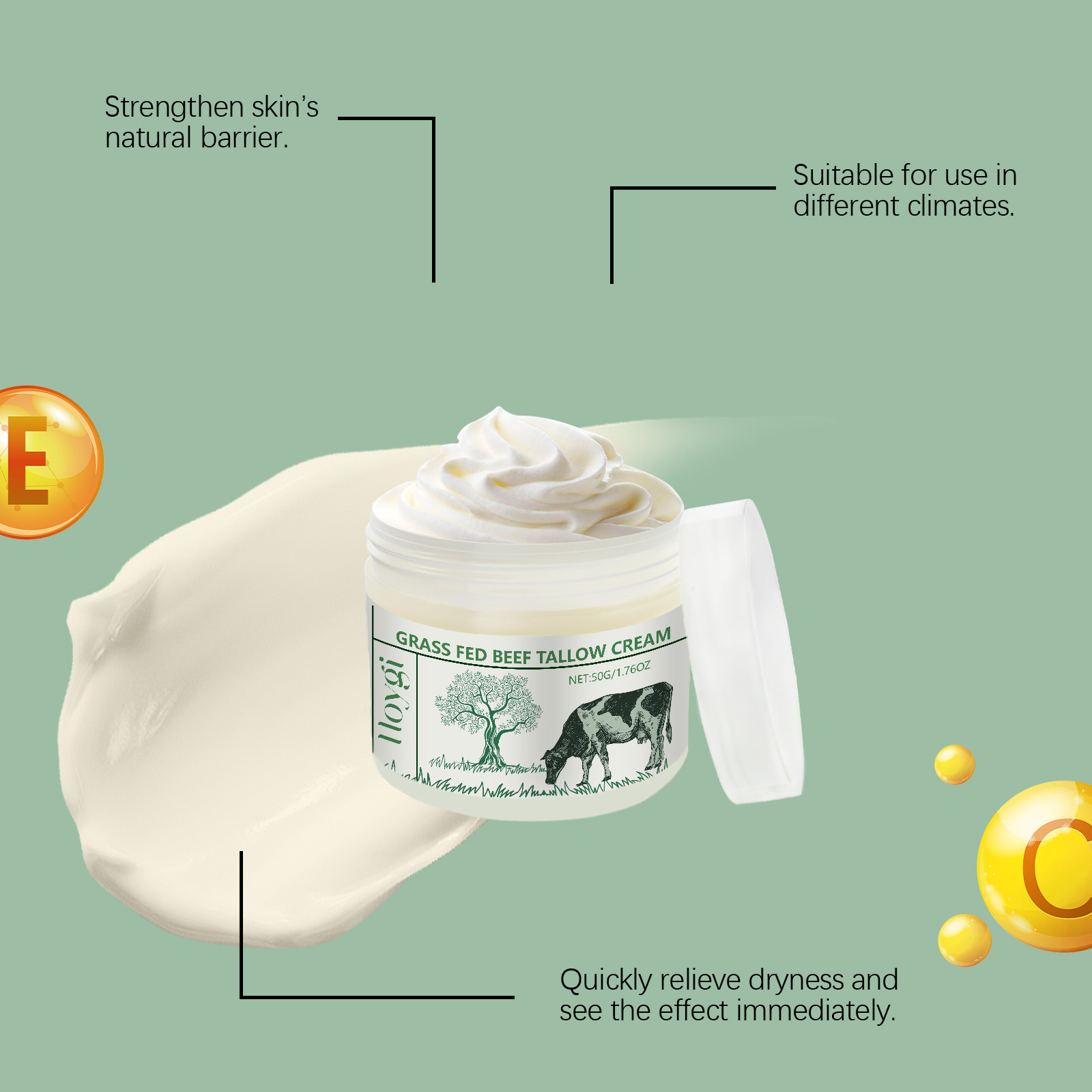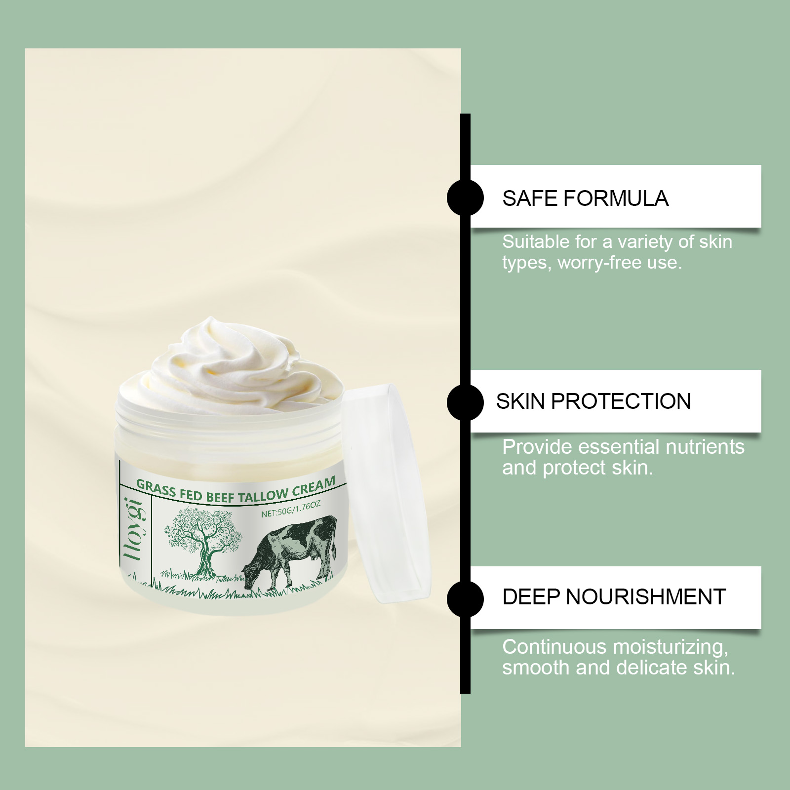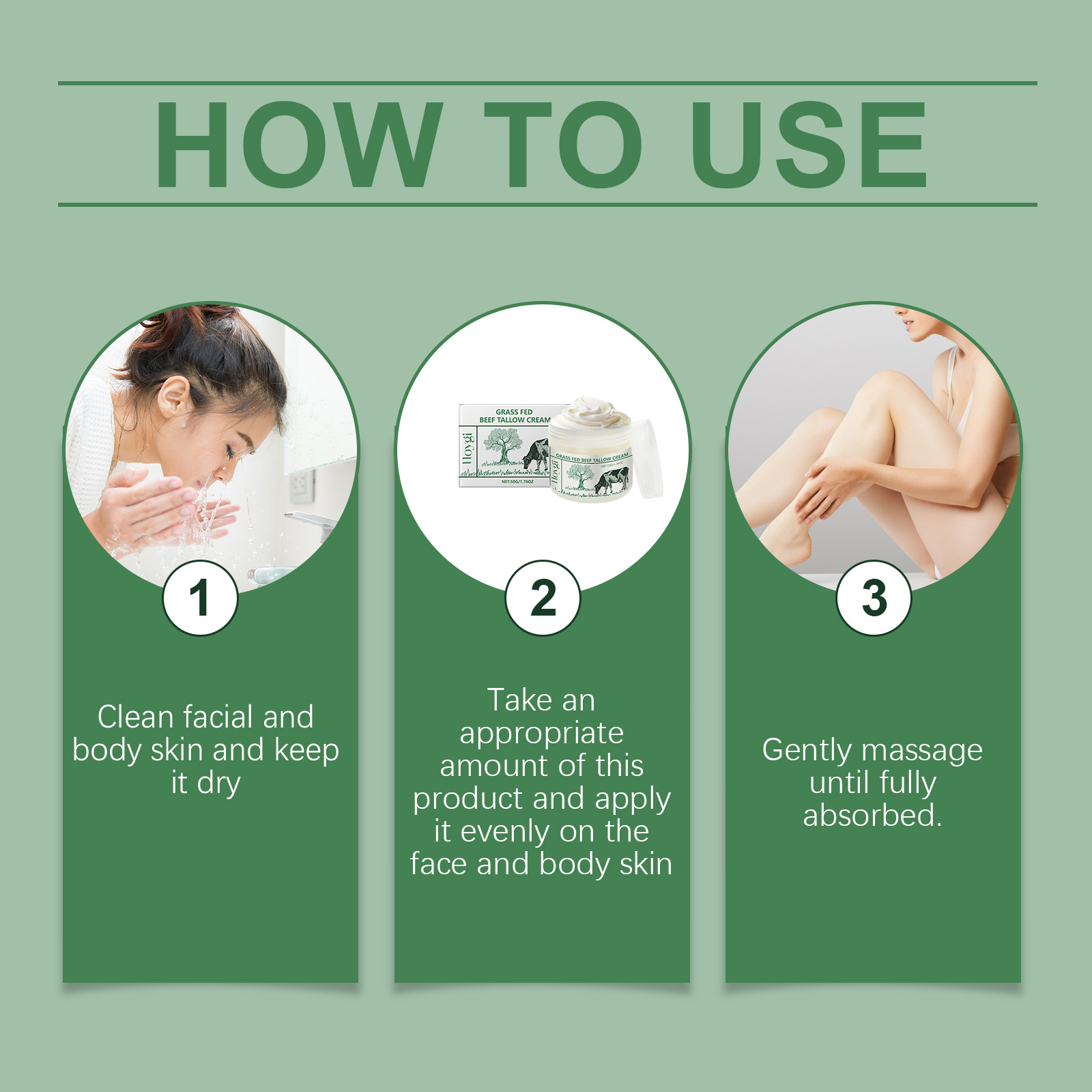 Our tallow moisturizing cream contains carbomer, triethanolamine, tallow. It keeps moisturizing and leaves skin smooth and delicate. Its application is simple: clean face and body skin and keep it dry; Apply appropriate amount of this product evenly on face and body skin; Massage gently until fully absorbed. It also nourishes the skin and keeps it moist and soft.