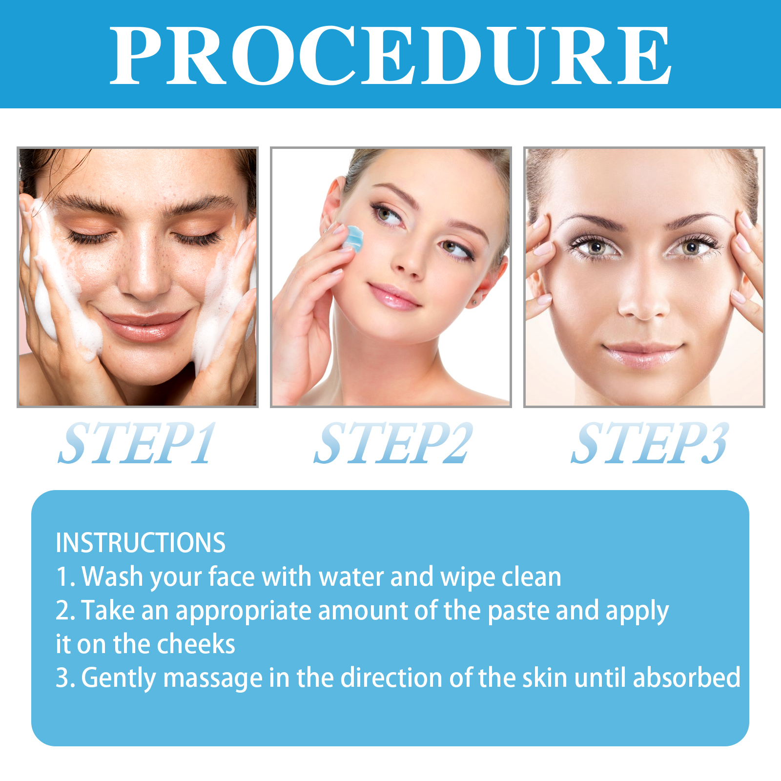 Our blue copper peptide aging cream contains glycerin, plant extracts. It can effectively brighten, soften and moisturize the face, fade fine lines and spots, tighten and brighten the skin, leaving it moist, clear and shiny. Its use method is very simple: 1. Wash your face with water and wipe it off. 2. Take the appropriate amount of paste and apply it to your cheeks. 3. Gently massage into the skin until absorbed. It can also enhance the elasticity of the skin, thus fading and reducing the appearance of fine lines and spots.