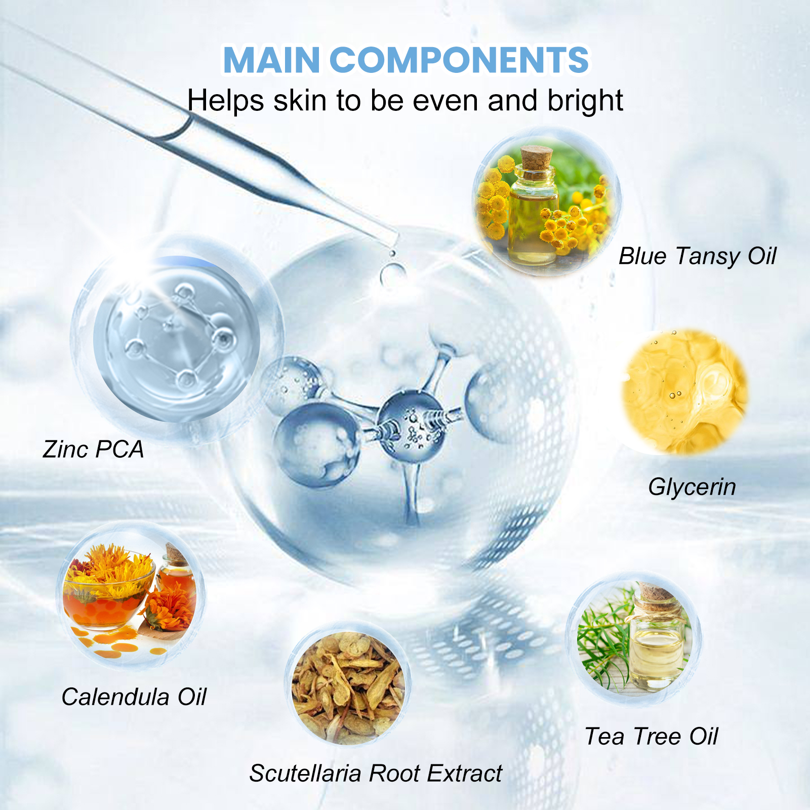 Our Blue Tansy Cleanser contains blue tansy Oil, PCA zinc and tea tree oil. It clears out clogged pores; Helps relieve redness and balance the appearance of oil; Helps balance oils and protects the skin from bacteria. Its application method is very simple: after wetting the face, take an appropriate amount of cleanser in the palm/foaming device and rub until foaming. Apply appropriate amount to face, massage with fingertips in circular motion for about 30 seconds, rinse with water, wipe dry. Blue Tansy Cleanser with fresh and dense texture cleans pores; Delicate skin, dredging pores, blocking fine pores; Make the skin clean, clean the surface of the skin dirt and oil.