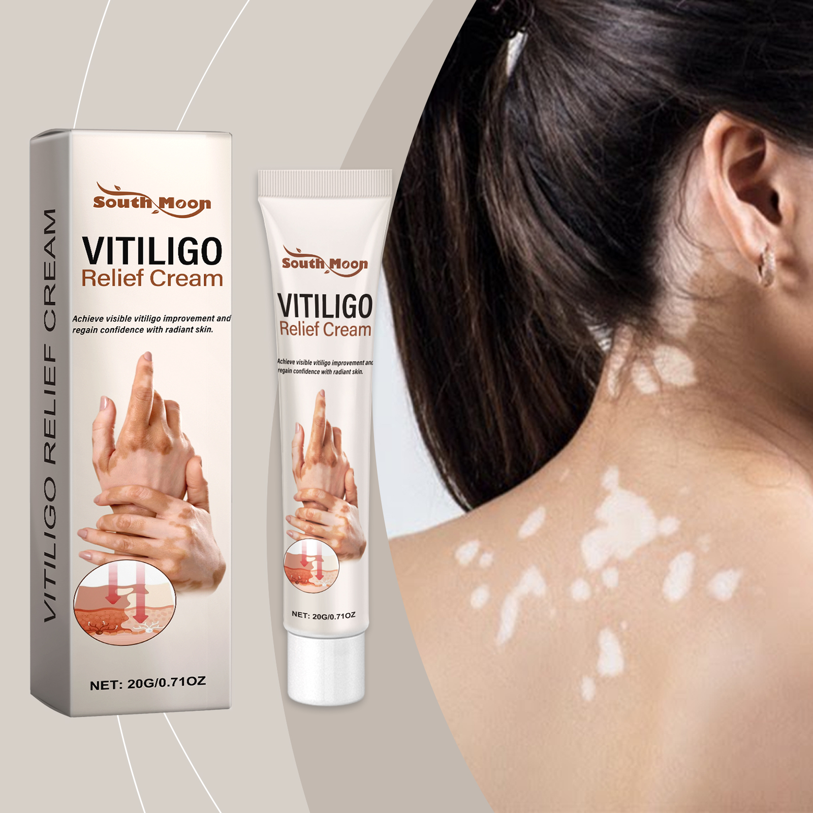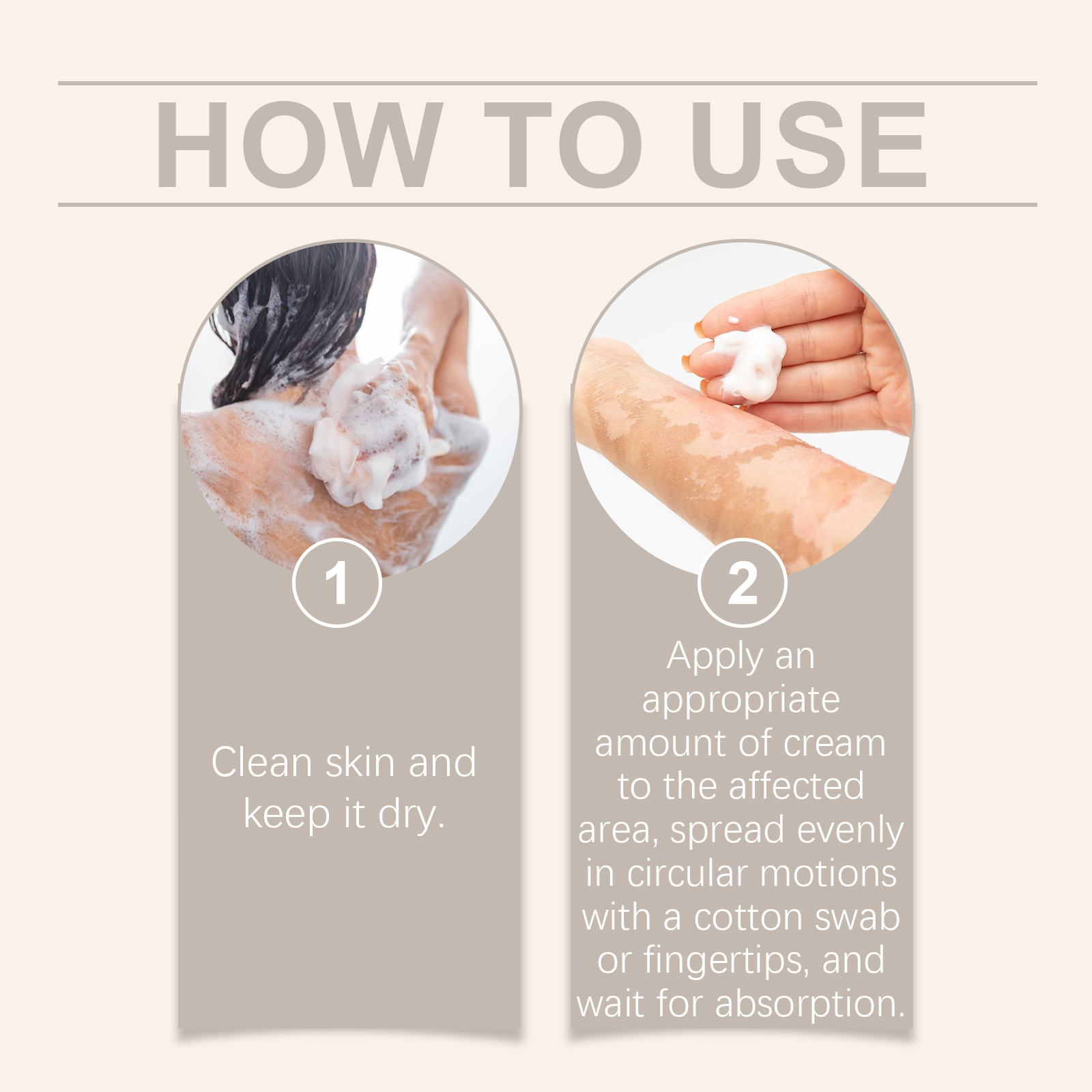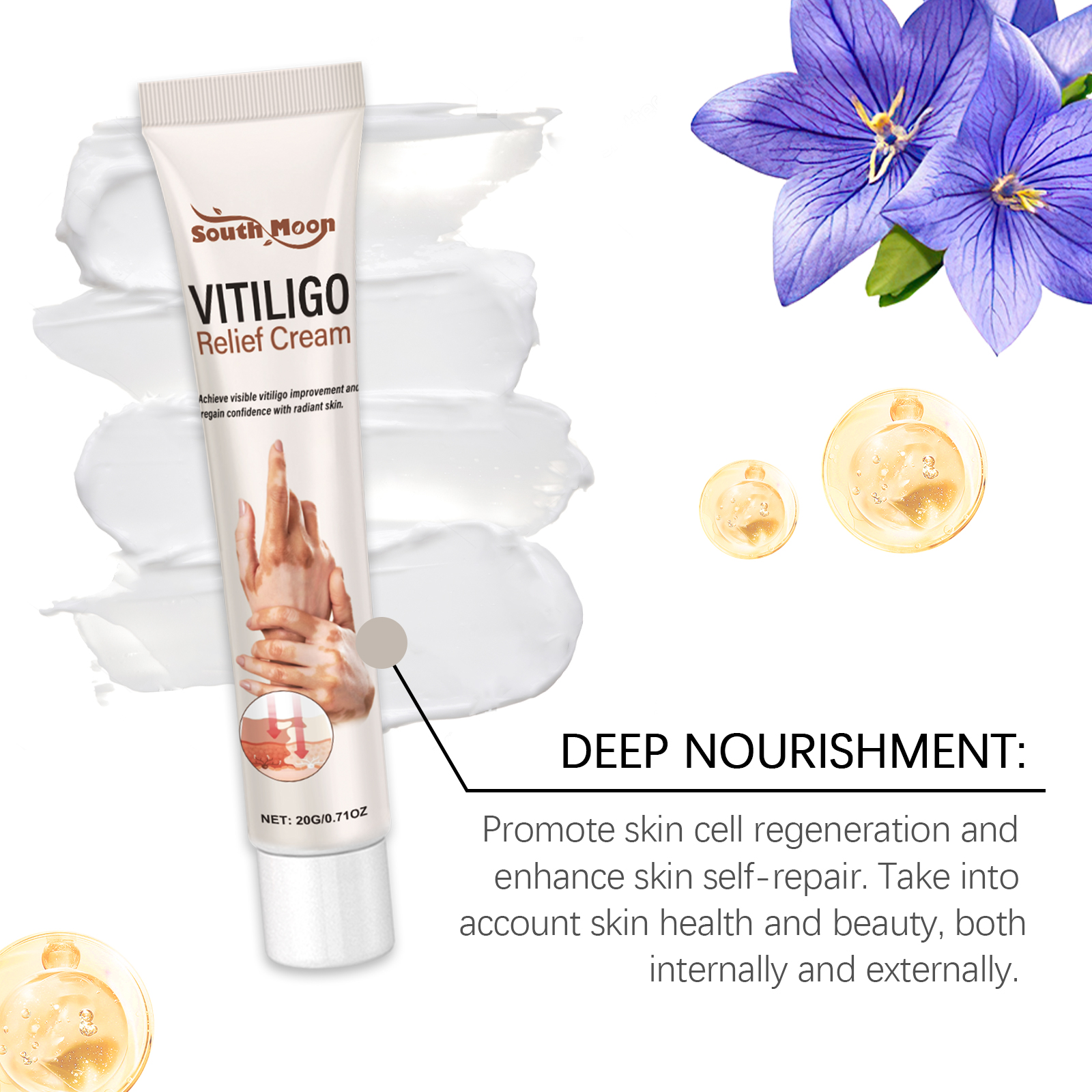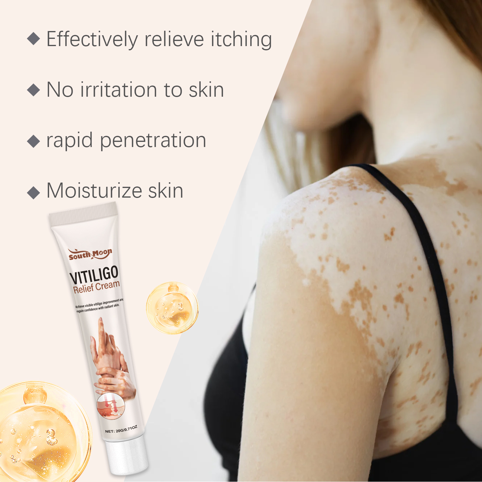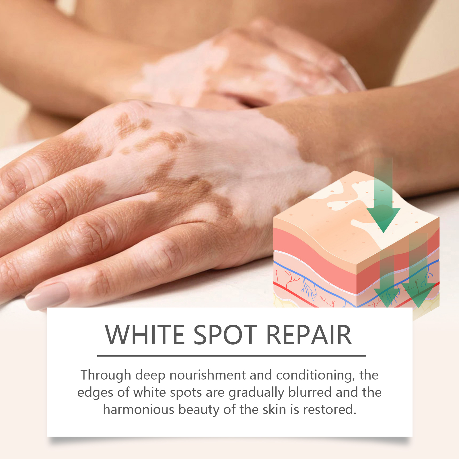 Our body care cream contains the extract of Fructus chinensis and pinellia extract. It can deeply nourish and regulate, and gradually blur the edges of white spots to restore the harmonious beauty of skin. The way to use it is simple: clean the skin and keep it dry. Apply appropriate amount to the affected area. Apply evenly with a cotton swab or fingertips in a circular motion until absorbed. And it can be light in texture and absorb quickly to help keep skin breathable and comfortable. Appearance helps restore healthy skin tone, even skin tone.