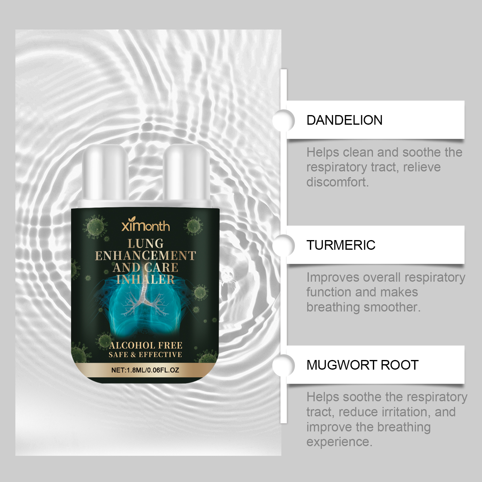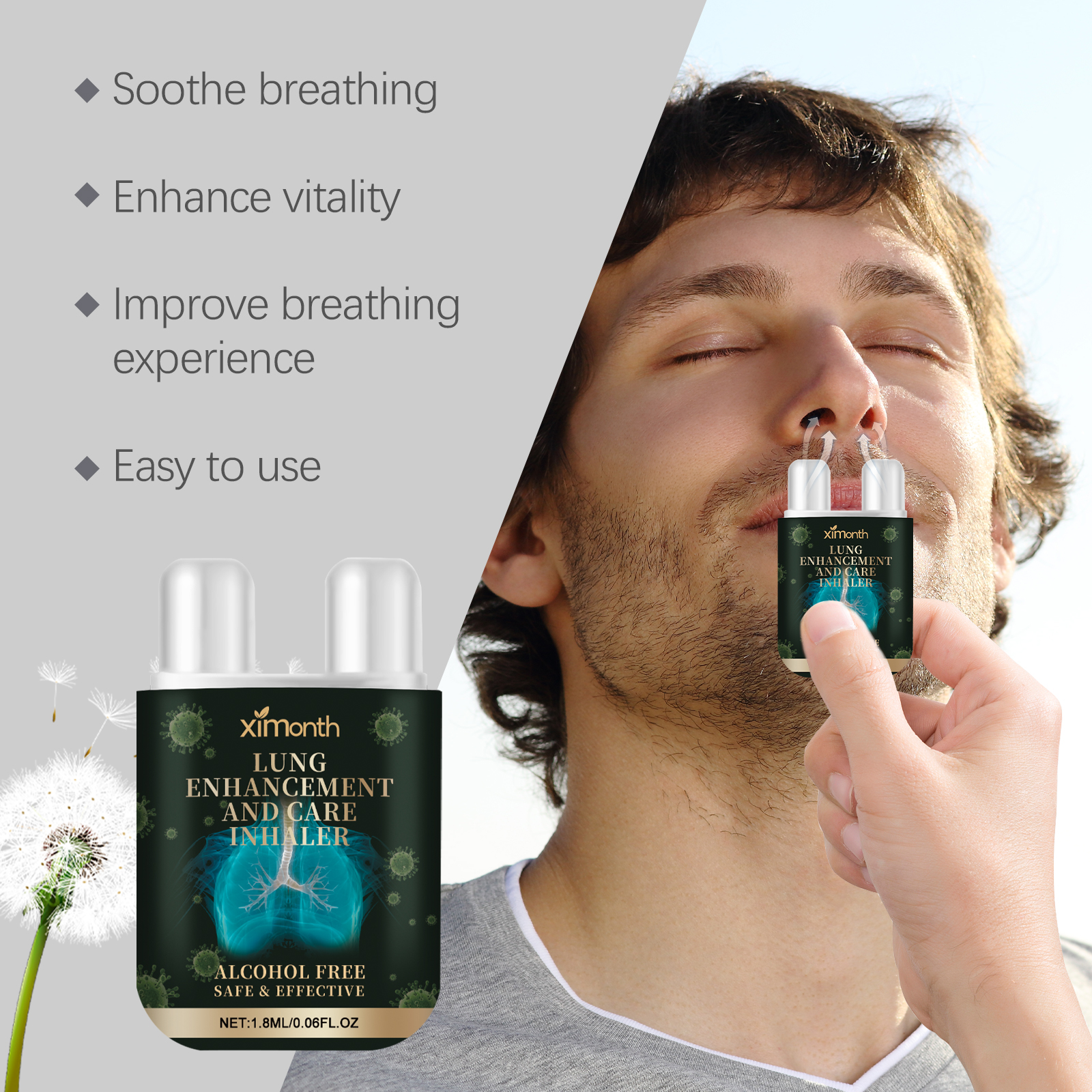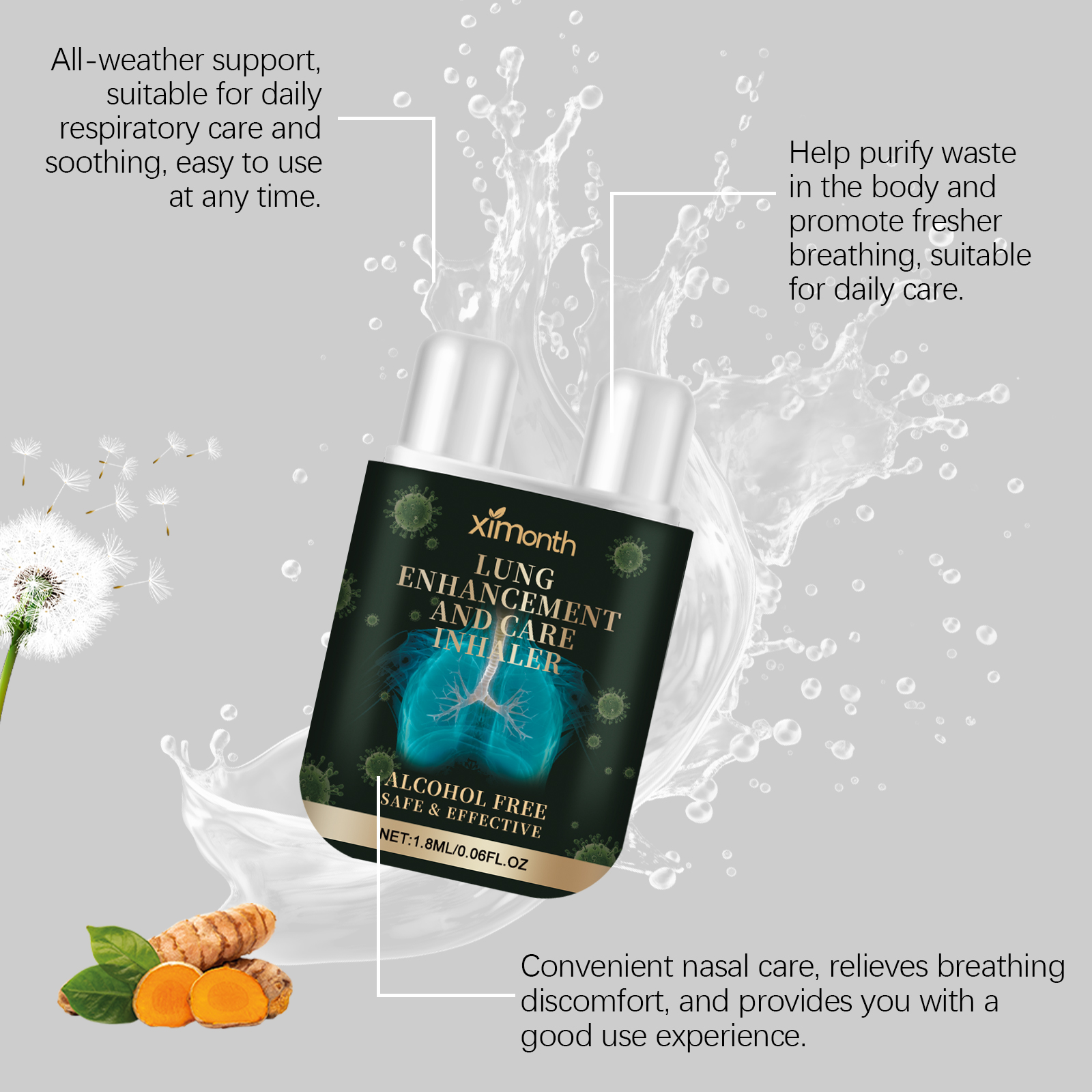 Our body care nasal inhalers contain dandelion, turmeric, and mugwort roots. It can improve the creative experience while helping to improve the standard of daily living, suitable for various groups of people. The compact design is easy to carry and use, and can be easily used indoors and outdoors. Its use is simple: inhale slowly for five seconds, then exhale slowly to release. Remove the lid and place the product under your nose. And can be designed to ease breathing discomfort, it can help relax the nasal passages and bring a comfortable feeling after use.