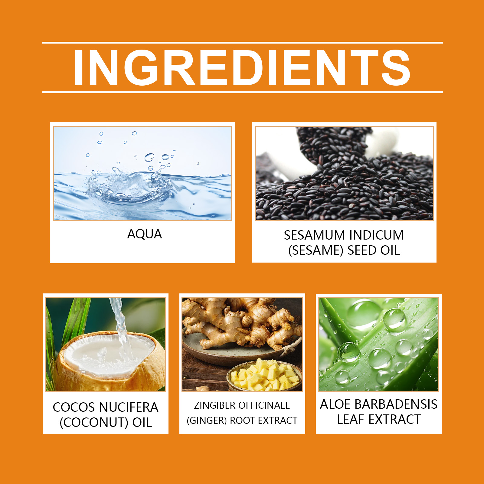 Our body care oil contains ginger root extract and aloe vera leaf extract. It can provide a smoother experience of the digestive process. Its application method is simple: 1. Clean the skin around the belly button and keep it dry. 2. Apply appropriate amount of this product evenly on abdomen. 3. Gently massage until fully absorbed. It also promotes food breakdown and supports healthy digestion.