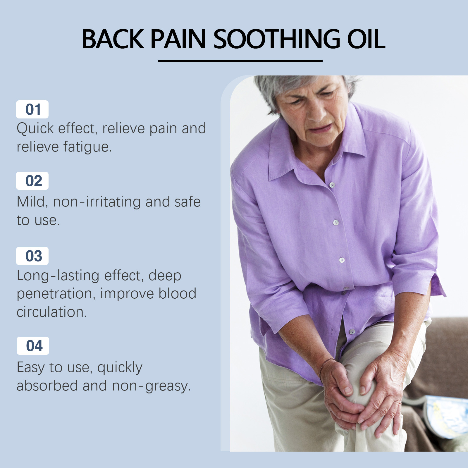 Our natural pain relief oil contains Jojoba seed oil and safflower extract. It can penetrate deep into joints and muscles, providing lasting pain relief. Its use method is very simple: thoroughly clean the skin, dry, take an appropriate amount of this product, evenly apply to the back, neck, shoulders and other parts of the body with joint pain, gently massage to promote complete absorption. It can penetrate the skin quickly and relieve back, neck and shoulder pain.