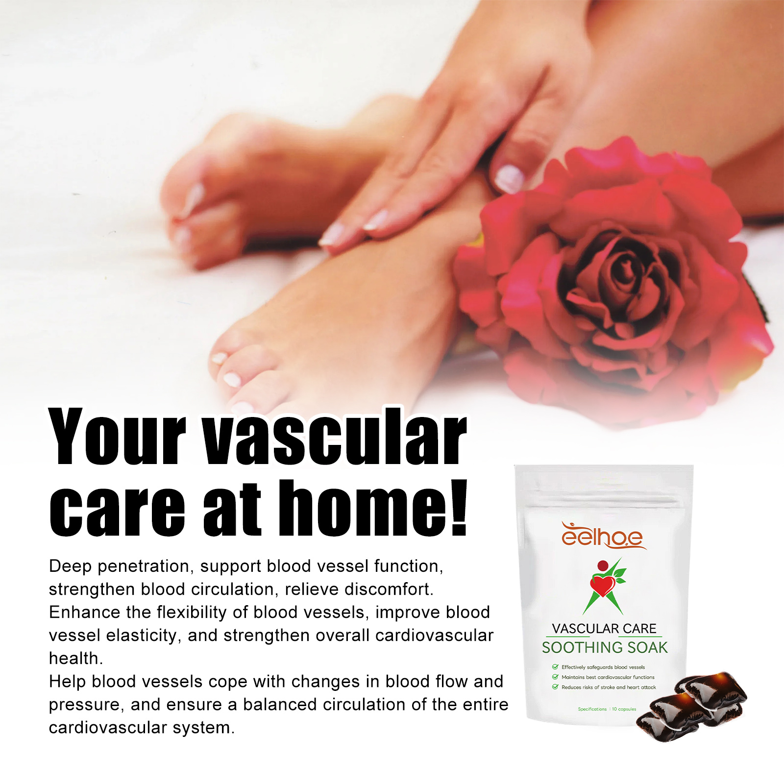 Our Vascular Care Soothing Soak includes Ginger Extract, Angelica Root Extract, Flavescens Extract. It can penetrate deeply, support blood vessel function, enhance blood circulation, and relieve discomfort. Its use method is very simple: take a piece of this product into the hot water of about 40 degrees Celsius, wait 10 minutes to dissolve it, soak your feet for about 15-30 minutes, daily use can get better results. It can enhance the flexibility of blood vessels, improve blood vessel elasticity, strengthen overall cardiovascular health, help blood vessels respond to changes in blood flow and blood pressure, and ensure balanced circulation of the entire cardiovascular system.