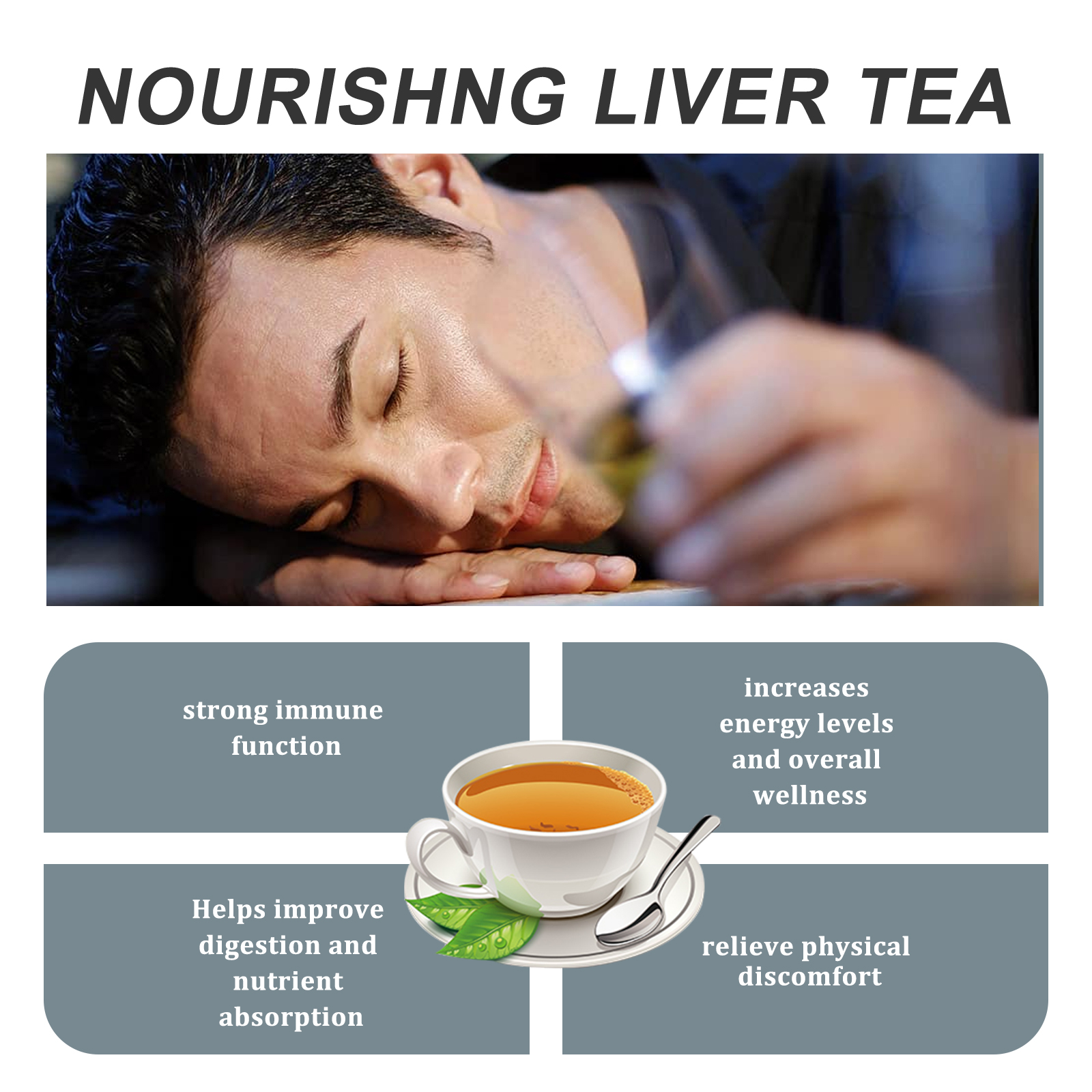 Our liver tea contains light bamboo, Houttuynia. It can improve digestion and nutrient absorption, effectively remove waste that may accumulate in the body, and achieve slimming effect. Its use is simple: 1. Take a packet of liver tea. 2. Put it in a cup and brew it with boiling water. 3. Drink it every day to get better results. It can also improve energy levels and overall health, help improve digestion and nutrient absorption and relieve physical discomfort.