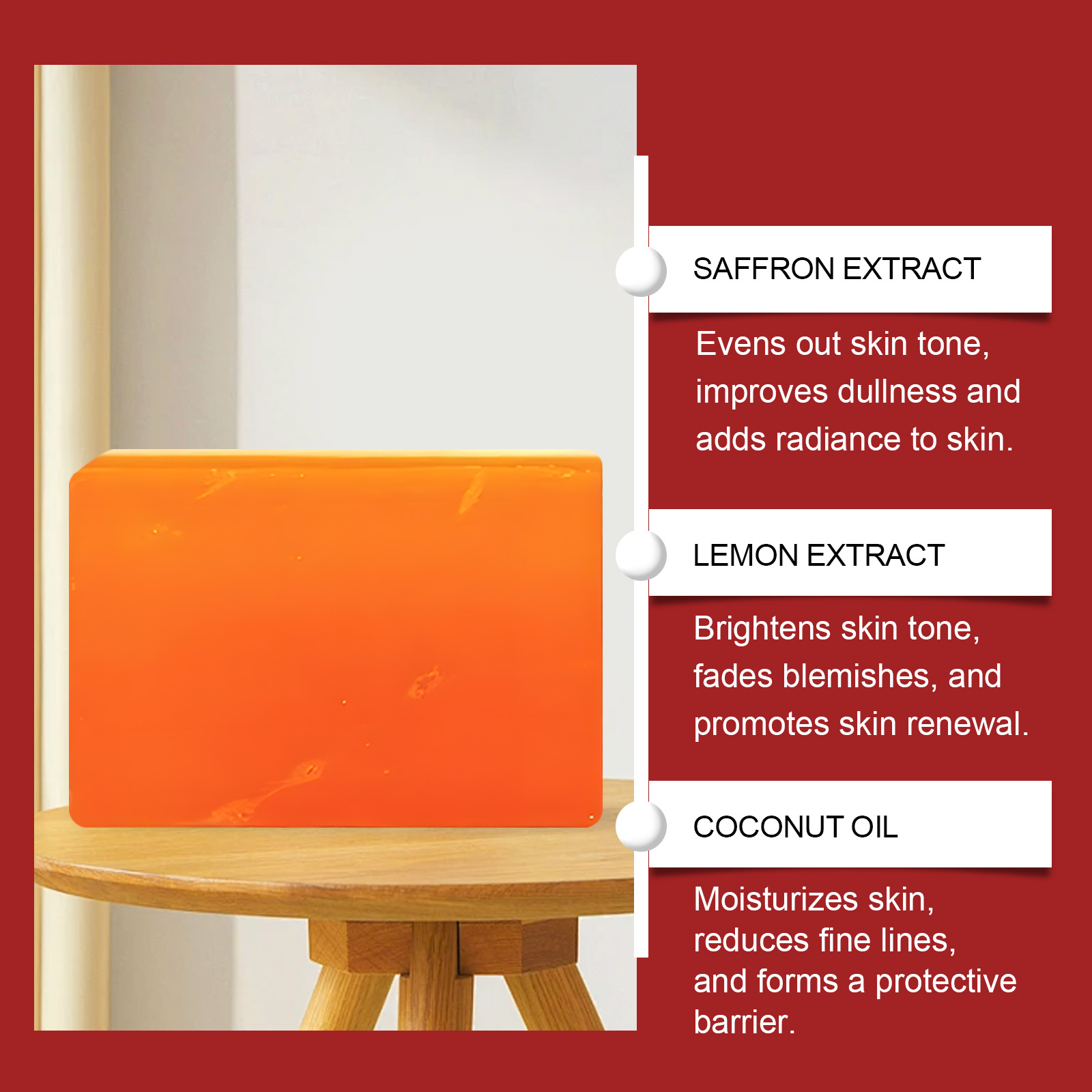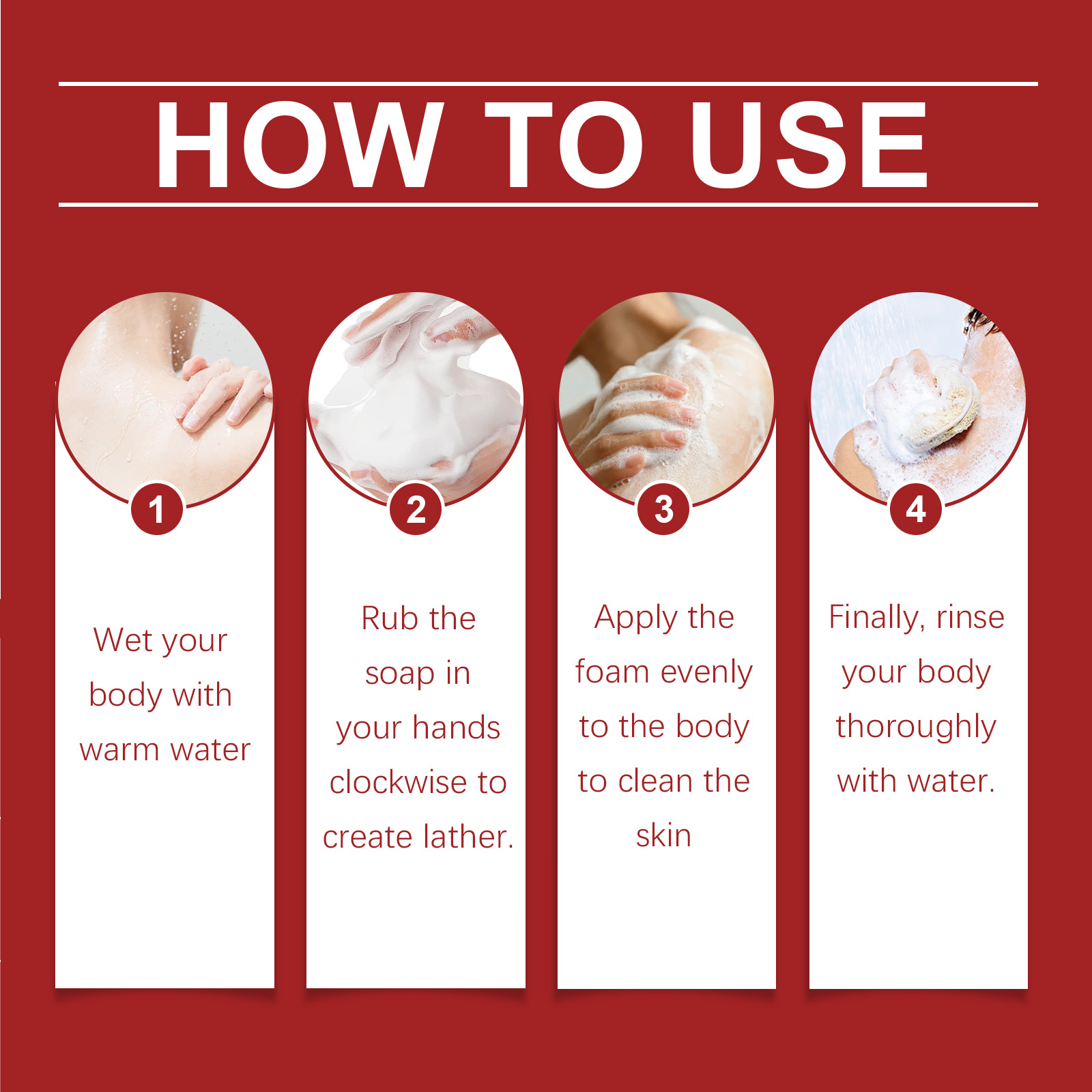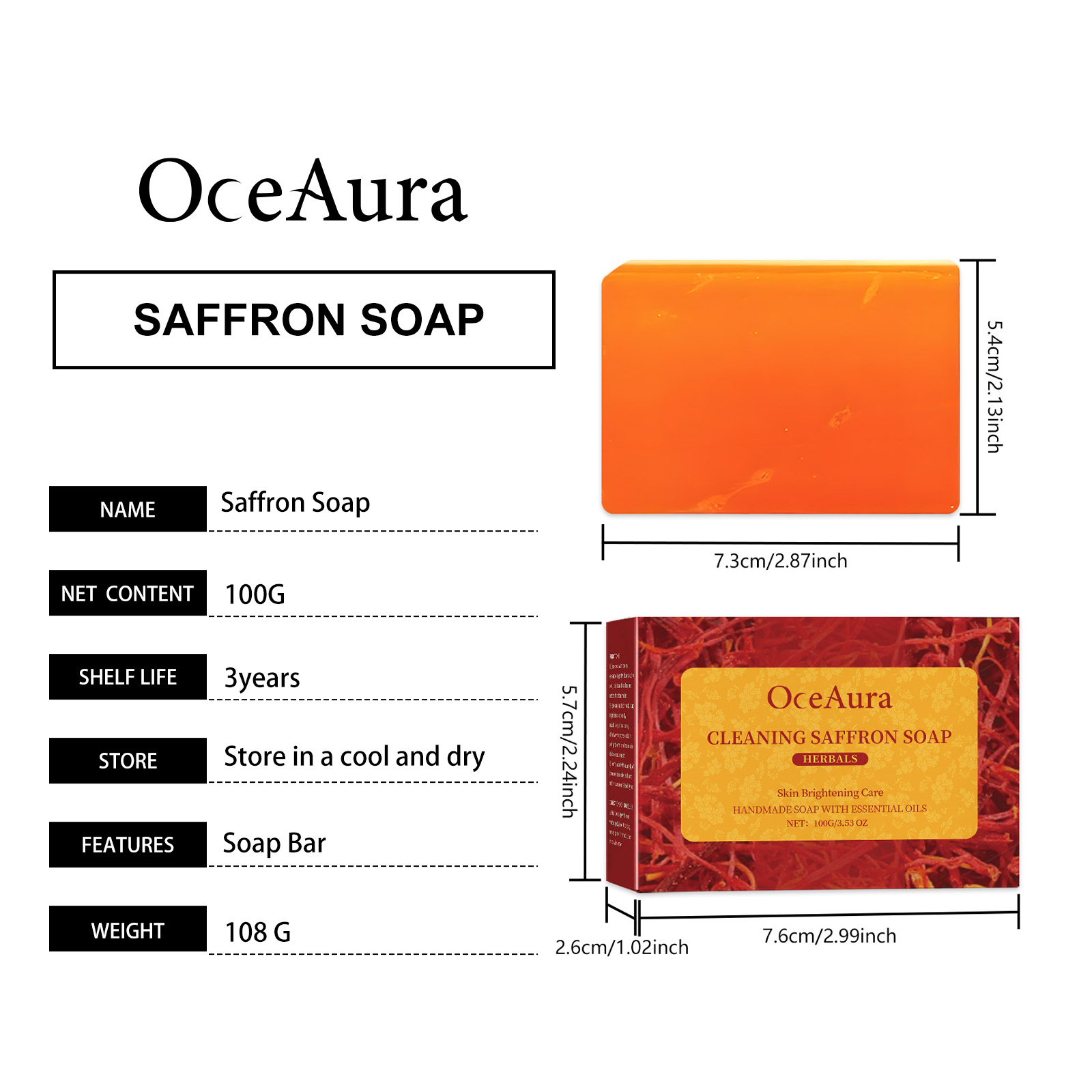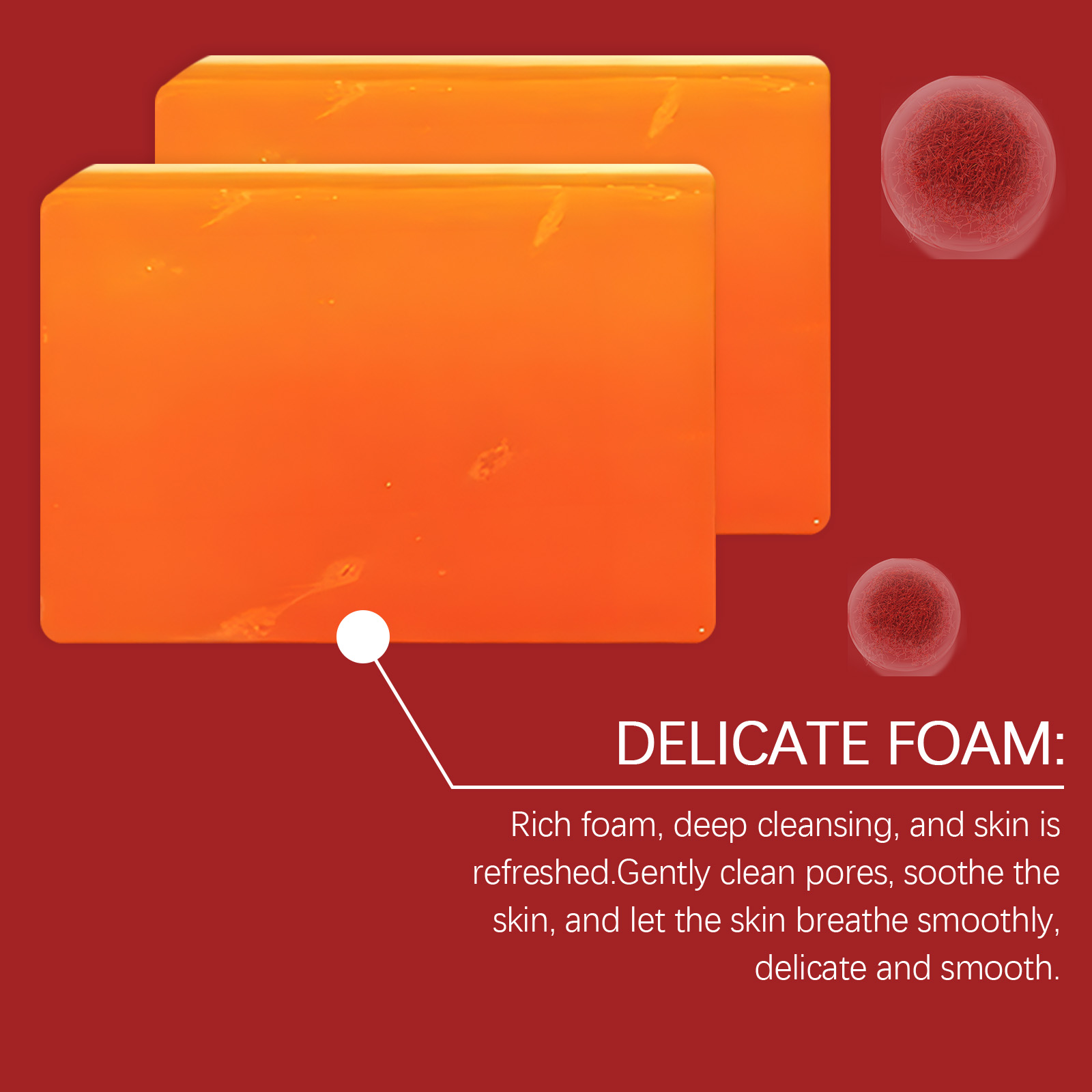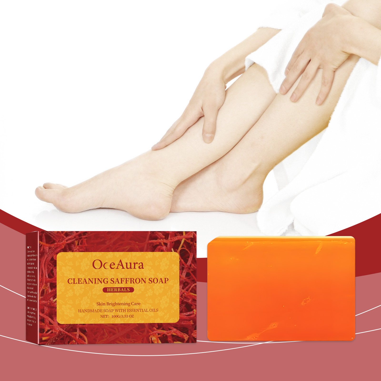 Our body cleansing soap contains saffron extract, Jojoba seed oil, lemon extract. It can retain skin oil, avoid dryness, and make skin smooth and not tight. Form a protective film to resist external aggression. Its use method is very simple: 1. Wet the body with warm water; 2. Rub the soap clockwise with your hand to create a lather; 3. Apply the foam evenly to the body to clean the skin; 4. Finally, rinse your body thoroughly with water. Effectively promote metabolism, lighten skin, improve dullness, rejuvenate skin, resist free radicals, delay skin aging.