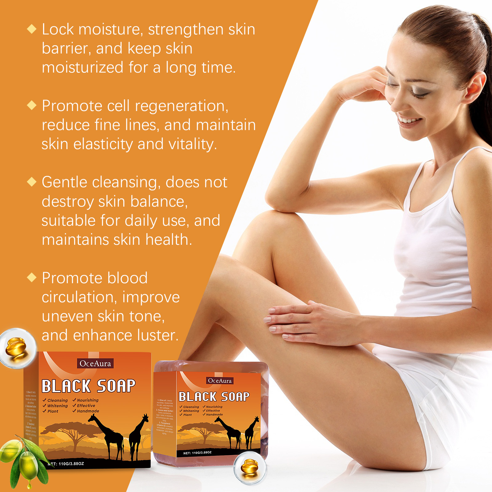 Our body cleansing soap contains olive oil, coconut oil, palm oil. It can be deeply nourishing. Moisturize skin, improve skin softness; It forms a protective layer that locks in moisture and enhances skin elasticity. Powerful antioxidants that boost metabolism and slow aging. Its use is simple: 1. Wet your body with warm water; 2. Rub the soap clockwise with your hand to create a lather; 3. Apply the foam evenly to the body to clean the skin; 4. Finally, rinse your body thoroughly with water. Body cleansing soap retains skin oil, avoids dryness and keeps skin smooth and tight. To form a protective film against outside aggression.