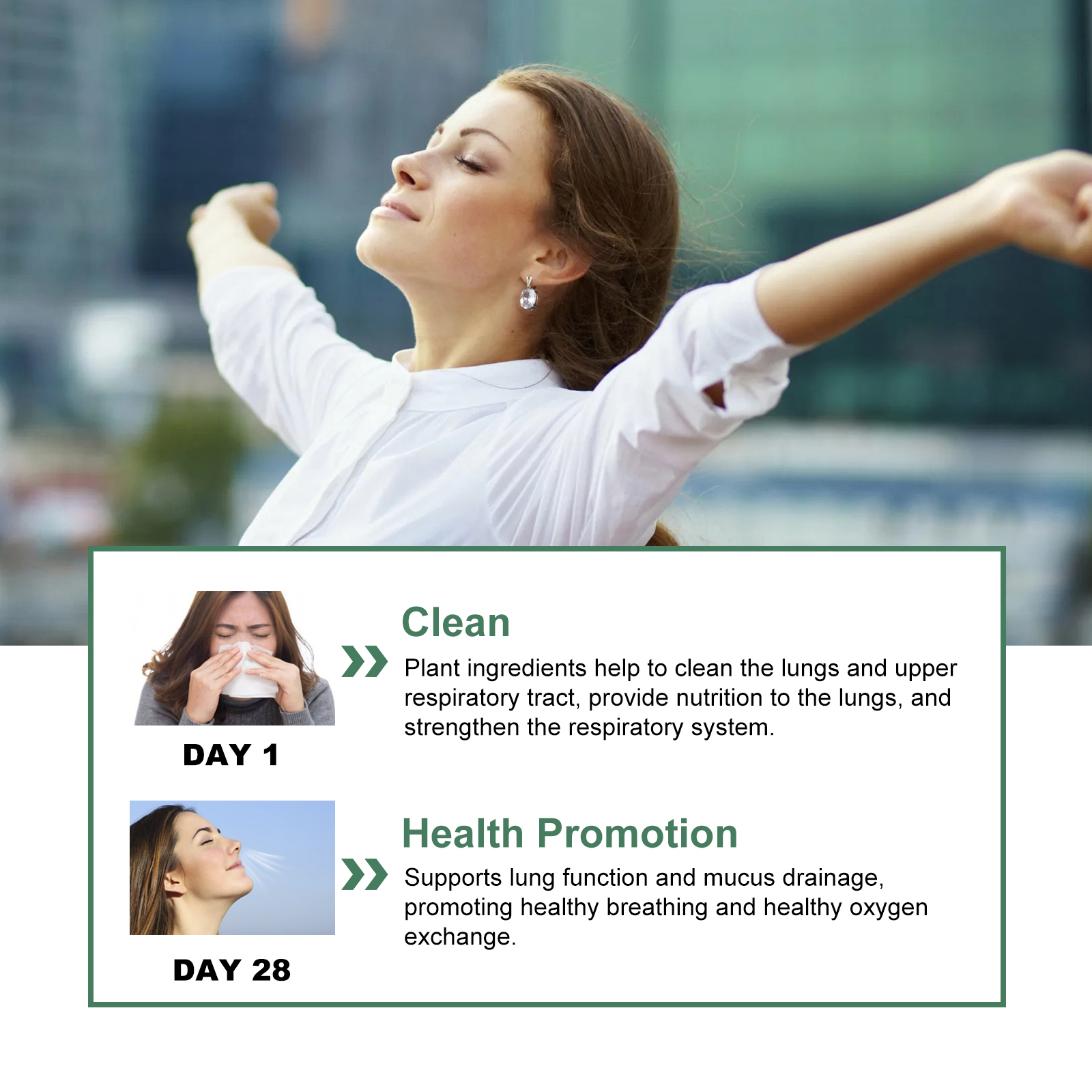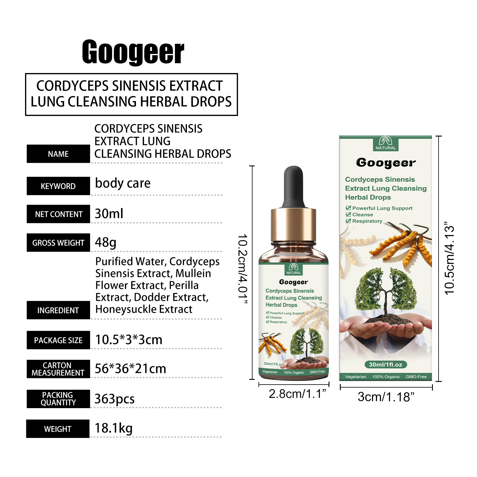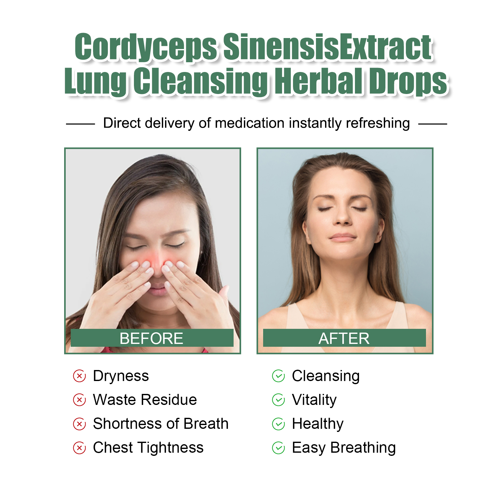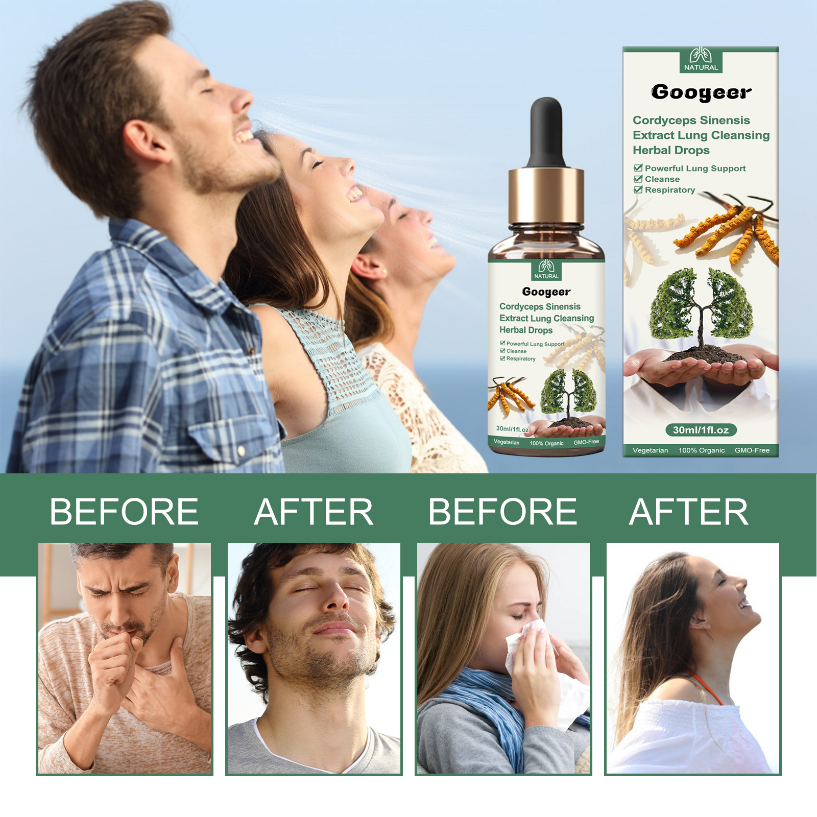 Our body repair drops contain dodder extract and honeysuckle extract. It can support lung function and mucus discharge, promote healthy breathing and healthy oxygen exchange. Its use is very simple: shake well before eating, 1-2 ml each time, 3 times a day, can be taken directly or added to juice. And can clean the lungs and upper respiratory tract, provide nutrients to the lungs, strengthen the respiratory system.