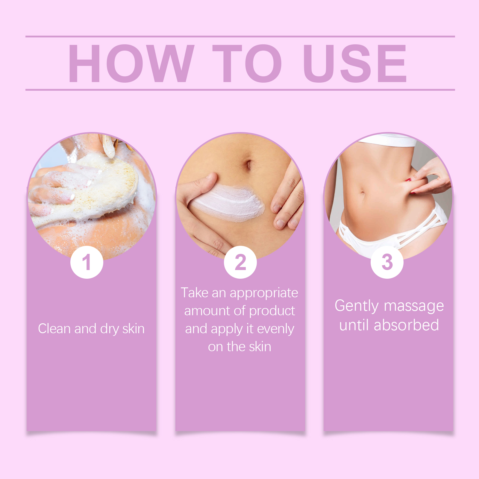Our slimming cream contains glycerin and aloe vera extract. It improves skin elasticity, significantly reduces sagging, and creates a firmer body shape. The way to use it is simple: clean dry skin. Apply appropriate amount of product to skin evenly. Massage gently until absorbed. And specifically targeted at fat accumulation areas, quickly promote fat decomposition.