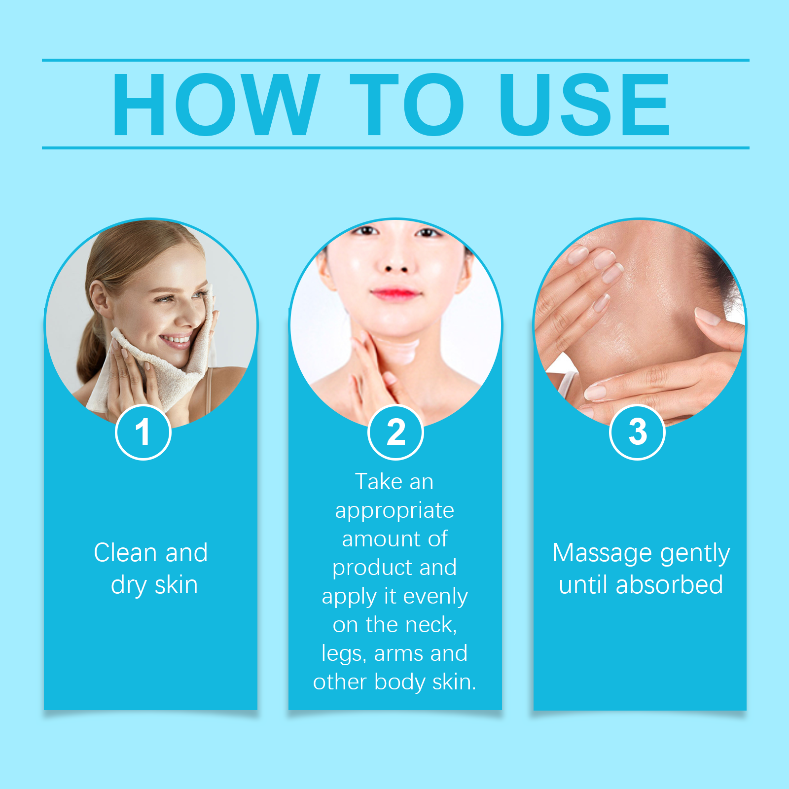 Our body firming cream contains niacinamide, hyaluronic acid and shea butter. It can promote skin firmness and restore skin elasticity. Lighten the complexion, lighten the dullness, and make the skin brighter and whiter. Deeply nourish and repair damaged skin, making skin texture more delicate and smooth. Its use is simple: 1. Clean and dry the skin; 2. Apply appropriate amount of this product evenly on neck, legs, arms and other skin of the body. 3. Gently massage until absorbed. Body firming cream continuously releases hyaluronic acid to hydrate the skin throughout the day.
