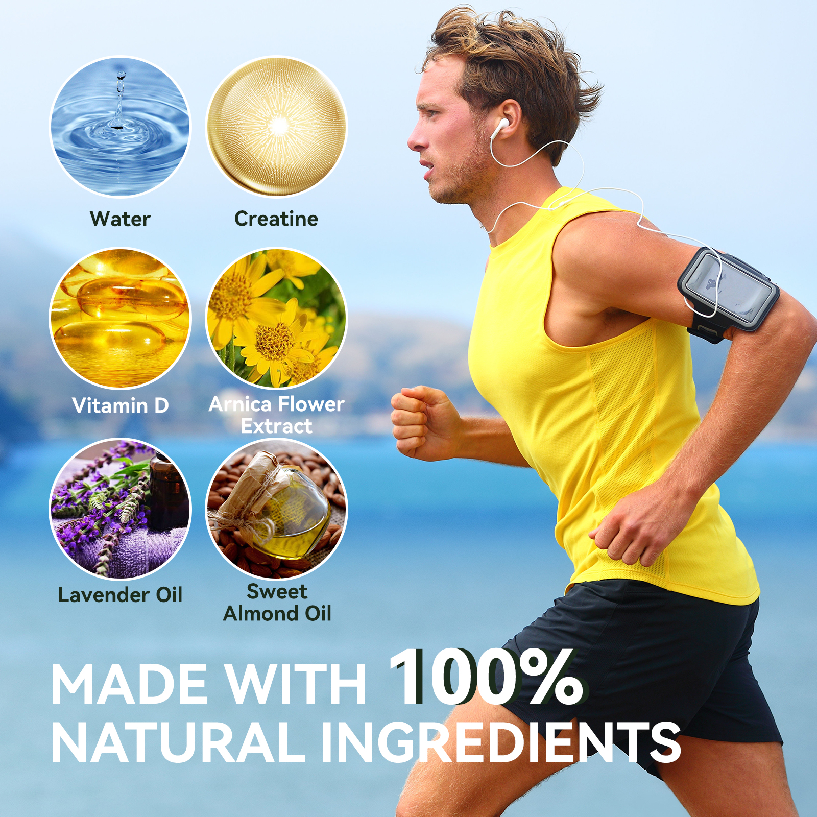Our body massage oil contains creatine, vitamin D, Arnica flower extract. It can activate warm-up, prevent injury and improve endurance. Relax muscles, relieve soreness and restore fatigue. Prevents lactic acid cramps, burning and soreness, reduces fatigue and muscle soreness. Its application method is simple: 1. Clean and dry the skin; 2. Apply proper amount of massage to sore and swollen muscles; 3. Gently massage your hands in circular motions until the muscles relax. Body Massage oil Removal Massage oil reduces lactic acid buildup. Increase your concentration.