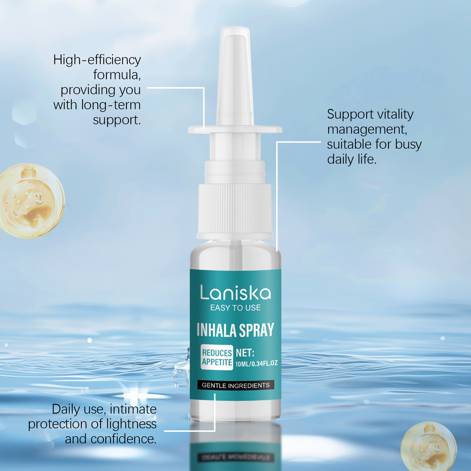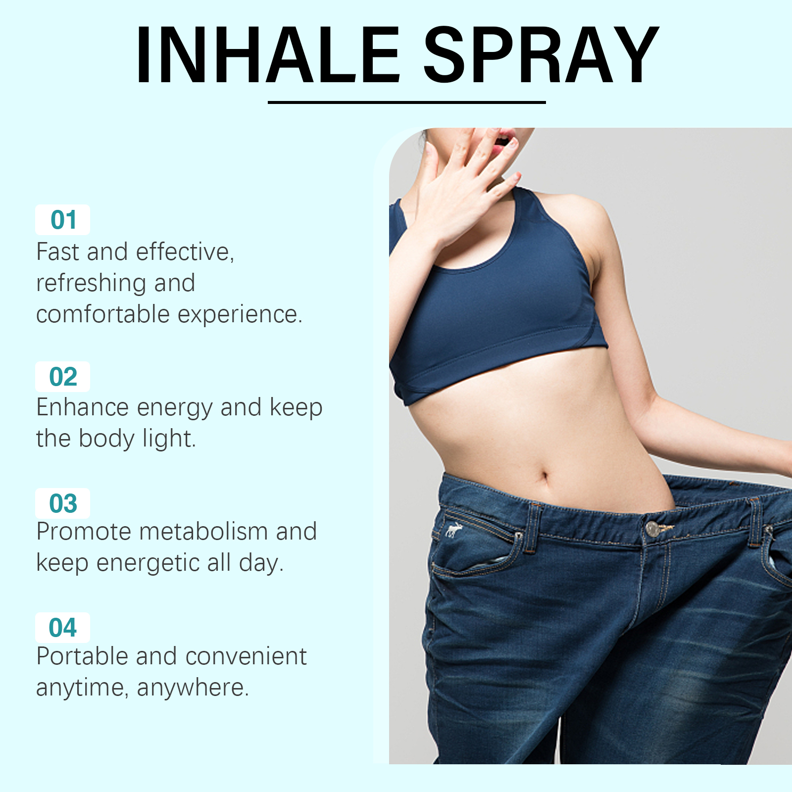 Our slimming nasal spray contains menthol and ginger. It can be suitable for daily use and stay light with healthy living. High-quality formula to meet the new needs of healthy living. Easy to use, make breathing more refreshing and comfortable. Unique spray design, easy to enjoy a healthy life. Its use is simple: Place the product 5-8 cm away from the nose and apply 2-3 times with pressure. And make you feel energetic and motivated after each use, long-term use, help to keep fresh.