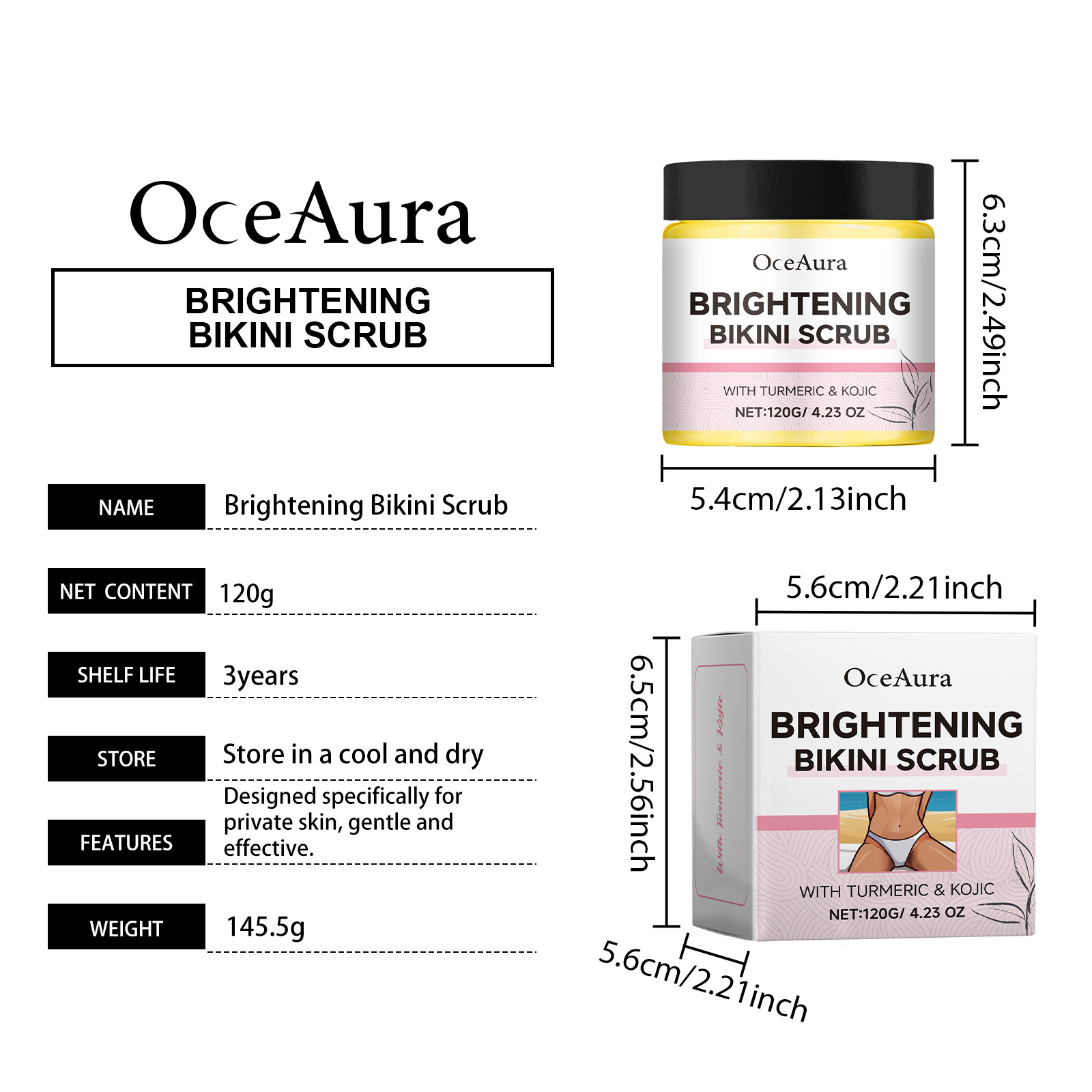 Our body scrubs contain ascorbic acid (vitamin C), glycerin. It can effectively improve the uneven skin tone of the private parts and make the skin bright. Its application method is very simple: moisturize the skin, apply appropriate amount of this product evenly on the skin of the bikini line, gently massage in circular motion for 3 minutes, and then rinse off with warm water. And designed for intimate skin, gentle and effective.