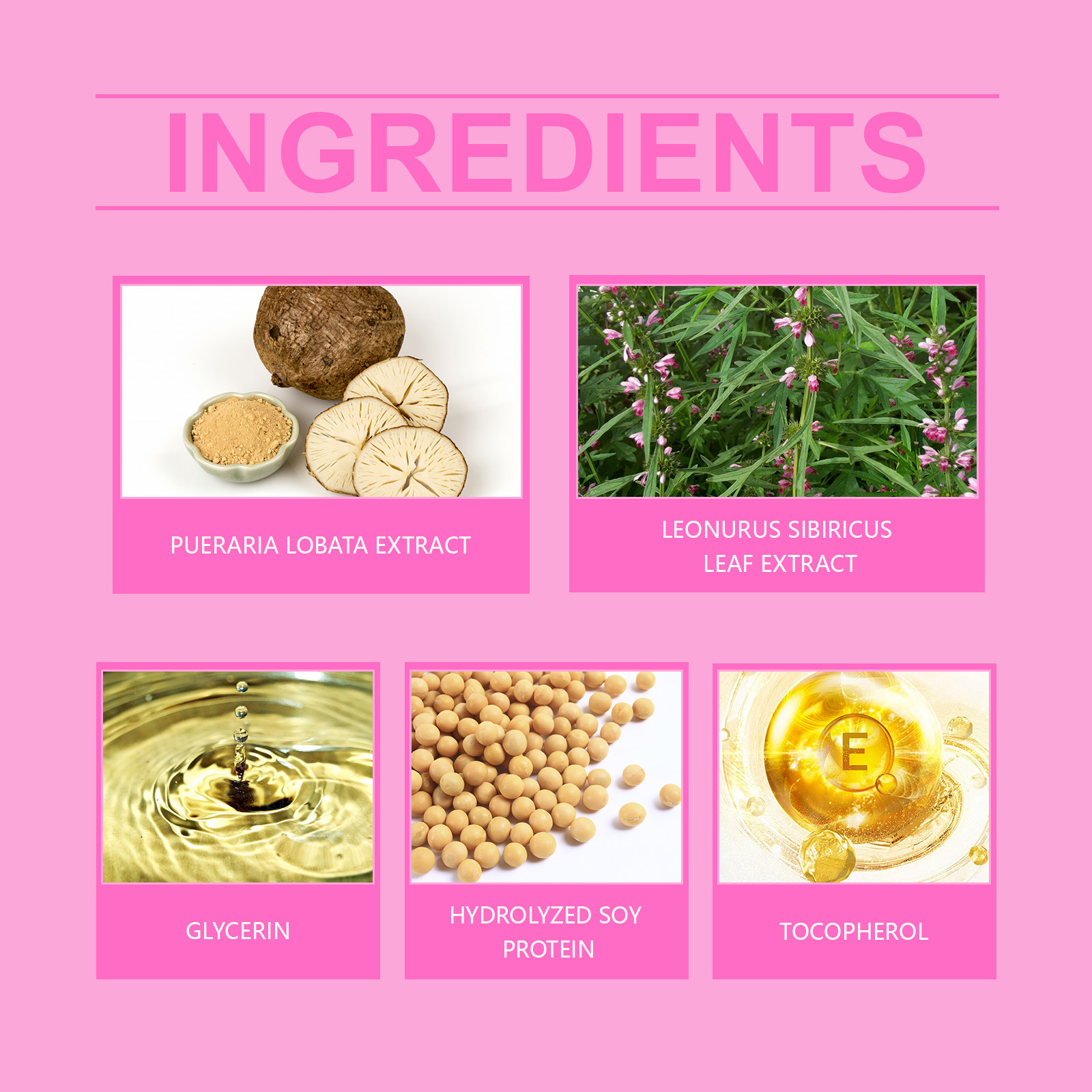 Our chest firming cream contains glycerin, pueraria extract, soy protein. It can contain rich plant nutrition, enhance skin elasticity; Firming skin, creating perfect contours; Promotes healthy skin. Its use method is very simple: after bathing, take an appropriate amount of firming cream evenly apply on the chest, avoid the nipple when applying, gently massage in circles until completely absorbed. Chest firming cream improves skin firmness. Deep nourishment, improve skin quality.