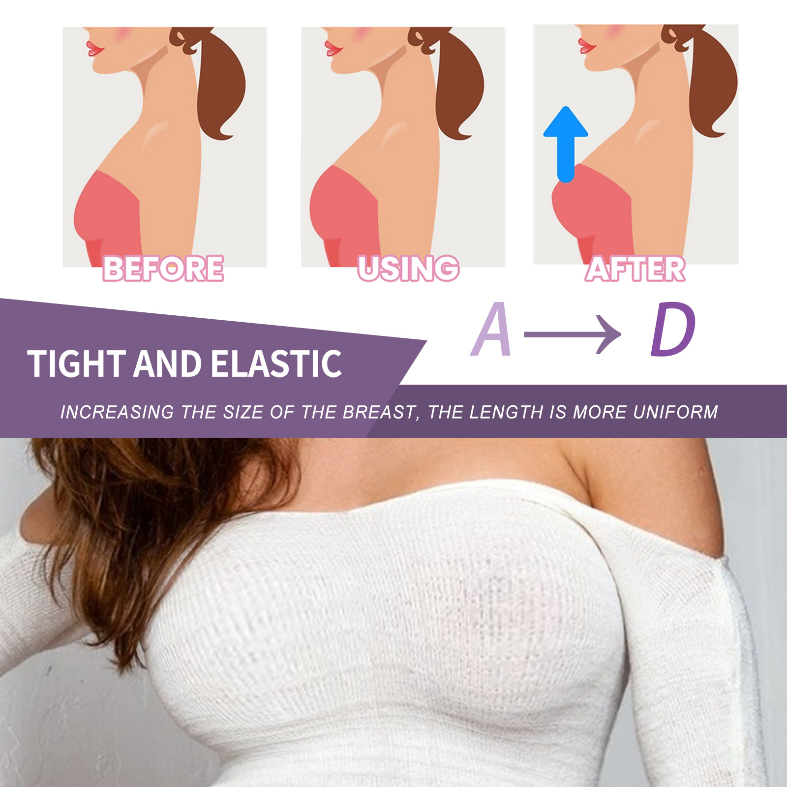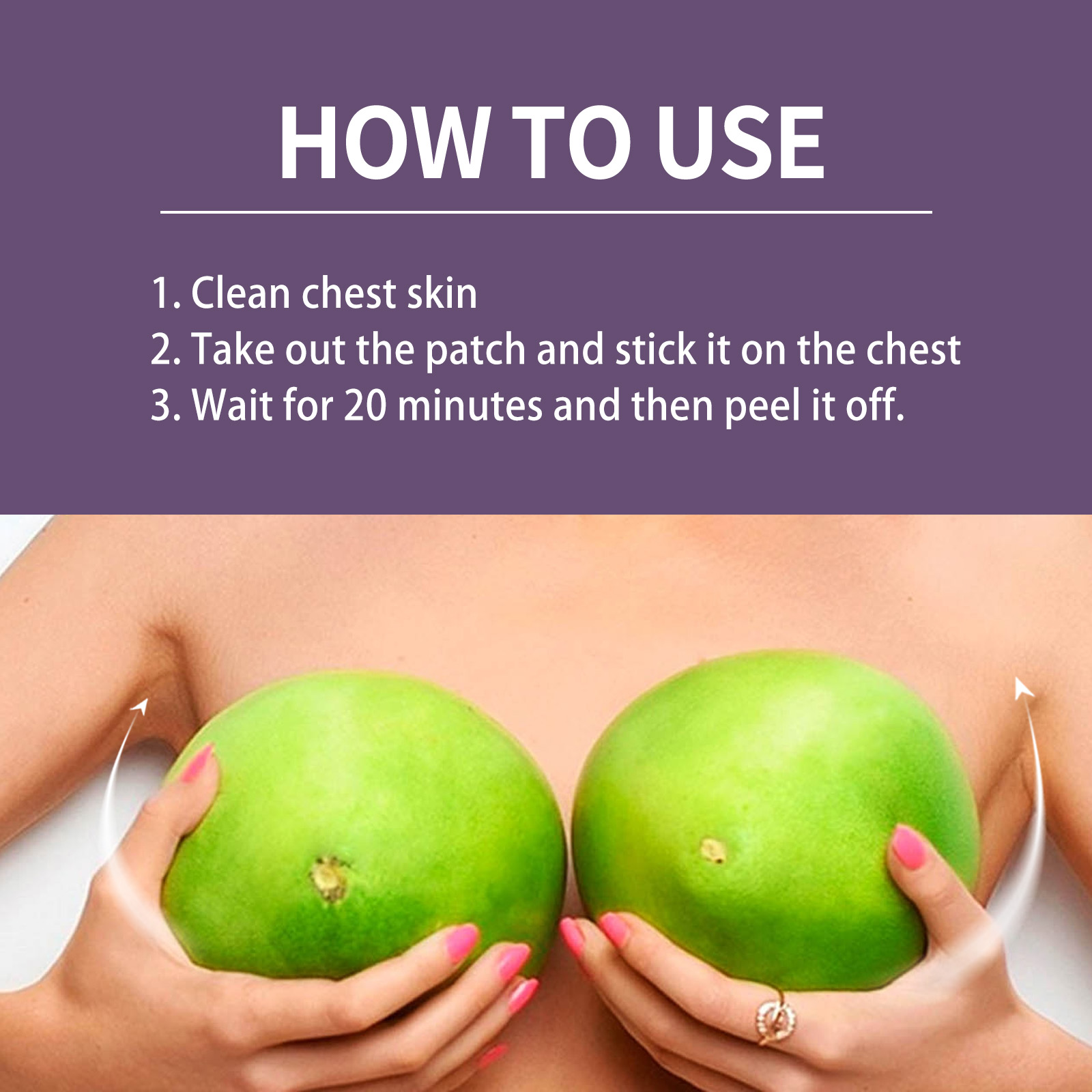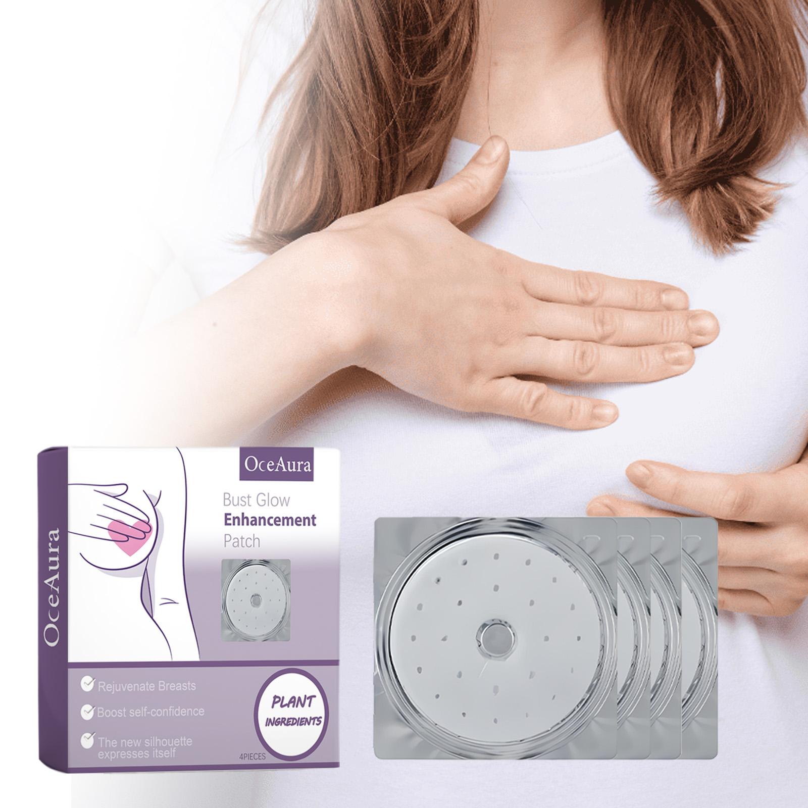 Our breast lift patch contains hop extract, fenugreek extract. It can effectively moisturize the skin, improve the texture of the skin, and replenish energy for the breasts. The way to use it is simple: clean the skin on your chest, take the patch out and stick it on your chest, wait 20 minutes, and then peel it off. And it tightens the chest.