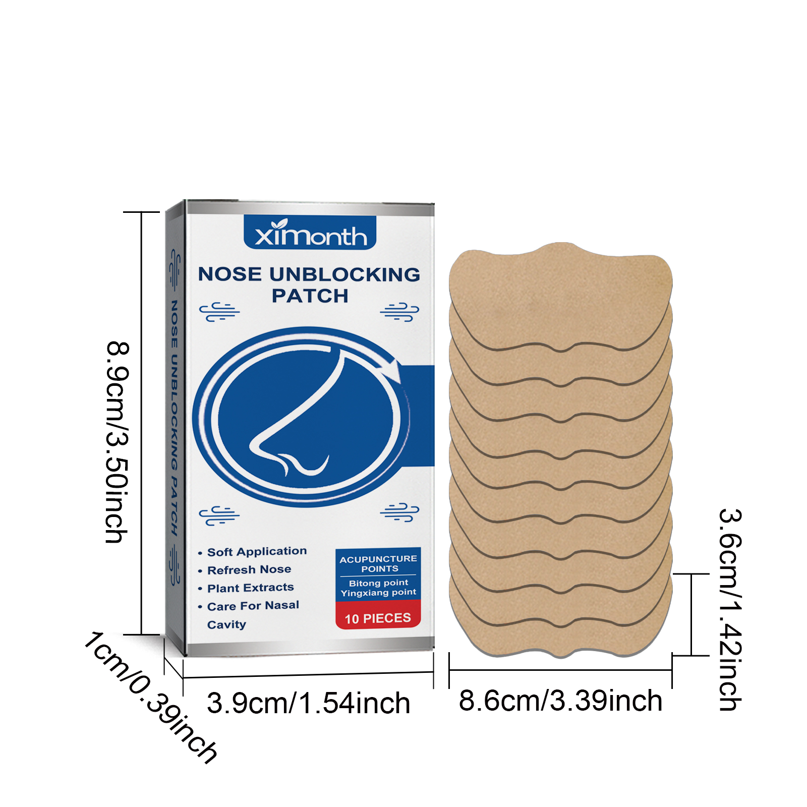 Our nasal strips contain peppermint leaf extract, wormwood extract and Angelica root extract. It removes lung residue, heals upper respiratory infections, helps you reduce or even stop nasal snoring, corrects open mouth breathing, and improves energy levels. Its use method is very simple: 1. Wipe the application area with warm water before use. 2. Take out a patch and stick it on the Beitong point, Yingxiang point and other points. 3. Let stand for 4-8 hours. Nasal strips help you breathe better, relieve snoring and ensure a good night's sleep.