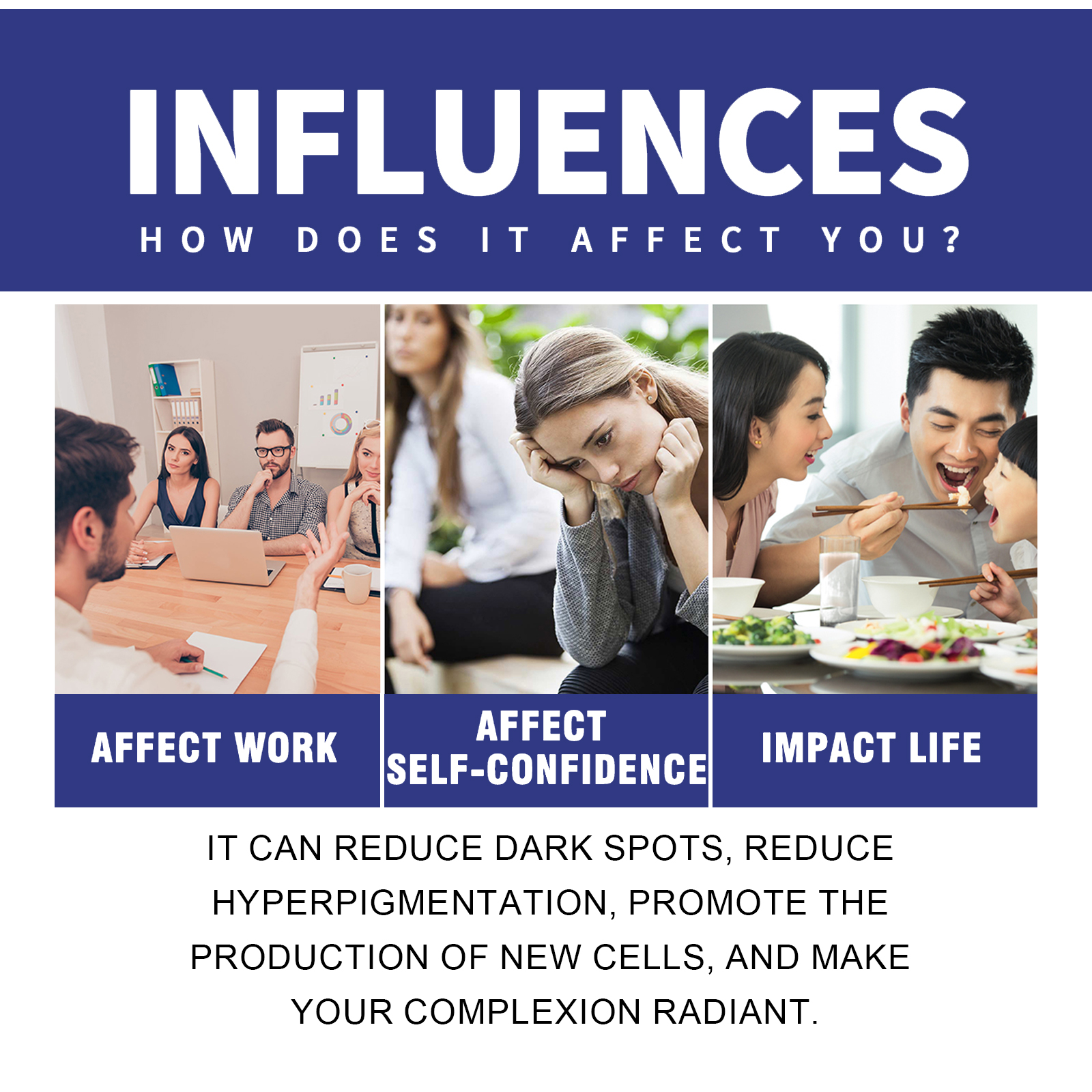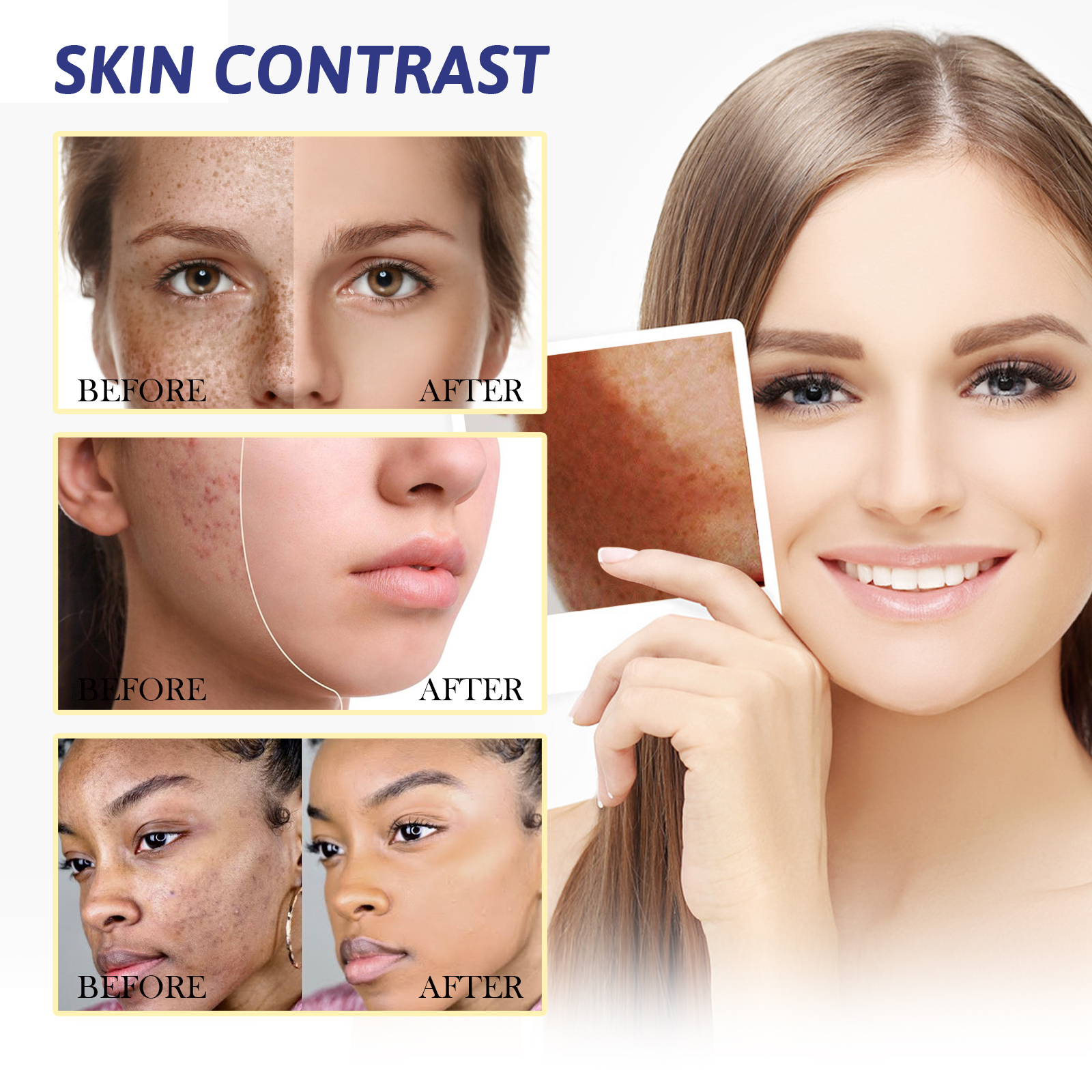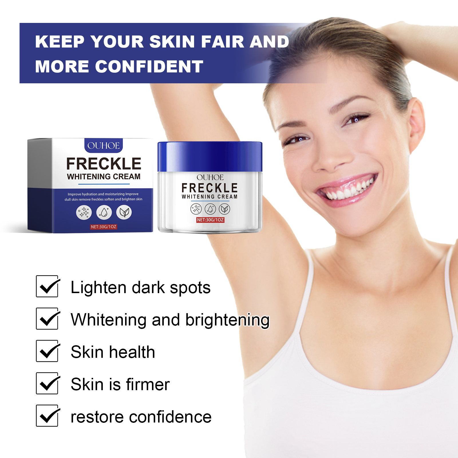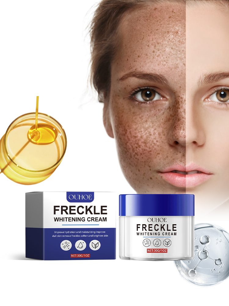 Our whitening cream contains arbutin, hydrolyzed collagen. It can reduce dark spots, reduce pigmentation, promote the production of new cells, and make your face glow. How to use it Back home: Clean your face, apply the cream evenly to your face, and gently massage until it is completely absorbed. And can dilute dark spots, with whitening and beautifying effect.