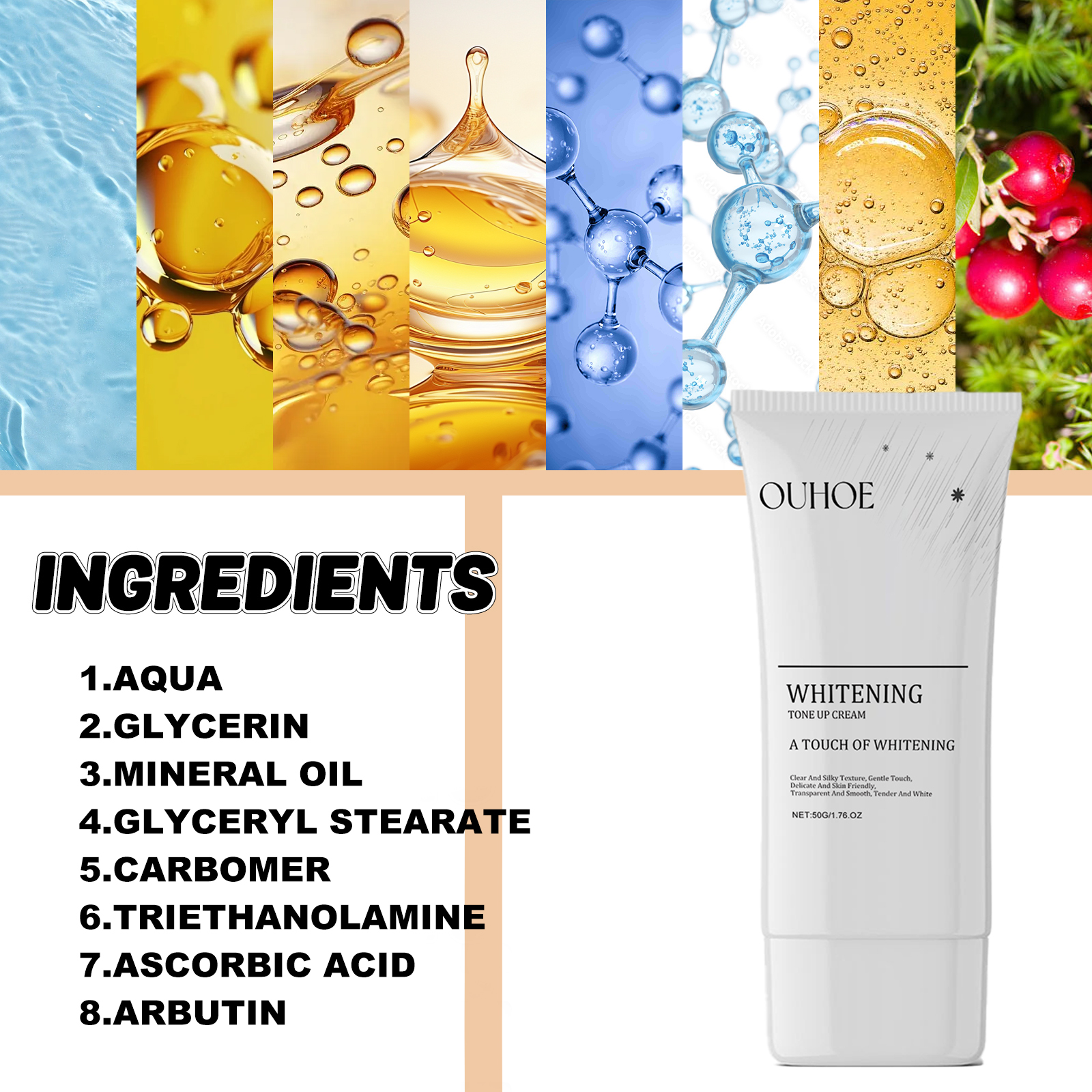 Our brightening cream contains ascorbic acid (vitamin C) and arbutin. It can deeply moisturize skin, make skin moist and smooth, balance sebum secretion, purify skin, present delicate skin, effectively fade dark spots and freckles, brighten skin even, restore skin luster. Its application method is very simple: clean the skin and keep moisturized, take appropriate amount of this product on the fingertips, evenly apply to the face skin, massage in circular motion until absorbed, use twice a day, once in the morning and once in the evening. It can activate skin cell renewal and repair, improve skin elasticity, and make skin bloom youthful vitality.