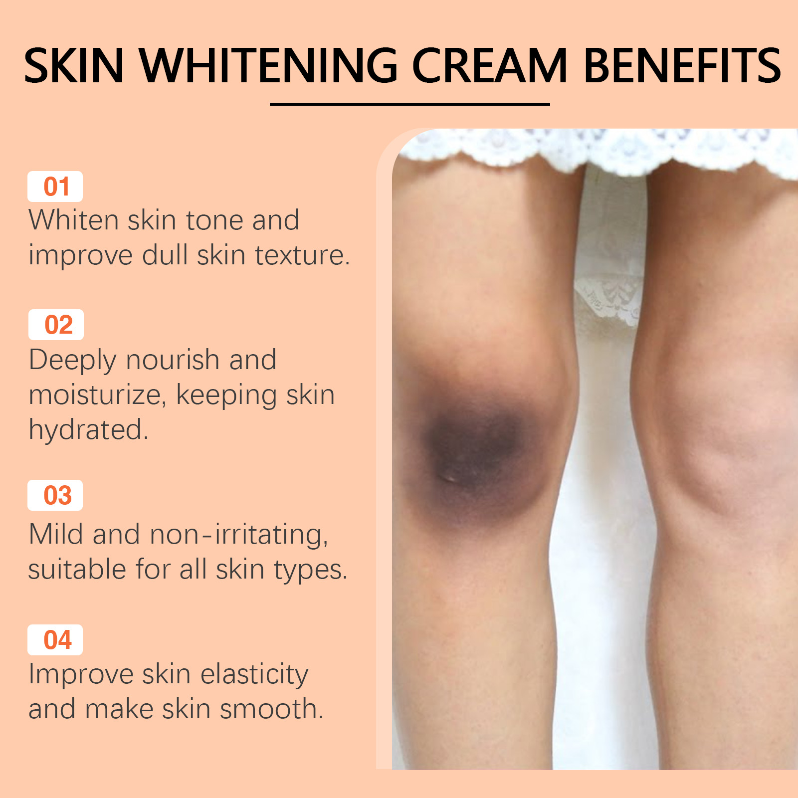 Our brightening cream contains hydrolyzed collagen and ascorbic acid. It can make skin soft and delicate, improve skin texture and elasticity. It can whiten your skin, calm melanin and make your skin fairer. Its method of use is very simple: thoroughly clean the skin, dry the right amount of this product, evenly apply to the face Shanshan, knee kiln, old part, knee, part or other body skin parts that want to whiten, gently massage to promote better absorption. It can also deeply moisturize the skin, lock in moisture, and prevent skin from drying and peeling.