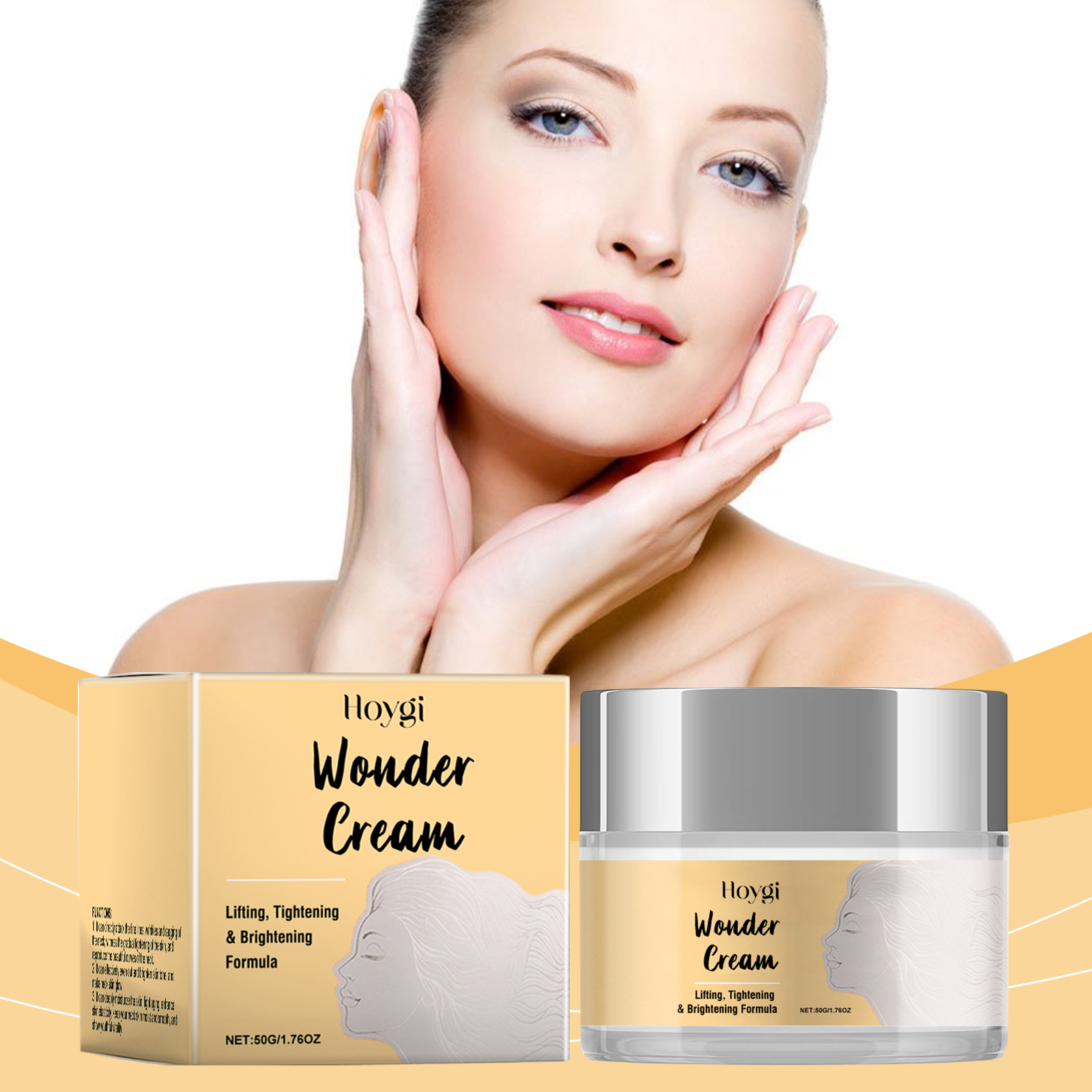 Our brightening and firming cream contains aloe vera leaf extract, sweet almond oil, and vitamin E(tocopherol). It can effectively delay the aging process and keep skin young. Enhance skin elasticity, make skin firm and strong. Skin feels softer and smoother after use. Its use method is very simple: 1. Wash your face. 2. Apply appropriate amount to face evenly. 3. Gently massage the eye sockets to promote absorption. Multi-functional integration, all-round nourishing skin. Suitable for daily skin care, help skin keep healthy and shiny.
