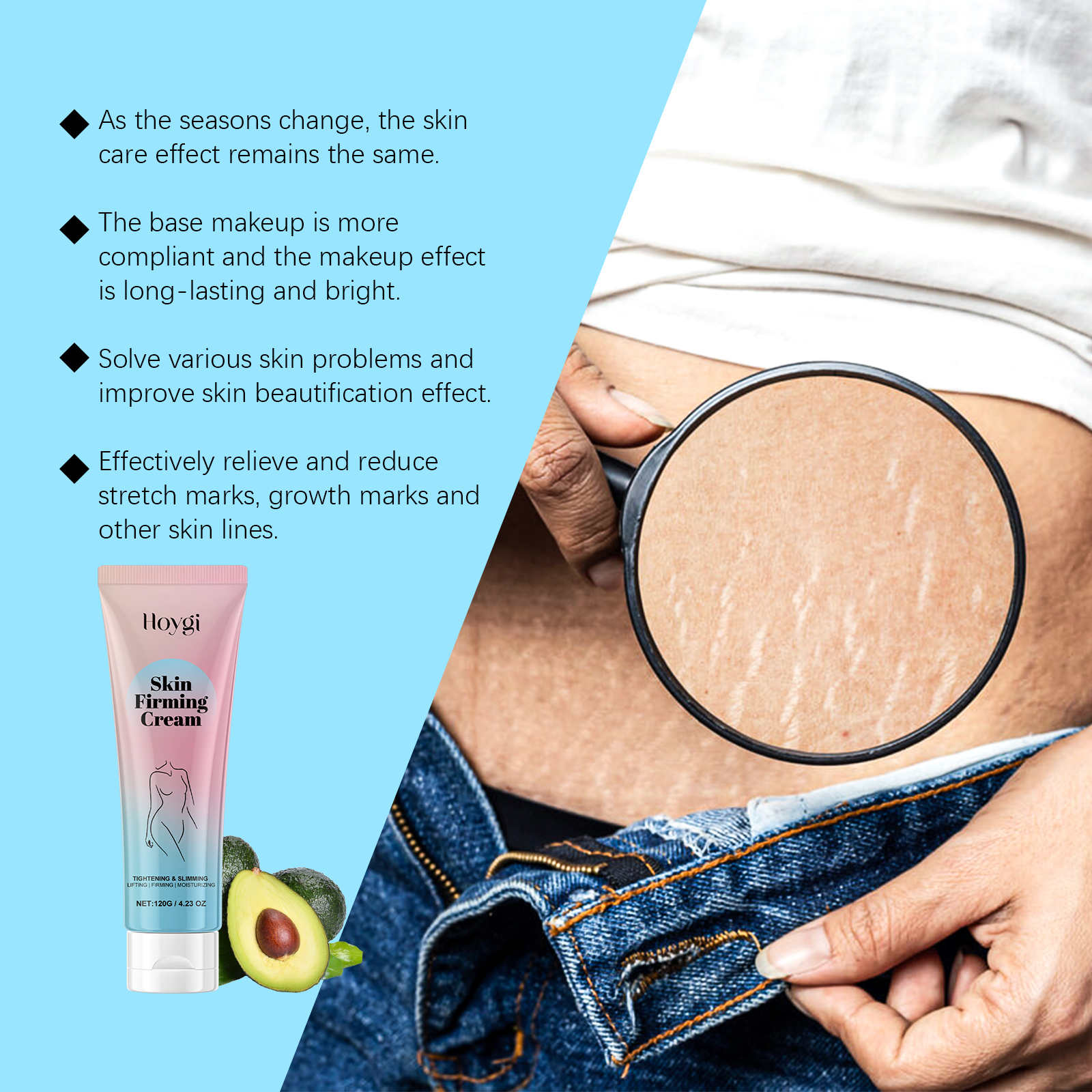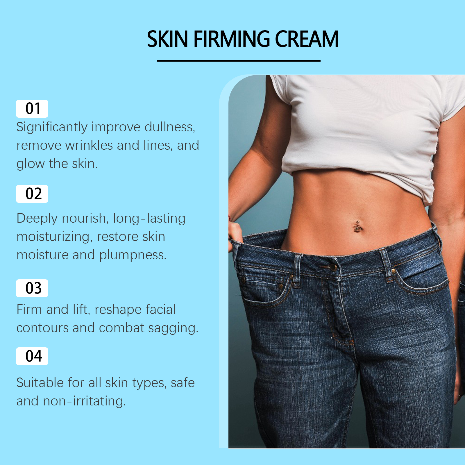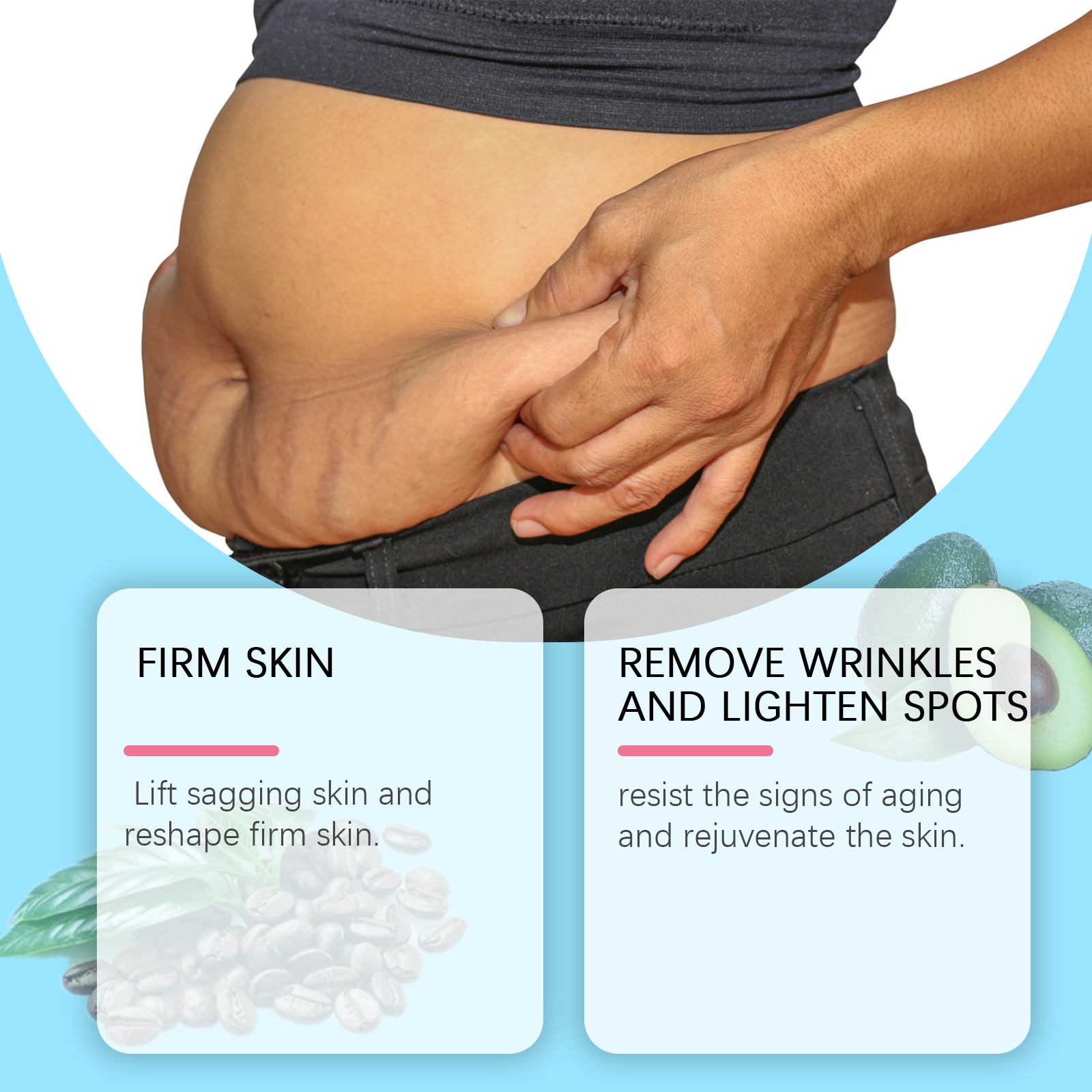 Our brightening and firming skin cream contains niacinamide, argan oil and coffee extract. It can inhibit melanin, even skin color, brightening and whitening; Promote blood circulation, reduce swelling and tightness, and enhance contours. Repair damage, enhance skin elasticity, deep nourishment. Its application method is simple: 1. Clean the skin and keep it dry. 2. Apply proper amount of cream to face or whole body. 3. Gently massage until absorbed. Brightening and Firming Skin Cream lifts loose skin and restores firm skin. Fight the signs of aging and rejuvenate the skin. Locks in moisture throughout the day and nourishes the underlying skin directly.
