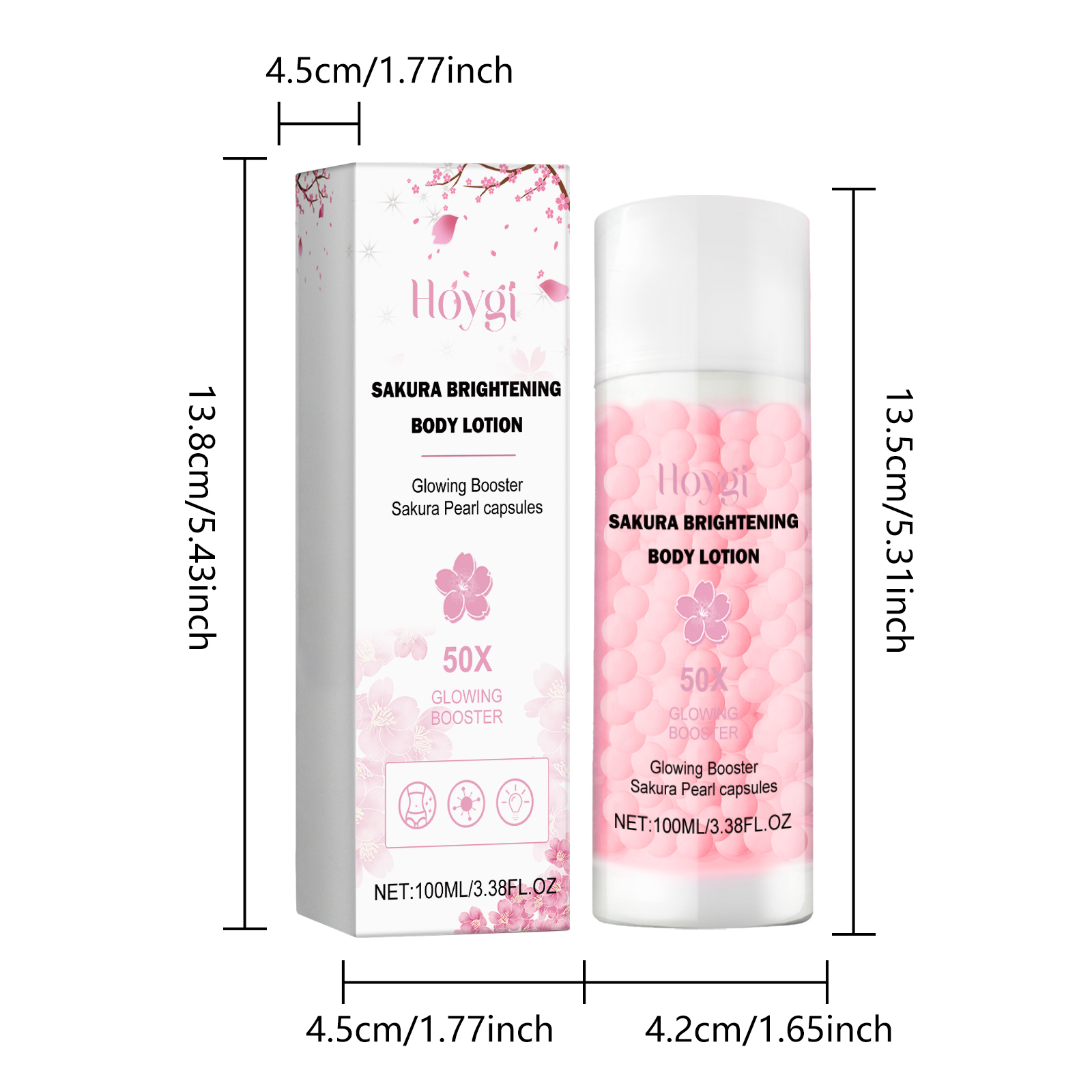 Our Sakura Brightening Body Lotions contains Prunus Speciosa Flower Extract, Panthenol, Sodium Hyaluronate. It can penetrate the skin, increase the water content of the skin, make the skin soft, moist and shiny, enhance the skin elasticity, make the skin firmer. Its application is simple: after bathing and cleaning the skin, squeeze the product on the palm of the hand, apply it to the whole body, and gently massage it to help the product absorb. It can moisturize and lock water, deeply moisturize, improve dull skin and lighten skin tone.